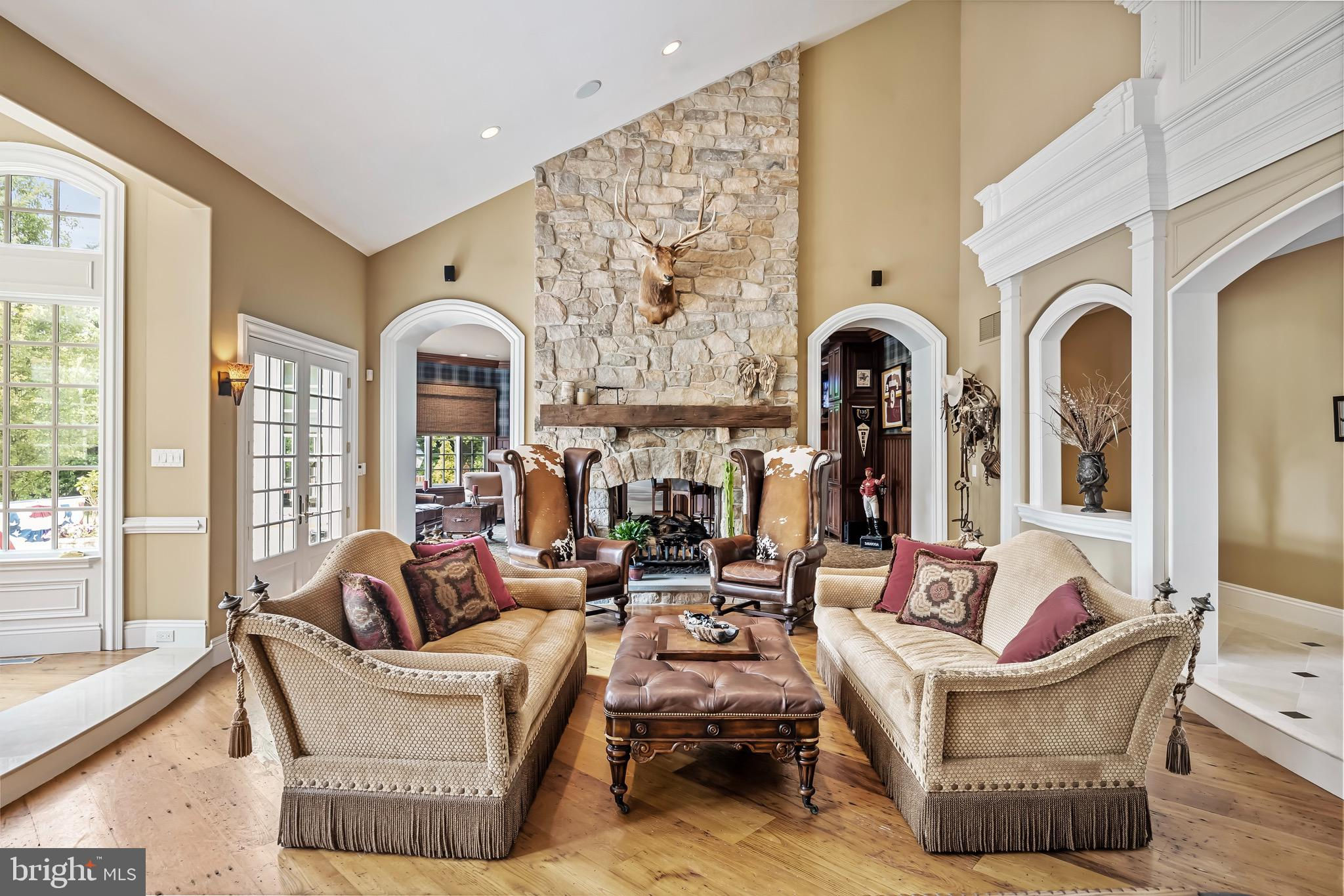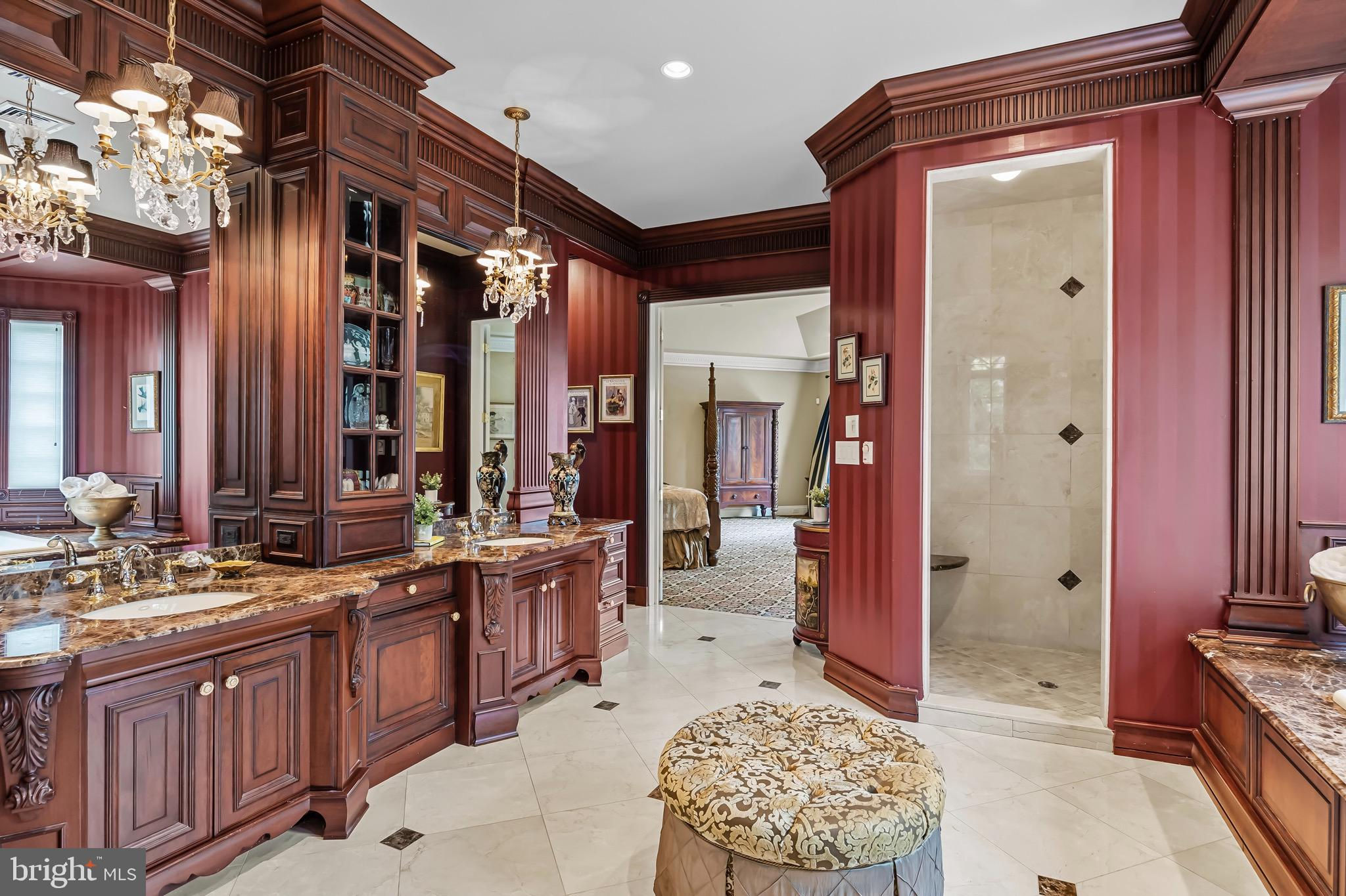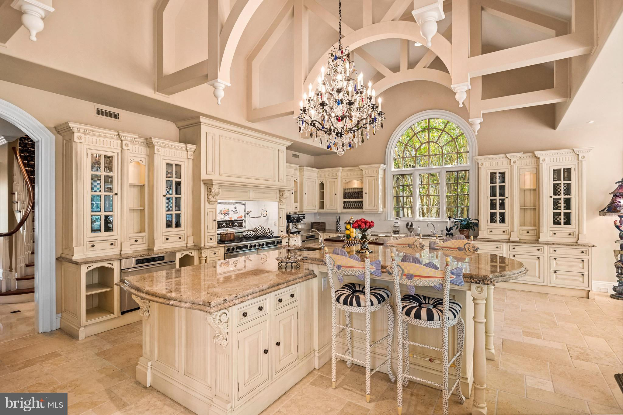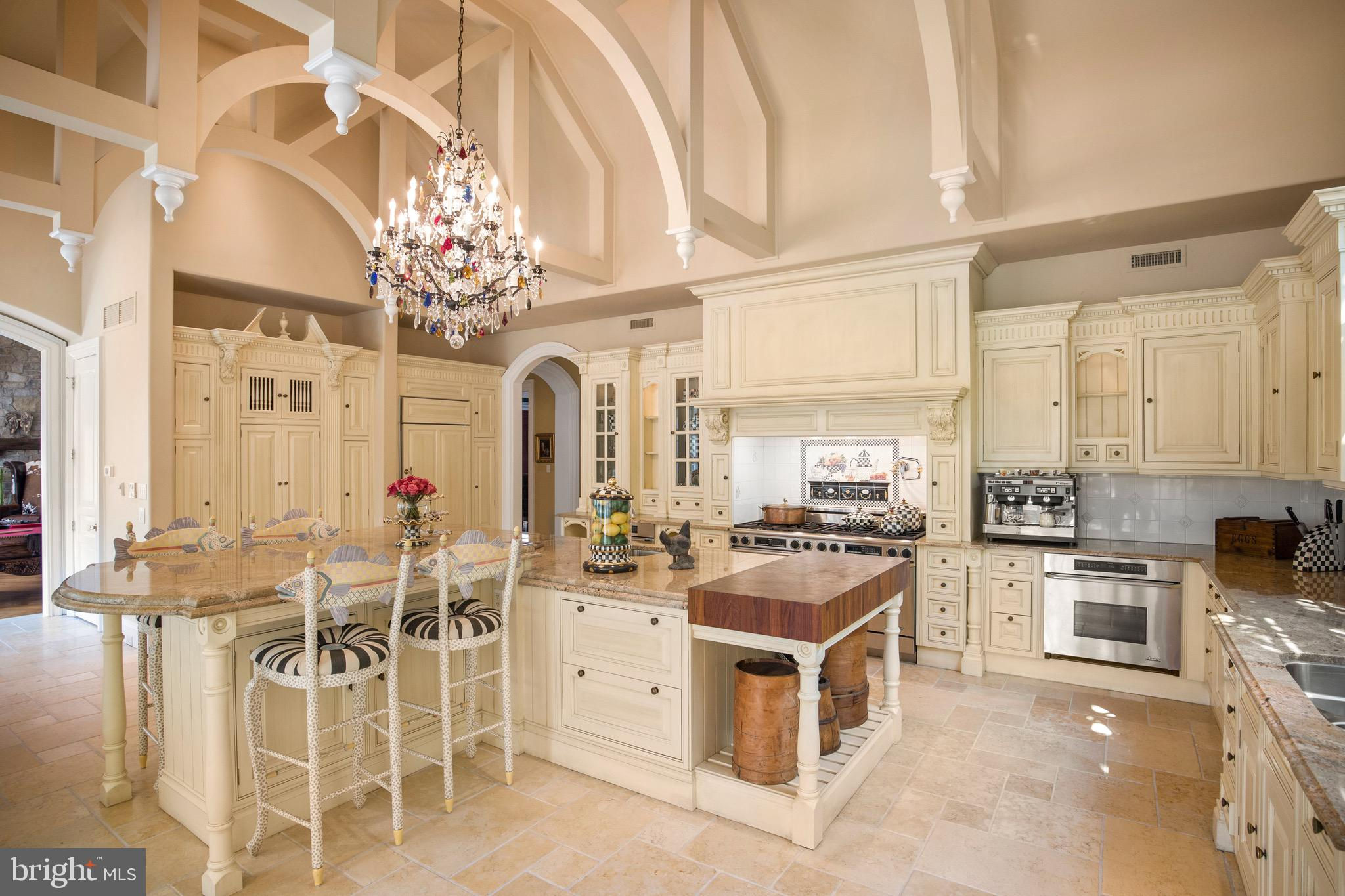 When a celebrity chef designs their dream home, their incredible passion and obsession for detail becomes an addiction to creating an exquisite luxury estate. Every aspect of the home has been meticulously crafted, with a compulsive focus on even the minutest details. Even the location of the home has been strategically positioned on the property to optimize breathtaking views for sunset dining and morning sun. Its sprawling 4-acre grounds and over 9000 magnificent square feet of living space in this raised ranch boast a seamless blend of luxury and functionality. Featuring 5 bedrooms, 4 full baths, and 2 half baths, it is truly a work of art. The unique above-ground basement design with surround sound music inside and out enhances both family living and entertaining, making this property an exquisite haven for all. Created with no expense spared, it can be seen in the 180-degree radius arched ceiling, slate roof, redwood trim facades, radiant heated floors, and 10ft+ soaring ceilings, all bearing witness to an unparalleled level of craftsmanship. The entrance greets you with a prominent custom 7-foot mahogany front door with custom equestrian door handles and an inviting wrap-around bluestone covered porch. Be welcomed by a majestic Ralph Lauren dining room, adorned with oversized windows, a tray lighted ceiling, and an exquisite cherry wood custom architectural millwork library. There you will find the first of 5 gas/wood fireplaces. The centered family room with Pennsylvania bluestone and reclaimed river wood complements the floor-to-ceiling Marvin French doors that flood the space with natural light. Soaring vaulted ceilings and arched beams add to the elaborate detail of the open-design kitchen/great room, which stands as the centerpiece to the rare Clive Christian kitchen. A Clive Christian kitchen is renowned as the epitome of culinary luxury. It is widely regarded as one of the most opulent kitchen designs worldwide. Equipped with an 8-burner range, 4 ovens, 3 Sub-Zero refrigerators, an oversized walk-in pantry, a chopping block, an expansive island that seems to stretch indefinitely, and a state-of-the-art ice machine. You will find an additional captivating ambiance in the handcrafted wooden wet bar complete with wine refrigerator, sink, dishwasher and 2 Sub Zero ice machine and 3 built in televisions, inviting guests to indulge in an elegant and exciting atmosphere in the game room. The first floor offers a four-bedroom sanctuary for relaxation and rejuvenation. Designed with two primary bedrooms at either end of the house, perfect as en suite or mother in law suite, and the two additional bedrooms share a jack-and-jill bathroom. The principal room, with a Louboutins -inspired master bedroom, custom closet, and a large spa bathroom retreat with his and hers water closets for privacy, overlooks the private terrace, landscaped gardens, pond with fountain, and an Olympic-sized pool. Upstairs, an additional hideaway awaits you in the form of a fifth bedroom with a full bath. A movie room/den provides an escape for moments of entertainment and leisure. This magnificent home is not just a testament to exquisite design and luxurious living but also a reflection of the passion and dedication that went into creating a space where dreams come true.