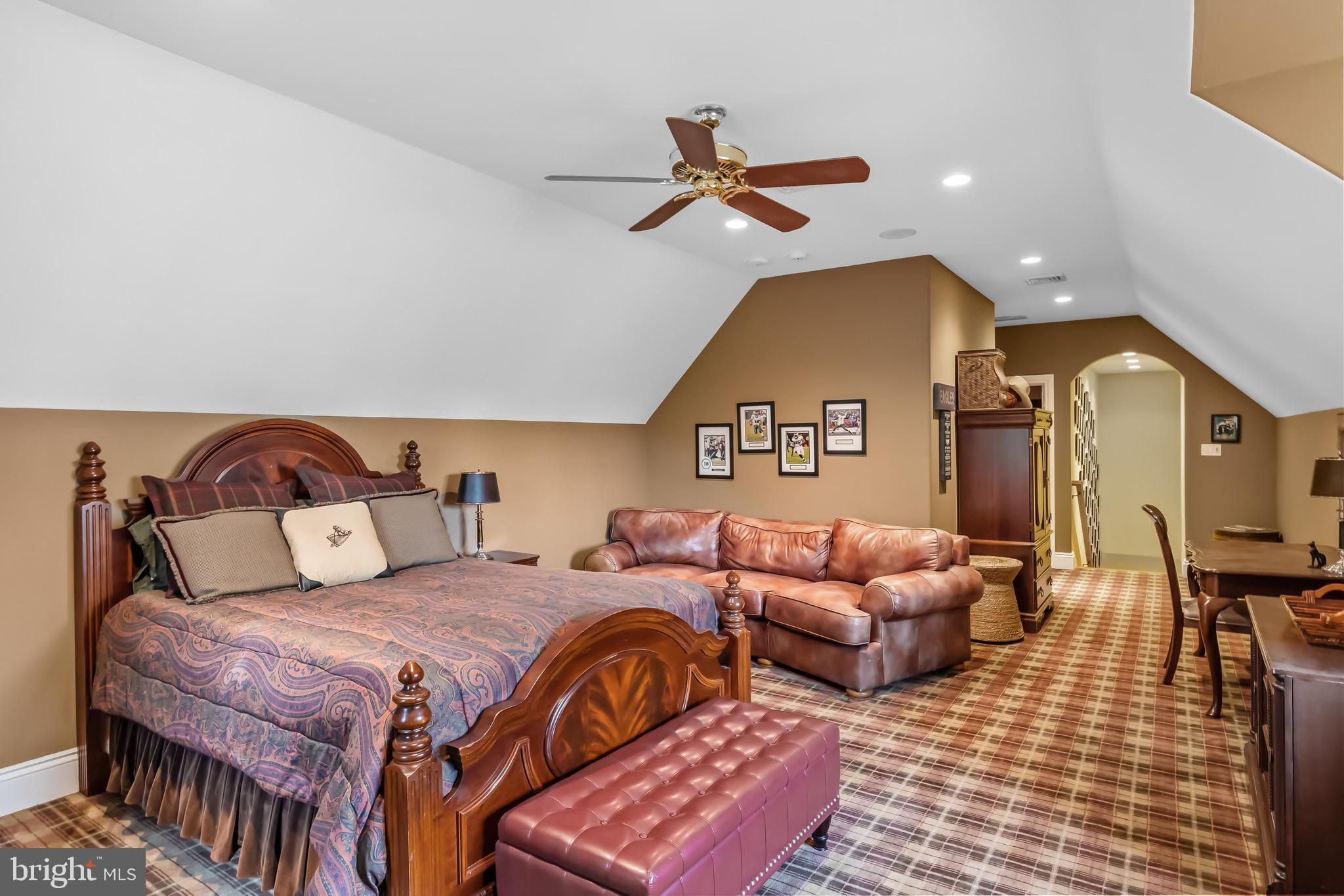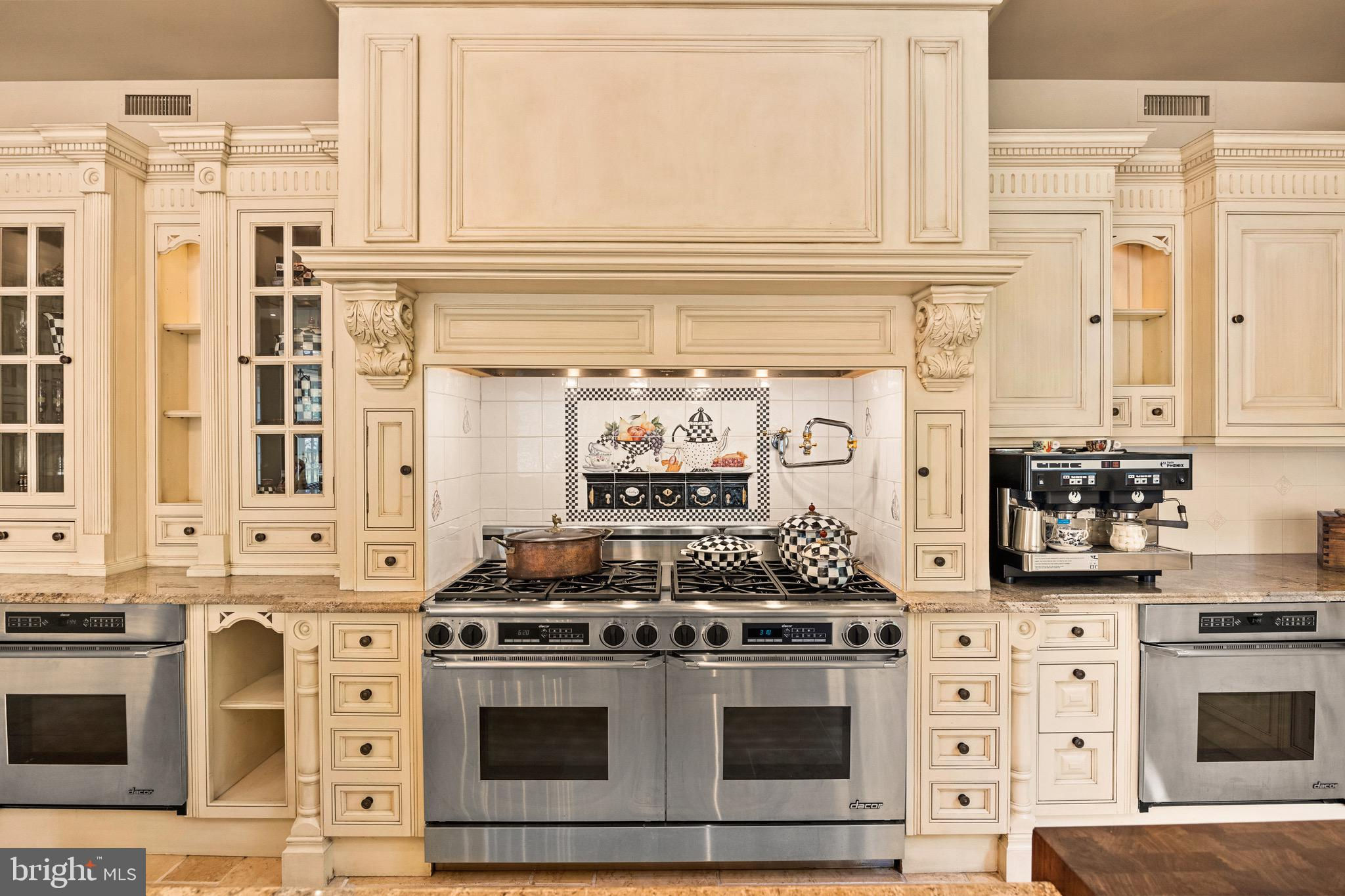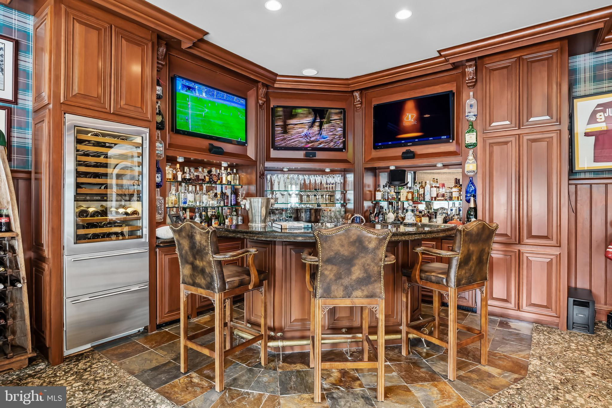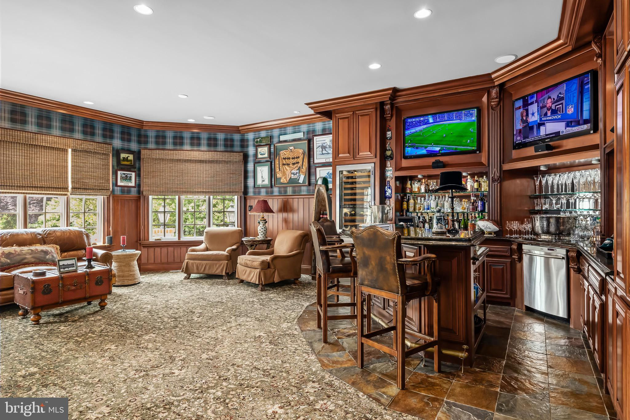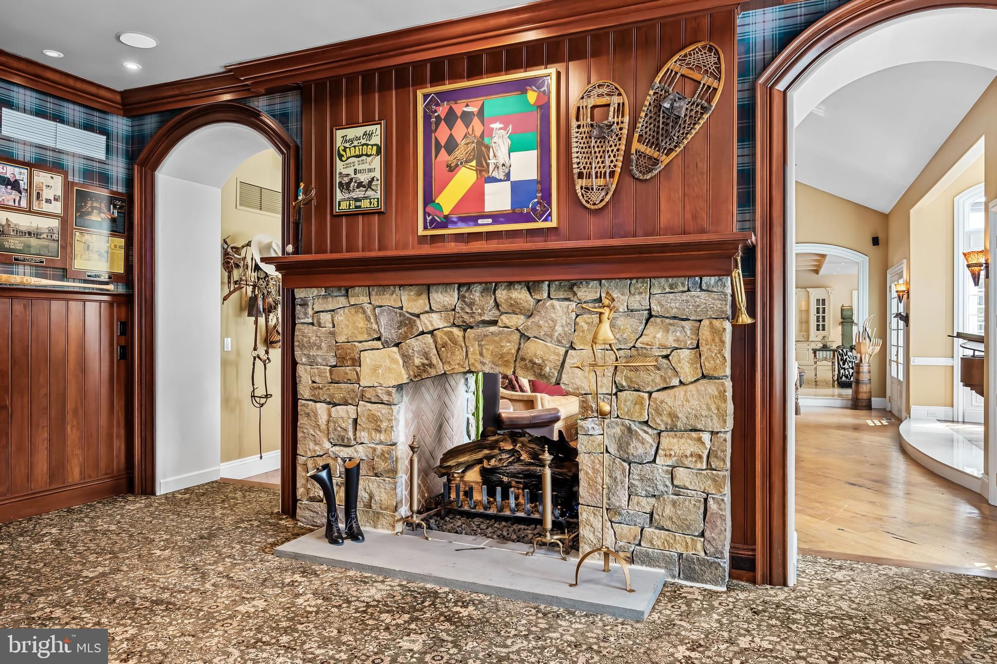 When a celebrity chef designs their dream home, their incredible passion and obsession for detail becomes an addiction to creating an exquisite luxury estate. Every aspect of the home has been meticulously crafted, with a compulsive focus on even the minutest details. Even the location of the home has been strategically positioned on the property to optimize breathtaking views for sunset dining and morning sun. Its sprawling 4-acre grounds and over 9000 magnificent square feet of living space in this raised ranch boast a seamless blend of luxury and functionality. Featuring 5 bedrooms, 4 full baths, and 2 half baths, it is truly a work of art. The unique above-ground basement design with surround sound music inside and out enhances both family living and entertaining, making this property an exquisite haven for all. Created with no expense spared, it can be seen in the 180-degree radius arched ceiling, slate roof, redwood trim facades, radiant heated floors, and 10ft+ soaring ceilings, all bearing witness to an unparalleled level of craftsmanship. The entrance greets you with a prominent custom 7-foot mahogany front door with custom equestrian door handles and an inviting wrap-around bluestone covered porch. Be welcomed by a majestic Ralph Lauren dining room, adorned with oversized windows, a tray lighted ceiling, and an exquisite cherry wood custom architectural millwork library. There you will find the first of 5 gas/wood fireplaces. The centered family room with Pennsylvania bluestone and reclaimed river wood complements the floor-to-ceiling Marvin French doors that flood the space with natural light. Soaring vaulted ceilings and arched beams add to the elaborate detail of the open-design kitchen/great room, which stands as the centerpiece to the rare Clive Christian kitchen. A Clive Christian kitchen is renowned as the epitome of culinary luxury. It is widely regarded as one of the most opulent kitchen designs worldwide. Equipped with an 8-burner range, 4 ovens, 3 Sub-Zero refrigerators, an oversized walk-in pantry, a chopping block, an expansive island that seems to stretch indefinitely, and a state-of-the-art ice machine. You will find an additional captivating ambiance in the handcrafted wooden wet bar complete with wine refrigerator, sink, dishwasher and 2 Sub Zero ice machine and 3 built in televisions, inviting guests to indulge in an elegant and exciting atmosphere in the game room. The first floor offers a four-bedroom sanctuary for relaxation and rejuvenation. Designed with two primary bedrooms at either end of the house, perfect as en suite or mother in law suite, and the two additional bedrooms share a jack-and-jill bathroom. The principal room, with a Louboutins -inspired master bedroom, custom closet, and a large spa bathroom retreat with his and hers water closets for privacy, overlooks the private terrace, landscaped gardens, pond with fountain, and an Olympic-sized pool. Upstairs, an additional hideaway awaits you in the form of a fifth bedroom with a full bath. A movie room/den provides an escape for moments of entertainment and leisure. This magnificent home is not just a testament to exquisite design and luxurious living but also a reflection of the passion and dedication that went into creating a space where dreams come true.