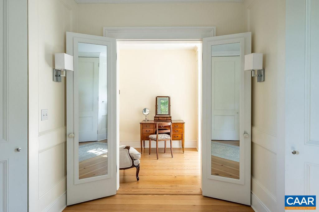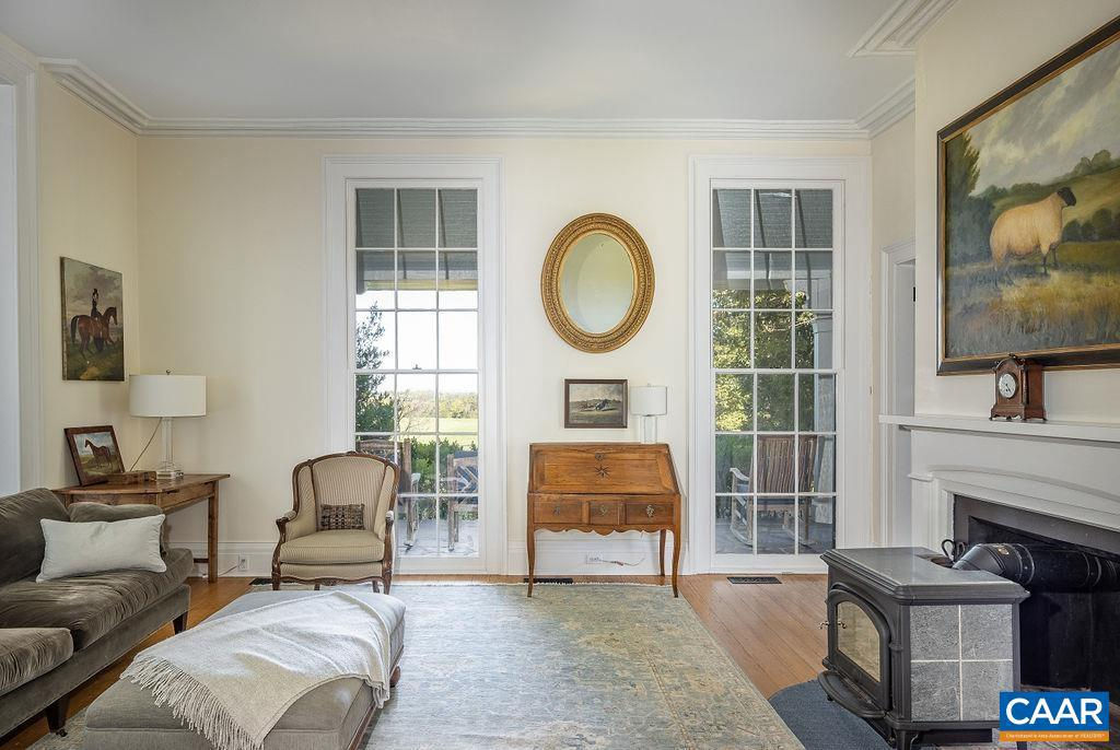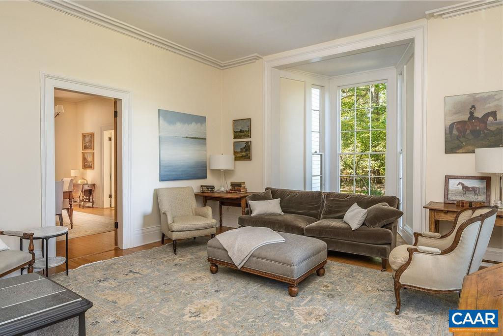 c.1856, Oakleigh is a beautifully renovated, turn-key country estate in the heart of the Green Springs Historic District. The property includes 149 manicured acres with 2 ponds. The home enjoys total tranquility, with no road exposure whatsoever. It has been carefully modernized and renovated over the last 30 years by the current owners and includes 3 bedrooms, 2.5 bathrooms and endless charm. Truly, this home is Architectural Digest- worthy! Other structures include a smokehouse, horse or livestock barn, chicken coop and large workshop/equipment shed, which could be finished as a guest house. All dependencies have water and electricity. Wonderful boxwood ringed vegetable garden. Under Conservation easement with 1 division right. There is an excellent building site with mountain views and tucked well away from the main residence. 25 mins to Charlottesville and 40 to Richmond. Fiber optic!,Painted Cabinets,Solid Surface Counter,White Cabinets,Fireplace in Bedroom,Fireplace in Dining Room,Fireplace in Foyer,Fireplace in Living Room