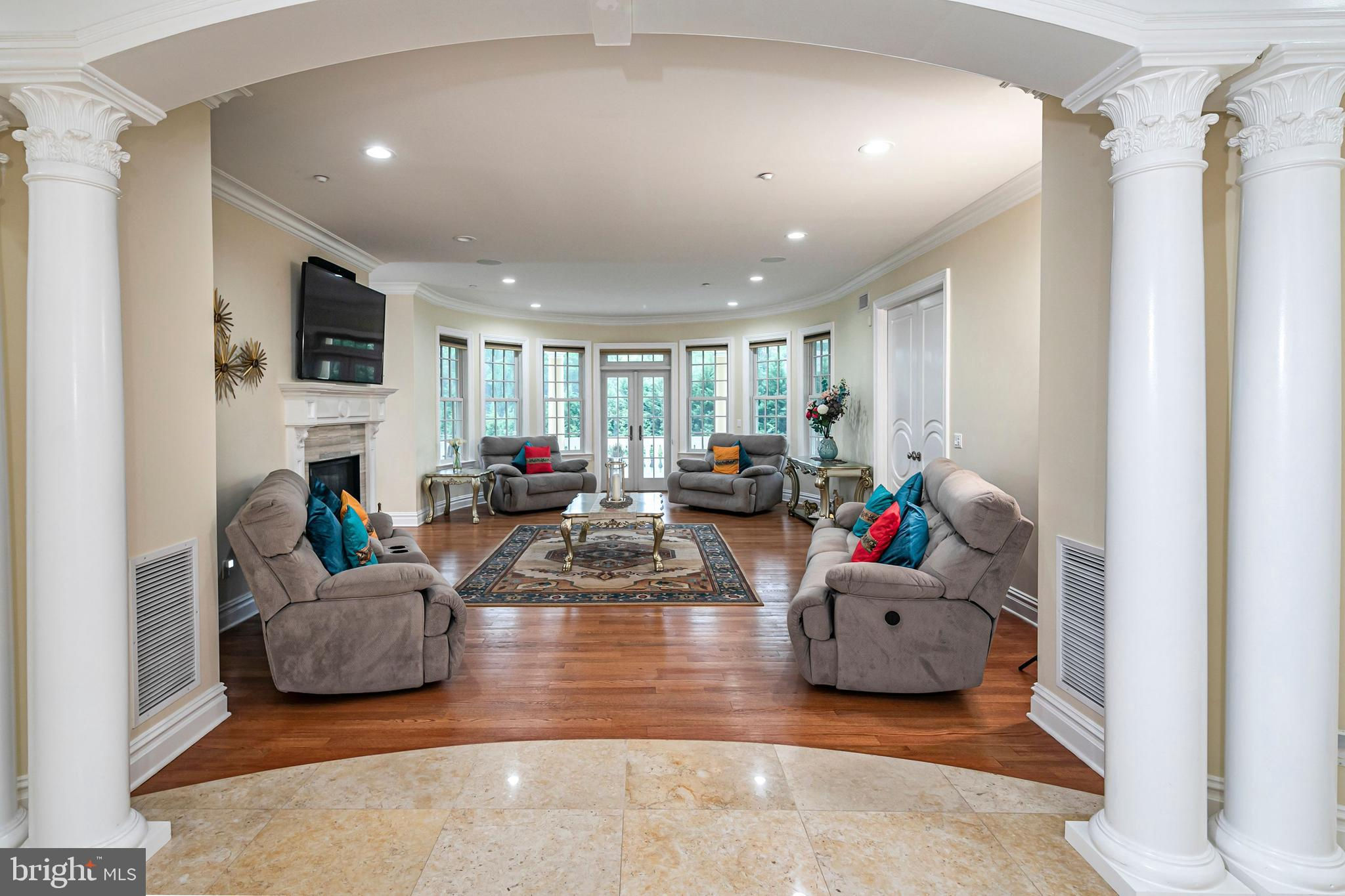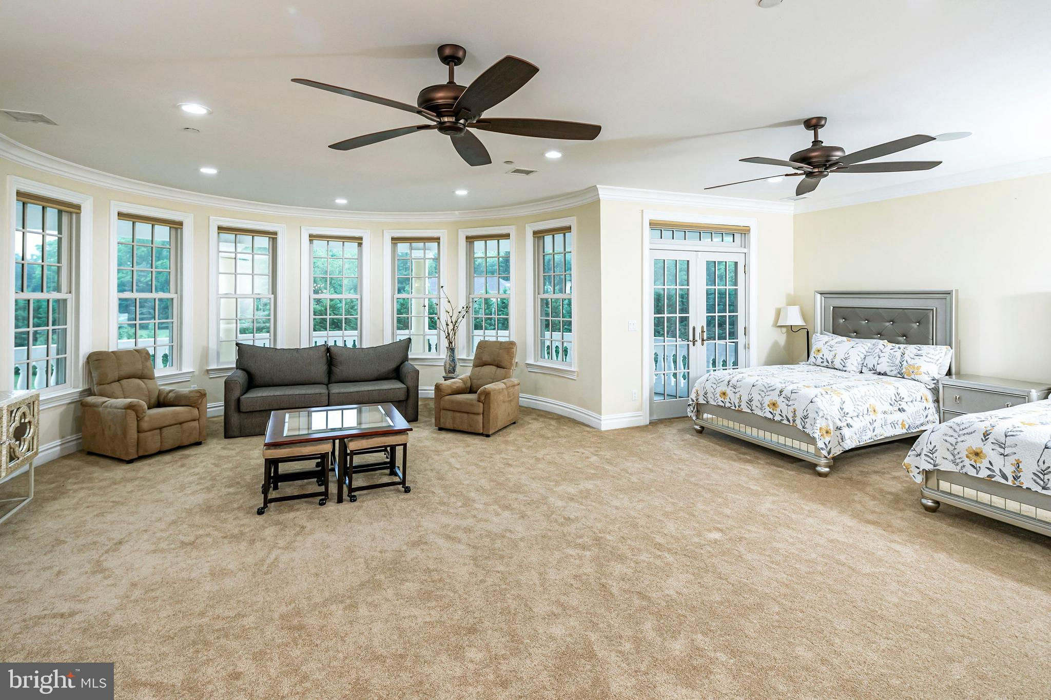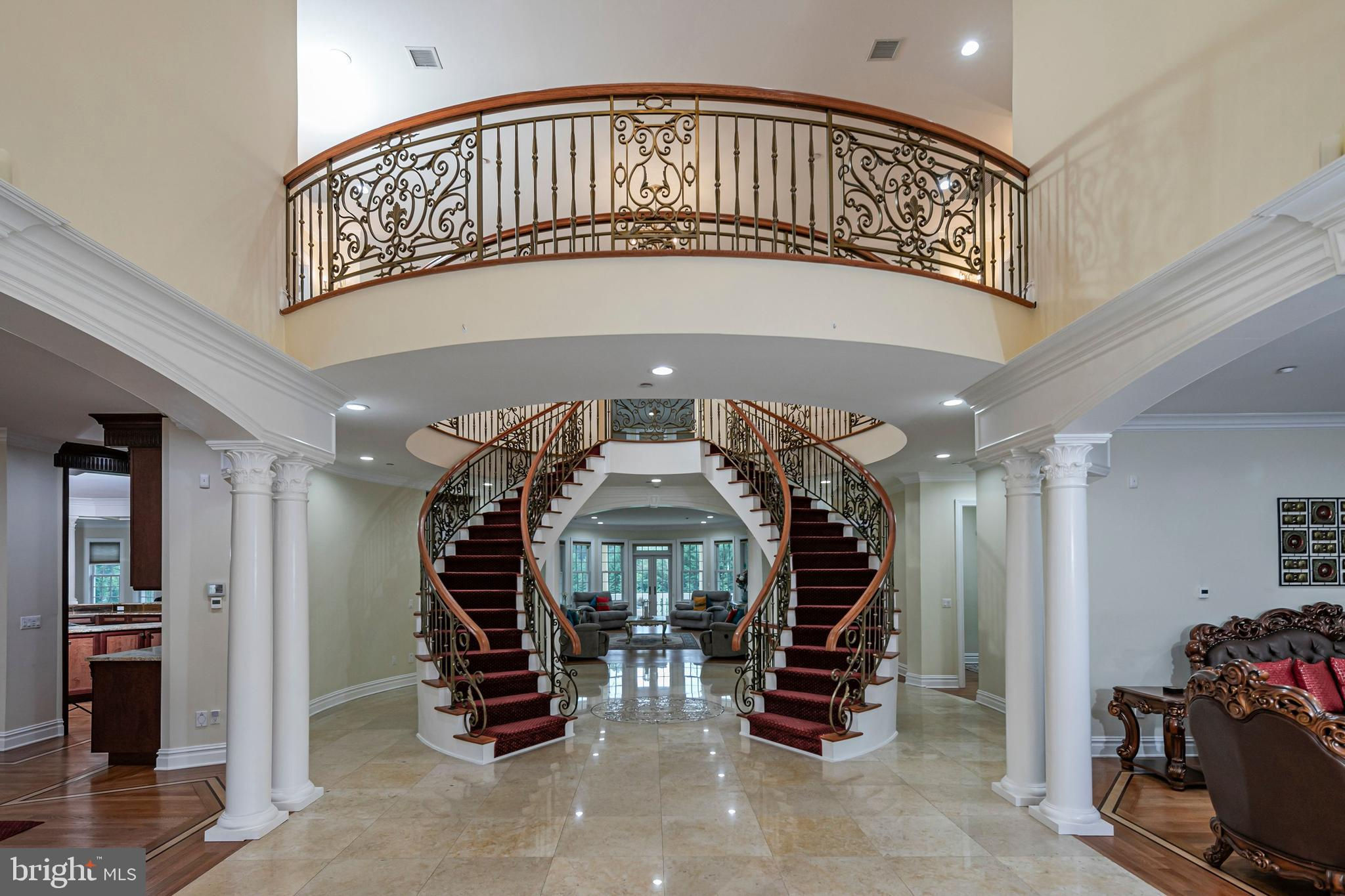 Unparalleled spaciousness and complete privacy await on 3.18 fenced acres adjoining protected natural land and within easy reach of all the places you frequent most. The custom-built house, completed in 2016, is positively palatial with areas for every single member of the household to have their very own space, whether for work or rejuvenation. South-facing rooms spanning the back of the house open to a sweeping balcony that overlooks the irrigated lawn, ideal for tented parties. In fact, it has already been the site of a joyous wedding celebration! A sport court occupies one corner and a future pool is easy to envision. In addition to two separate garages, there is lots of room for parking along the gated driveway, which winds past a water feature and whimsical statuary before culminating at a covered entry of grand proportions. Inside, a butterfly staircase and custom marble medallions immediately impress in the 2-story foyer flanked by the formal rooms. The family room, ahead, has one of several gas fireplaces, as does the kitchen, where multiple cooks can fluidly work together thanks to a lengthy island, a full-size fridge and freezer, two dishwashers and two cooktops, plus a nearby wet bar. As seen in the reflective backsplash, warm amber and copper tones are woven throughout the home, repeated in glimmering light fixtures and tile accents. There are eight bedroom suites spread out across three levels, each one with a private bath dressed in natural stone and several with sitting rooms or offices adjoining. Upstairs, there are at least two suites worthy of being called the primary. Simply choose the amenity you value most: a steam shower, a curved bay of windows or a fireplace, just to name a few. All have Jacuzzi tubs and ample closet space. A two-room office with yet another handsome full bathroom also opens to the balcony for healthy breaks out in the fresh air. The walk-out lower level has two more luxuriously sized suites separated by lounge space and a full kitchen. A snack bar completes the home theater experience, making it even better than a night out! High ceilings, Andersen windows, a full-service elevator and radiant heat throughout show this house was built to the highest modern standards, while a generator ensures your comfort is never interrupted.
