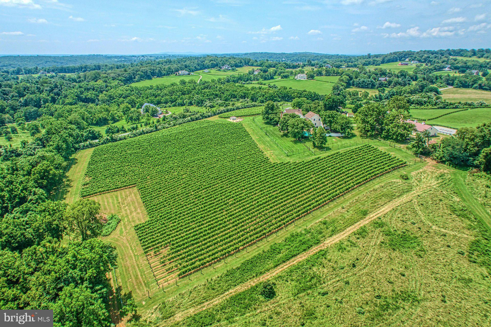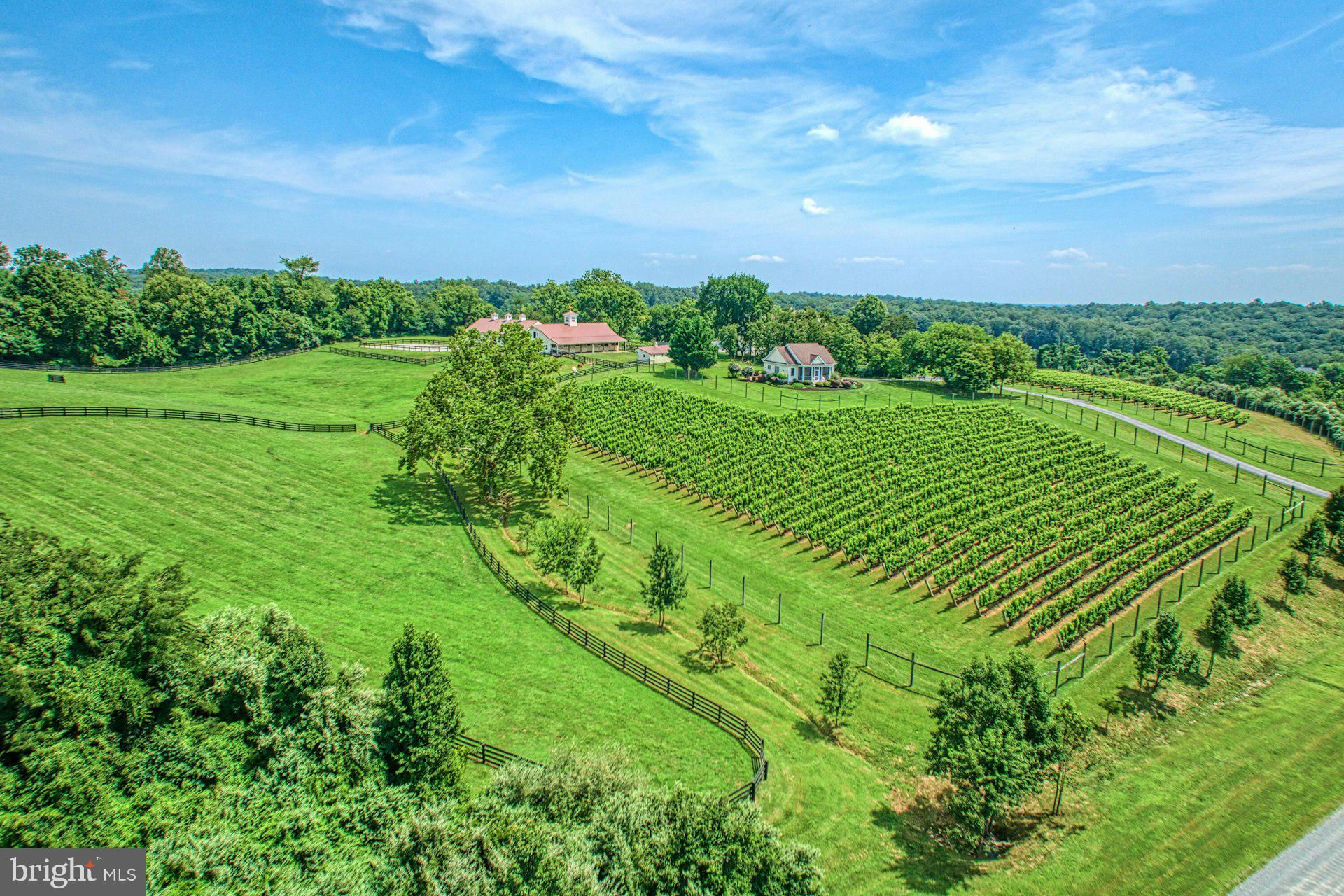 Twin Notch Farm is a premier equestrian and wine country estate offering an extraordinary lifestyle on 21.69 scenic acres in the heart of Loudoun County. This luxurious property combines refined country living with award-winning vineyard production and upscale amenities for both relaxation and recreation. At the heart of the estate lies the Twin Notch Vineyard, home to nearly 12,000 hand-planted vines producing Merlot, Cabernet Franc, Petit Verdot, Petit Manseng, and Sauvignon Blanc. As the exclusive grower for Walsh Family Wine, the vineyard yields over 1,300 cases annually—including the acclaimed 2020 Twin Notch Red, which earned a Gold Medal at the 2023 Loudoun County Wine Awards. The custom-built main residence is thoughtfully designed for modern living and entertaining. Highlights include a newly updated kitchen, a main-level bedroom and bath ideal for multigenerational needs, and a beautifully finished bonus space over the garage complete with a fireplace and full bath—perfect for a private office or media room. Outdoor living is elevated with a resort-style pool and spa, a screened-in porch with a stone fireplace, and a fully outfitted outdoor kitchen—all designed to capture the stunning vineyard and mountain views. Additional features include a charming one-bedroom, one-bath guest house with den and a one-car garage, currently operating as a successful VBRO Rental, offering both versatility and income potential. Equestrian amenities abound with a six stall center aisle barn, two large turn-outs, 60' x 100' ring and a five-bay machine shed with workshop, ideal for, hobby farming, or equipment storage. Whether you’re looking to operate a boutique vineyard, enjoy a private retreat, or entertain in grand style, Twin Notch Farm offers a rare opportunity to embrace the very best of Virginia’s luxury wine and equestrian lifestyle.