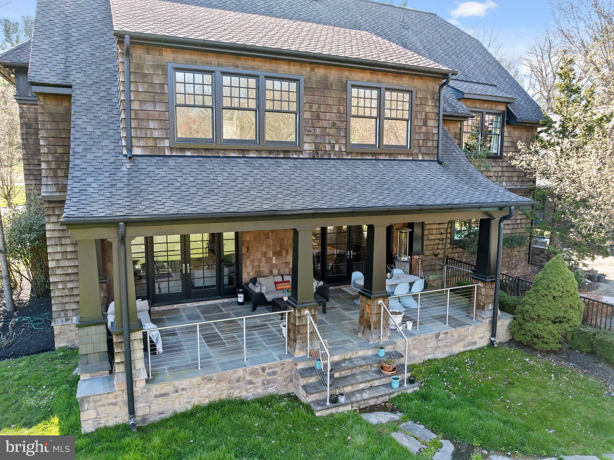 Welcome to your dream home – a masterfully designed 7,400 square foot cedar-sided Hamptons-style residence that exudes elegance and modern comfort. Built in 2006 in the tradition of noted architect Robert A. M. Stern and updated in 2016 by the current owners, this magnificent property sits on 1.66 acres in Bryn Mawr. This 3 story, 6 bedroom, 7 and a half bath home is a harmonious blend of luxury, comfort, and state-of-the-art amenities, making it the epitome of upscale living. As you step into the grand foyer, you are greeted by a stunning staircase that sets the tone for the exquisite craftsmanship found throughout the home. Hand crafted archways and coffered ceilings create the perfect setting for entertaining. The first floor unfolds into a seamless flow of spaces including a sophisticated living room with gas fireplace and formal dining room completed with walls of French doors that open onto the stone patio overlooking the beautiful natural grounds. The bright chef's kitchen is equipped with top-of-the-line Sub Zero and Dacor appliances, butler's pantry and climate controlled wine room. The kitchen's beautiful built-in cabinetry and stunning woodwork extend throughout the first floor, enhancing the aesthetic appeal and functionality of the space. Adjacent to the main living area is a discreet staircase ascending to a cozy library and office/au pair suite with full bath, providing a private retreat within the home. A striking glass-walled hall leads to the entertainment wing, a haven for leisure and enjoyment. Here, you'll find a breathtaking Art Deco tiered theater, offering an unparalleled cinematic experience. Adjoining the theater is a full service kitchen, full bath, and an expansive family room designed for ultimate comfort and style. The entertainment wing also boasts a second-floor gym. From the entertainment wing, you can enter the spectacular outdoor relaxation area, featuring a magnificent slate patio, a pool with a waterfall whirlpool, a stone fireplace, and a built-in grill– all set against the backdrop of meticulously landscaped grounds. The grand main staircase in the foyer leads to the second-floor accommodations, including a luxurious master suite overlooking the gracious grounds, with massive custom his and her closets, built-in cabinetry, and a marble radiant heated bath with a custom two-person glass walled shower and whirlpool tub. Three additional en-suite bedrooms and a laundry room complete the second floor, offering comfort and privacy for family and guests alike. The journey continues to the third floor, where two recently added additional bedrooms, a full bath, cedar closet, and extra storage space await, providing ample room for family or visiting guests. This home is equipped with advanced technology for both convenience and security, including a Lutron lighting system, comprehensive house media system, whole house Generac generator, and five HVAC units. The property also features a large 3-car garage with built-in cabinets, ensuring ample space for vehicles and storage. Located on the prestigious Main Line, in the coveted Lower Merion School District, this home is not just a residence, but a lifestyle choice, offering luxury, privacy, and tranquility. Don't miss the opportunity to own this extraordinary home where every detail has been carefully crafted to ensure unparalleled elegance and comfort.