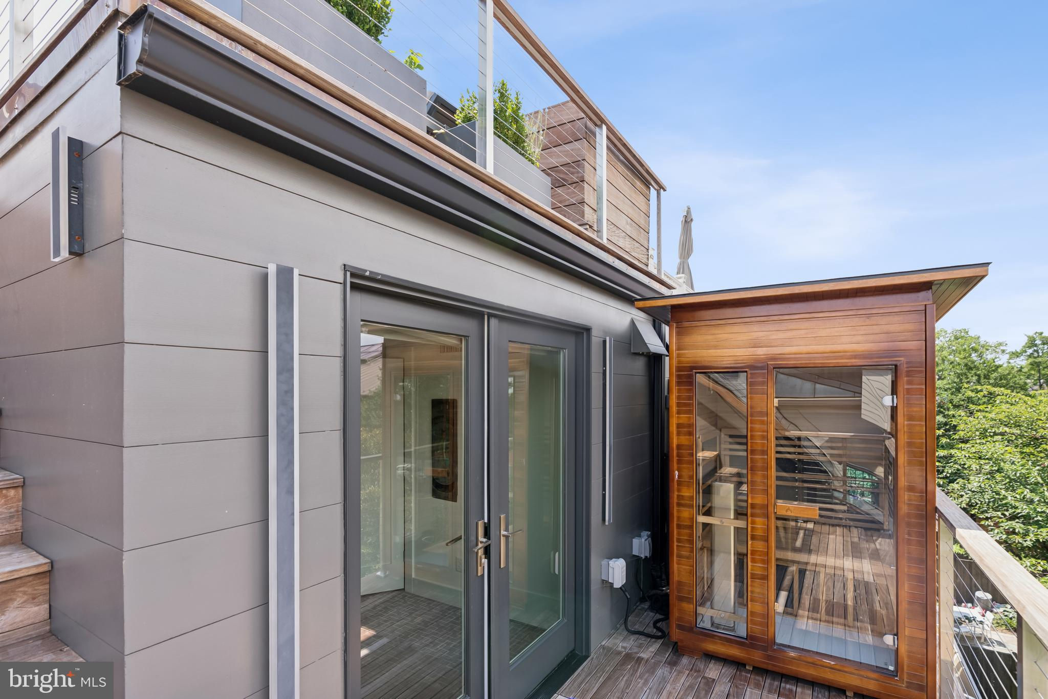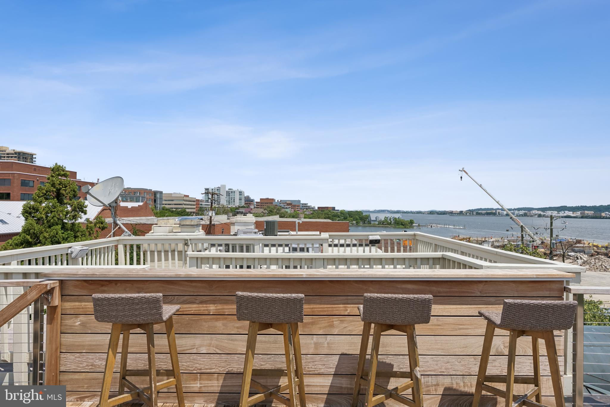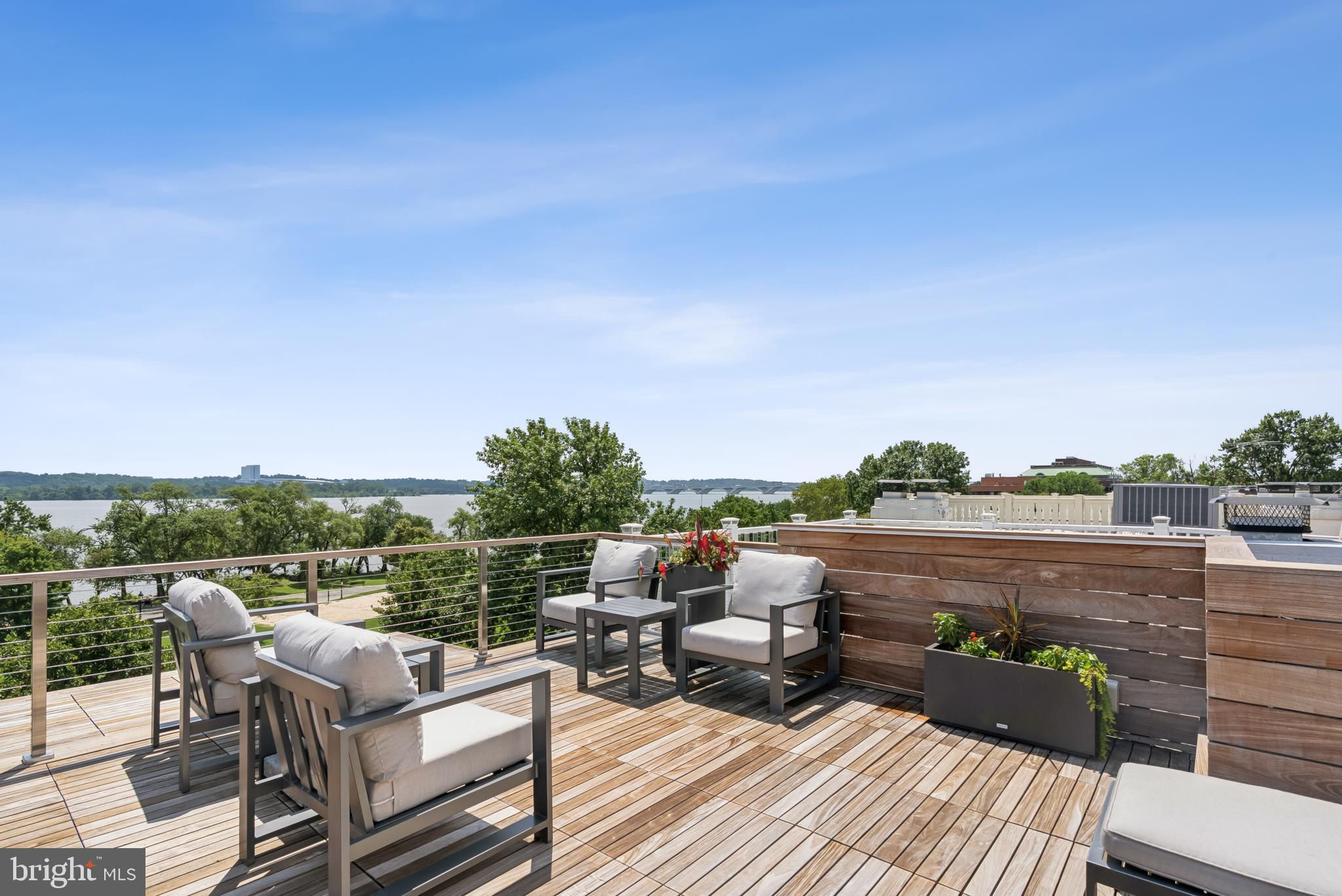Stunning Fully Renovated Townhouse with Panoramic Rooftop Views This colonial-style townhouse has been completely reimagined through a meticulous two-year, full stud-out renovation, blending timeless architecture with today’s modern luxury. From the herringbone floors and silver-leaf ceiling in the entry to the breathtaking 500 sq. ft. rooftop deck, no detail has been overlooked. The main level showcases a thoughtfully expanded kitchen, featuring a quartz waterfall island, custom cabinetry with integrated Sub-Zero panels, hidden outlets, and a Wolf range. The open floor plan continues into the living room with custom paneled walls, a gas fireplace framed by a seamless 5x12 ft Calcutta ultra quartz slab, and bespoke seating with embossed leather accents. French doors lead to a blue stone patio, perfect for indoor-outdoor living. The lower level offers a private guest suite with egress window, full bath, custom closet, and laundry. Upstairs, the primary bedroom suite features a spa-like marble bath with heated floors, floating European fixtures, and mirrored custom closets. An additional renovated full bath and bedroom complete the third floor. The top level is an entertainer’s dream with a built-in bar, half bath, washer/dryer, and expanded waterfront views through oversized custom Pella windows. French doors open to a Brazilian Ipe hardwood landing with outdoor sauna, leading up to the reconceptualized roof deck. The roof deck provides unobstructed 365-degree views of the Potomac River, Old Town Alexandria, Woodrow Wilson Bridge, and even the U.S. Capitol. Additional highlights include a garage and additional deeded parking space, all new 36x80 Pella windows and doors, a modern glass-paneled garage door, new HVAC system, and custom wire fencing. Every inch of this home has been crafted to create a one-of-a-kind residence that combines sophistication, comfort, and unparalleled views.