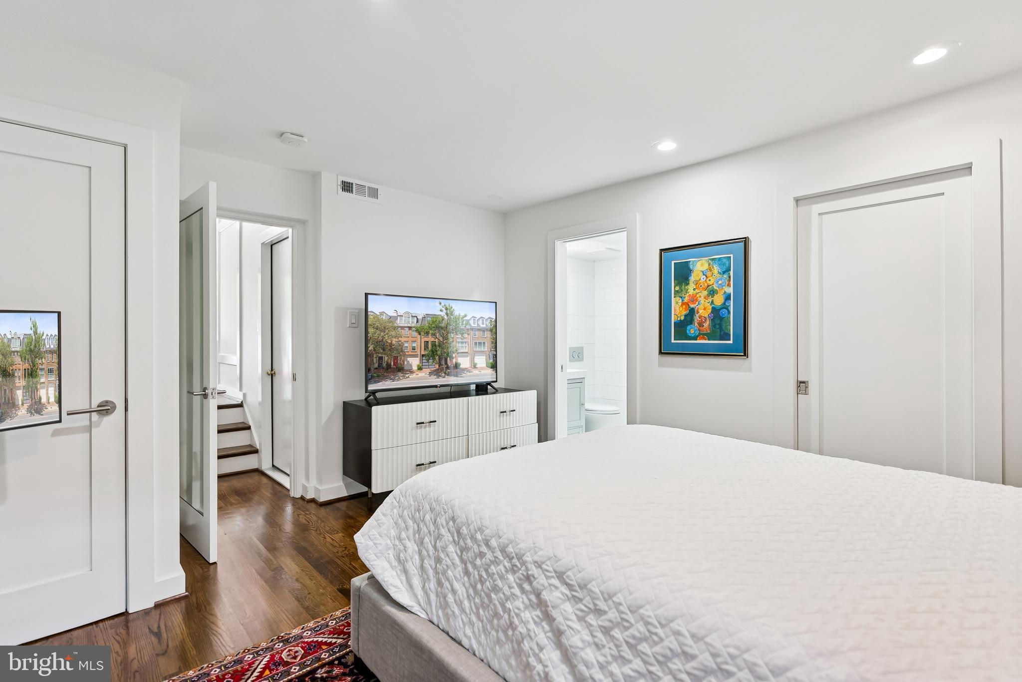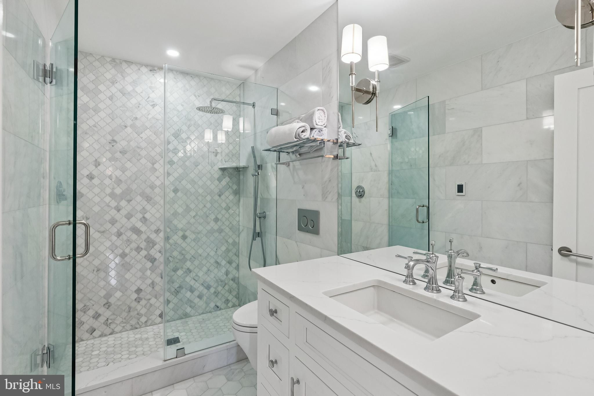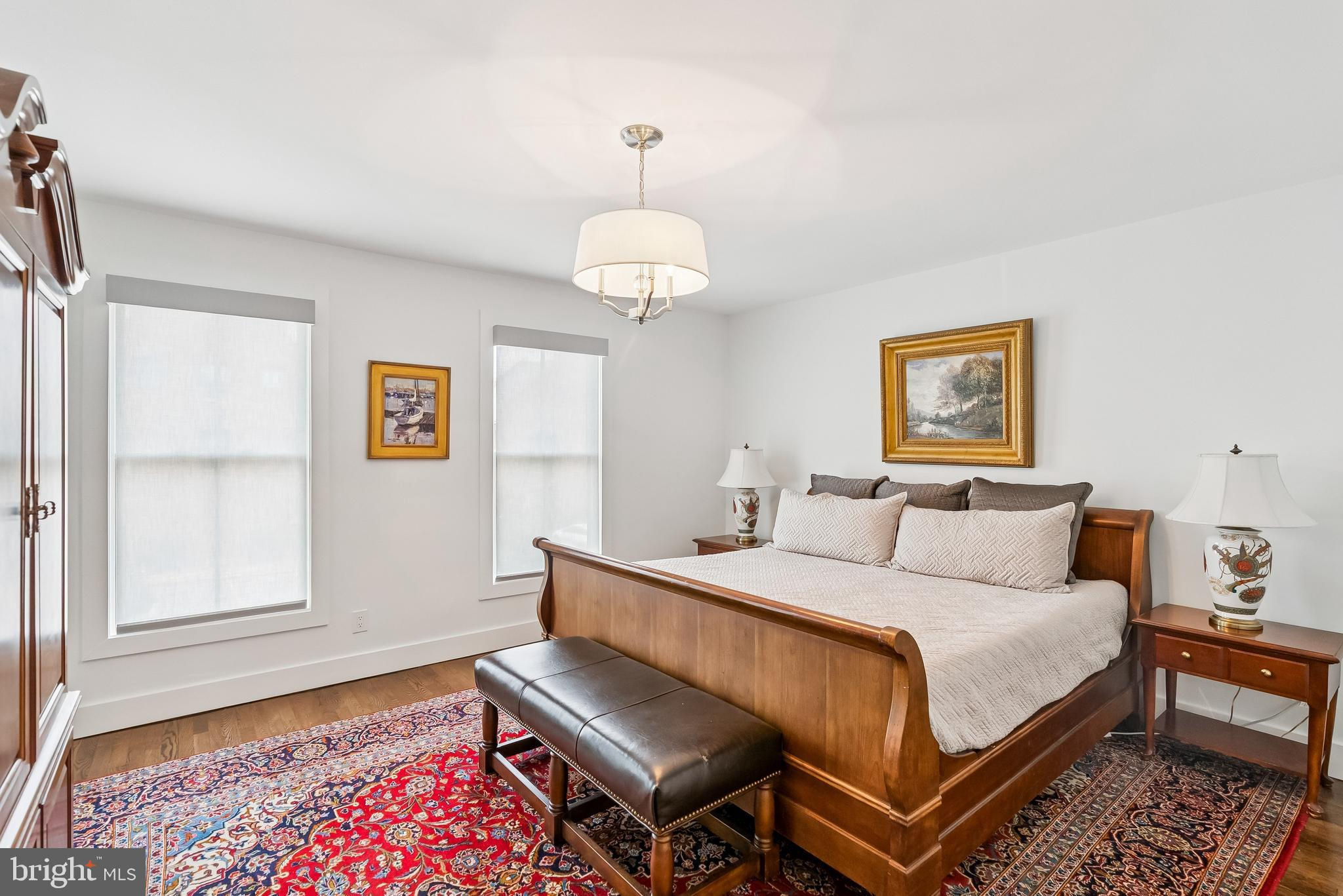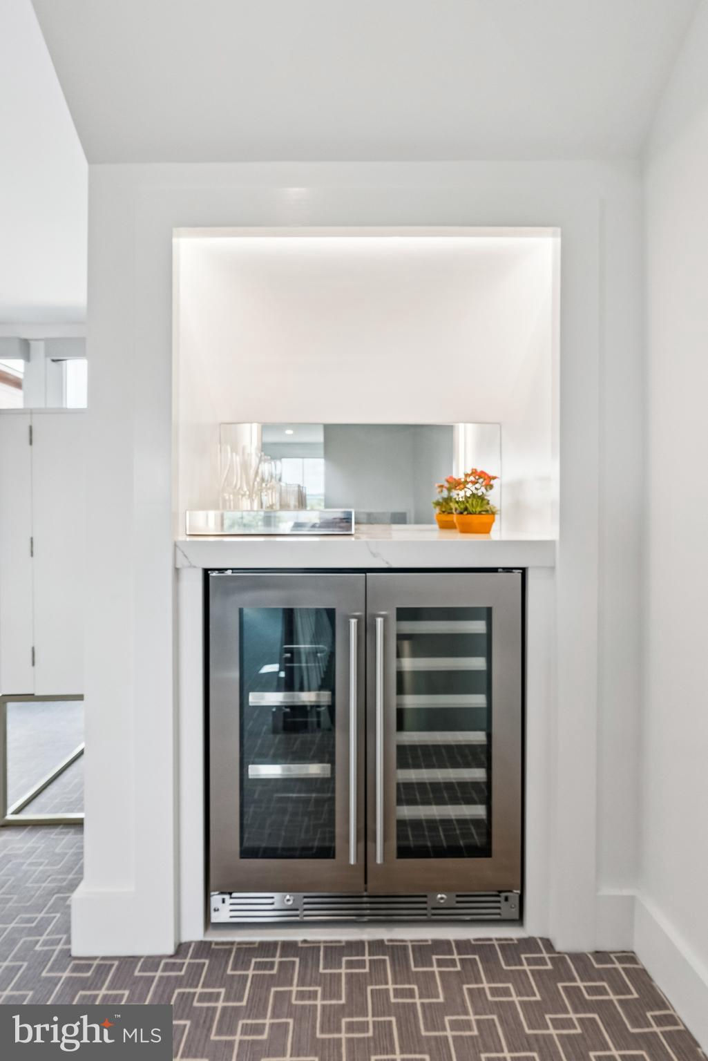 Stunning Fully Renovated Townhouse with Panoramic Rooftop Views This colonial-style townhouse has been completely reimagined through a meticulous two-year, full stud-out renovation, blending timeless architecture with today’s modern luxury. From the herringbone floors and silver-leaf ceiling in the entry to the breathtaking 500 sq. ft. rooftop deck, no detail has been overlooked. The main level showcases a thoughtfully expanded kitchen, featuring a quartz waterfall island, custom cabinetry with integrated Sub-Zero panels, hidden outlets, and a Wolf range. The open floor plan continues into the living room with custom paneled walls, a gas fireplace framed by a seamless 5x12 ft Calcutta ultra quartz slab, and bespoke seating with embossed leather accents. French doors lead to a blue stone patio, perfect for indoor-outdoor living. The lower level offers a private guest suite with egress window, full bath, custom closet, and laundry. Upstairs, the primary bedroom suite features a spa-like marble bath with heated floors, floating European fixtures, and mirrored custom closets. An additional renovated full bath and bedroom complete the third floor. The top level is an entertainer’s dream with a built-in bar, half bath, washer/dryer, and expanded waterfront views through oversized custom Pella windows. French doors open to a Brazilian Ipe hardwood landing with outdoor sauna, leading up to the reconceptualized roof deck. The roof deck provides unobstructed 365-degree views of the Potomac River, Old Town Alexandria, Woodrow Wilson Bridge, and even the U.S. Capitol. Additional highlights include a garage and additional deeded parking space, all new 36x80 Pella windows and doors, a modern glass-paneled garage door, new HVAC system, and custom wire fencing. Every inch of this home has been crafted to create a one-of-a-kind residence that combines sophistication, comfort, and unparalleled views.