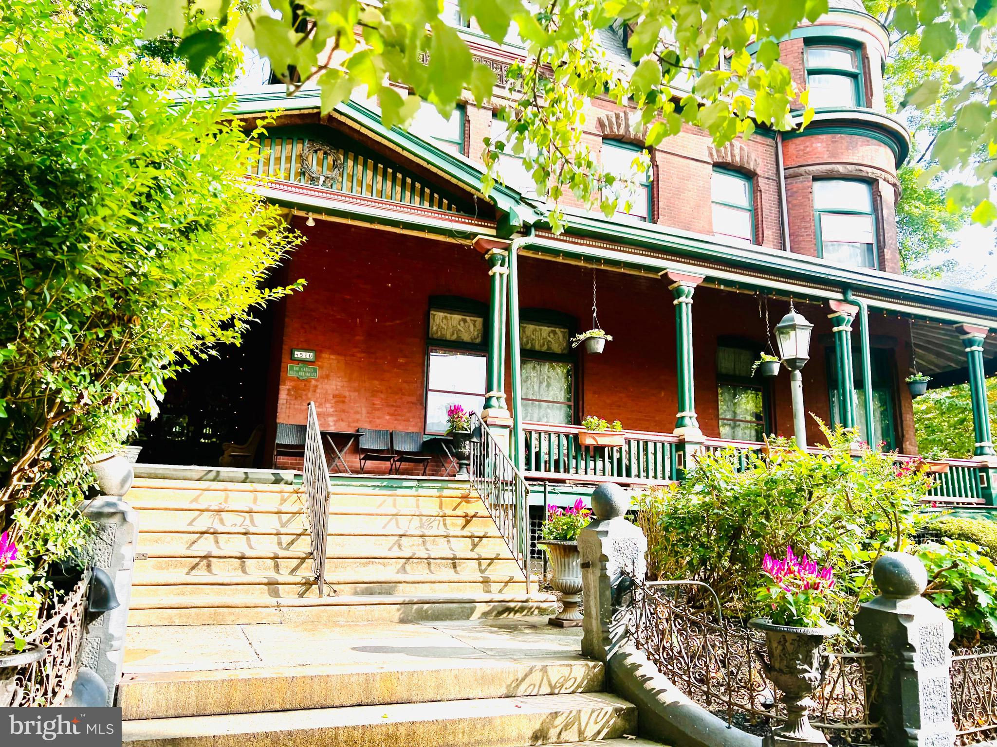 Discover The Gables, a historic mansion in University City, just a block from Clark Park and its renowned farmers’ market. This award-winning property boasts 11 bedrooms, 10 full and 2 half bathrooms, and stunning original features including hardwood floors with intricate inlays, eight elegant gas fireplaces, and impressive 10.5-foot ceilings on the first floor. Large windows provide abundant natural light throughout the spacious interiors. Set on a generous 1/3-acre lot, the property includes a grand wraparound veranda, beautifully landscaped grounds, and paved parking for up to 8 cars. The Gables offers versatile potential in this “as is” property—continue its successful bed and breakfast operation, convert it into a luxurious single-family residence, and explore developing the extra land. With its exceptional location near amenities and just minutes from Center City, this property blends historic charm with modern convenience.