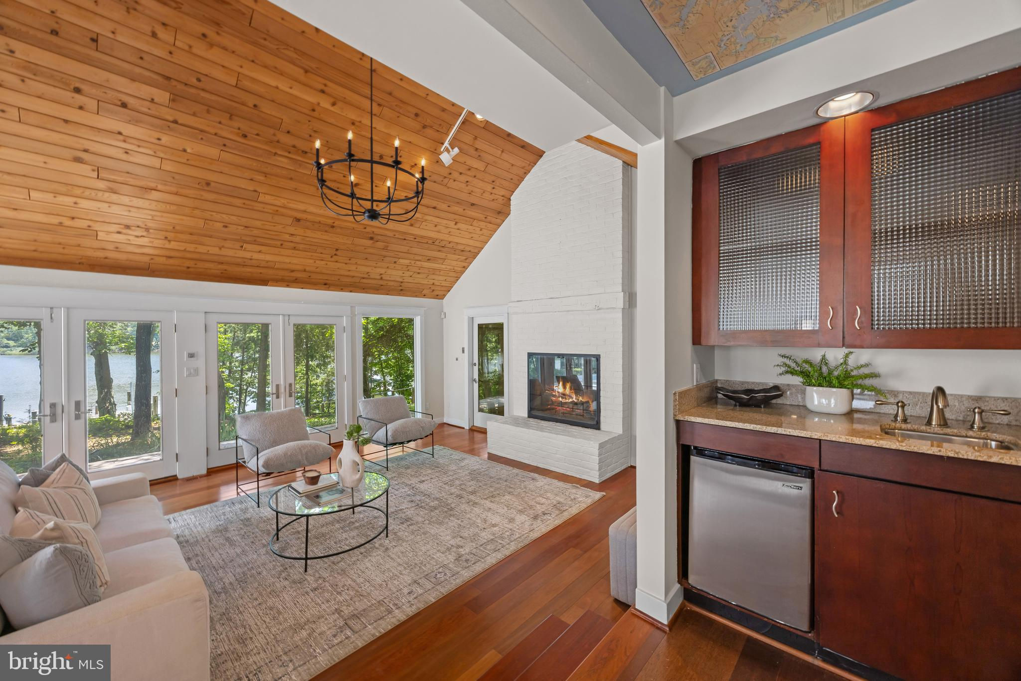 Breathtaking water views and private deep water pier combine for effortless waterfront living. Nestled in the heart of Poplar Point on a serene lot with 350 feet of shoreline, this beautifully updated waterfront home offers panoramic views, exceptional privacy, and a lifestyle designed around comfort, nature, and time on the water. Nearly every room faces the water, with full-width views enjoyed from the expansive deck, pool, and light-filled interior spaces. A wooded path winds through the property to a fire pit overlooking the water, creating a peaceful retreat-like setting. The private deep-water pier features four slips, a 15,000 lb boat lift, a jet ski lift, and space for a 70’ yacht, offering rare flexibility for boating enthusiasts. Inside, the home combines warmth and openness with vaulted ceilings, generous entertaining spaces, and multiple fireplaces. The thoughtful layout offers easy flow for everyday living or hosting guests, with private spaces that include multiple spacious primary suites, guest bedrooms, home office, and much more. Backed by modern systems including a whole-house generator, efficient HVAC, radiant heat, and well/septic with water treatment, the home is move-in ready and built for year-round enjoyment. This is a rare opportunity to own a turn-key waterfront property where the views, setting, and design all work in perfect harmony. A true escape, this property is located in the South River school district and it is the ideal location for quickly accessing the South River or Chesapeake Bay by boat, heading by car to Historic Annapolis or hopping on Rt. 50 to get back to Washington, DC. Escape to this waterfront oasis and celebrate the Annapolitan lifestyle. Welcome Home!
