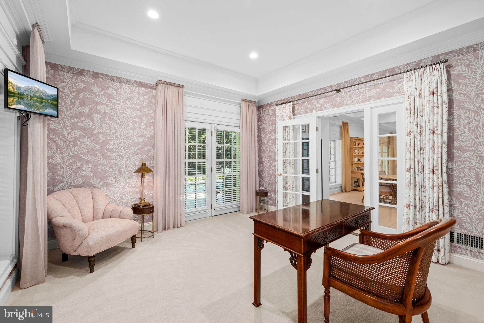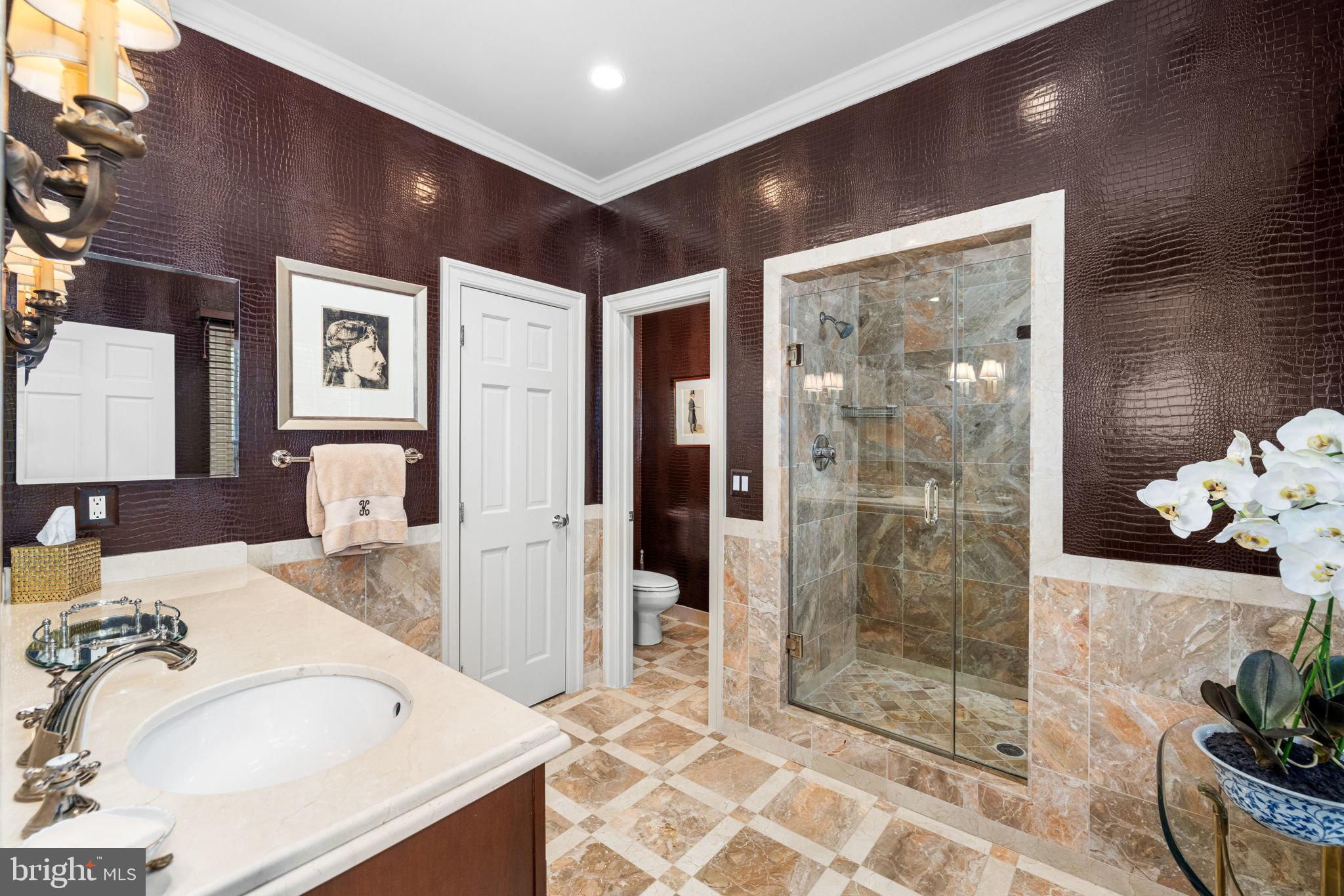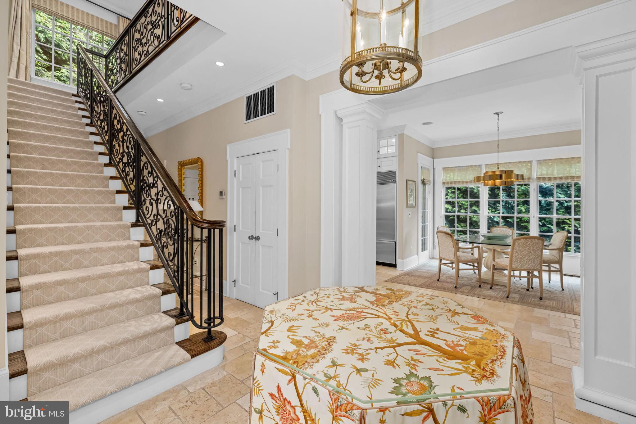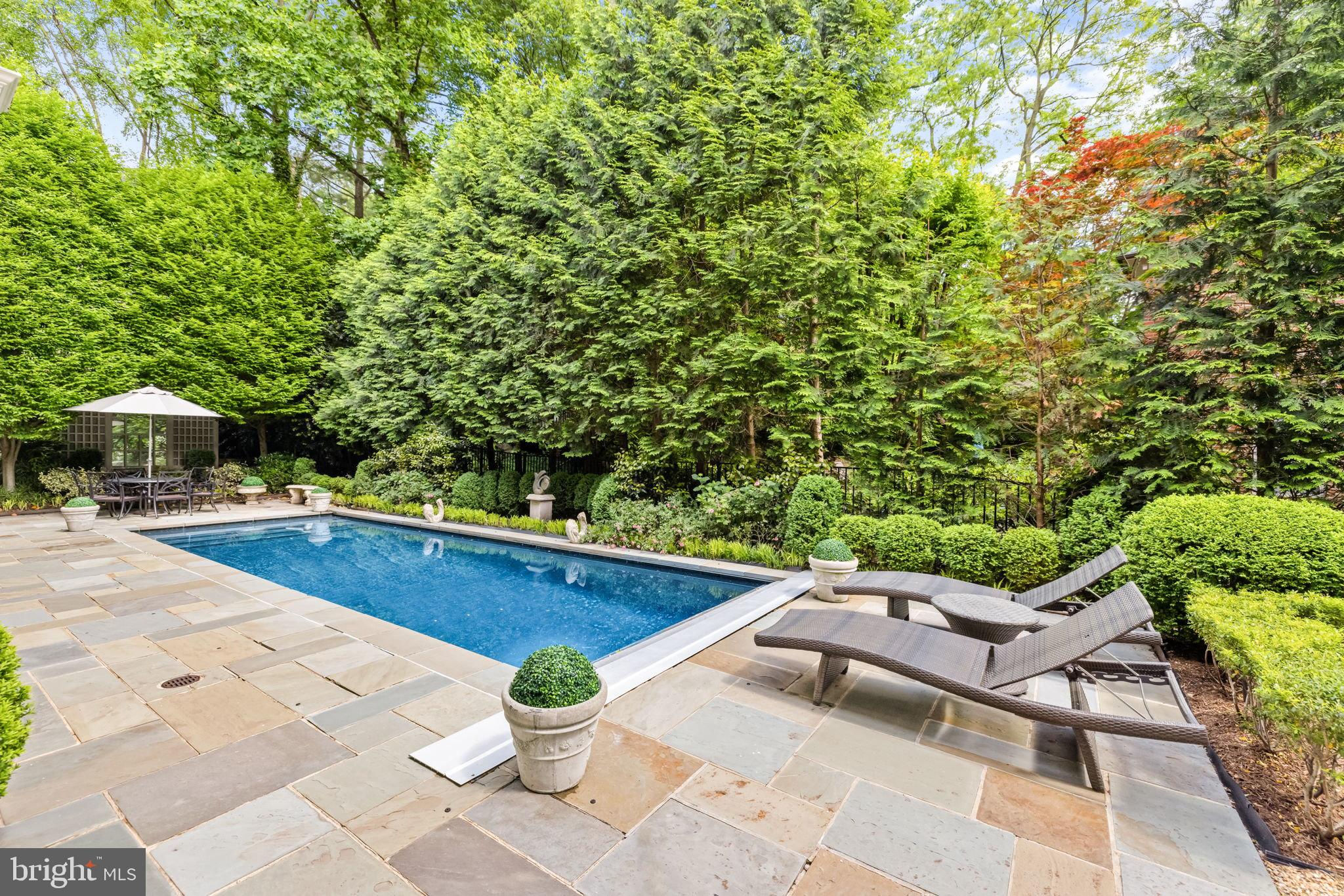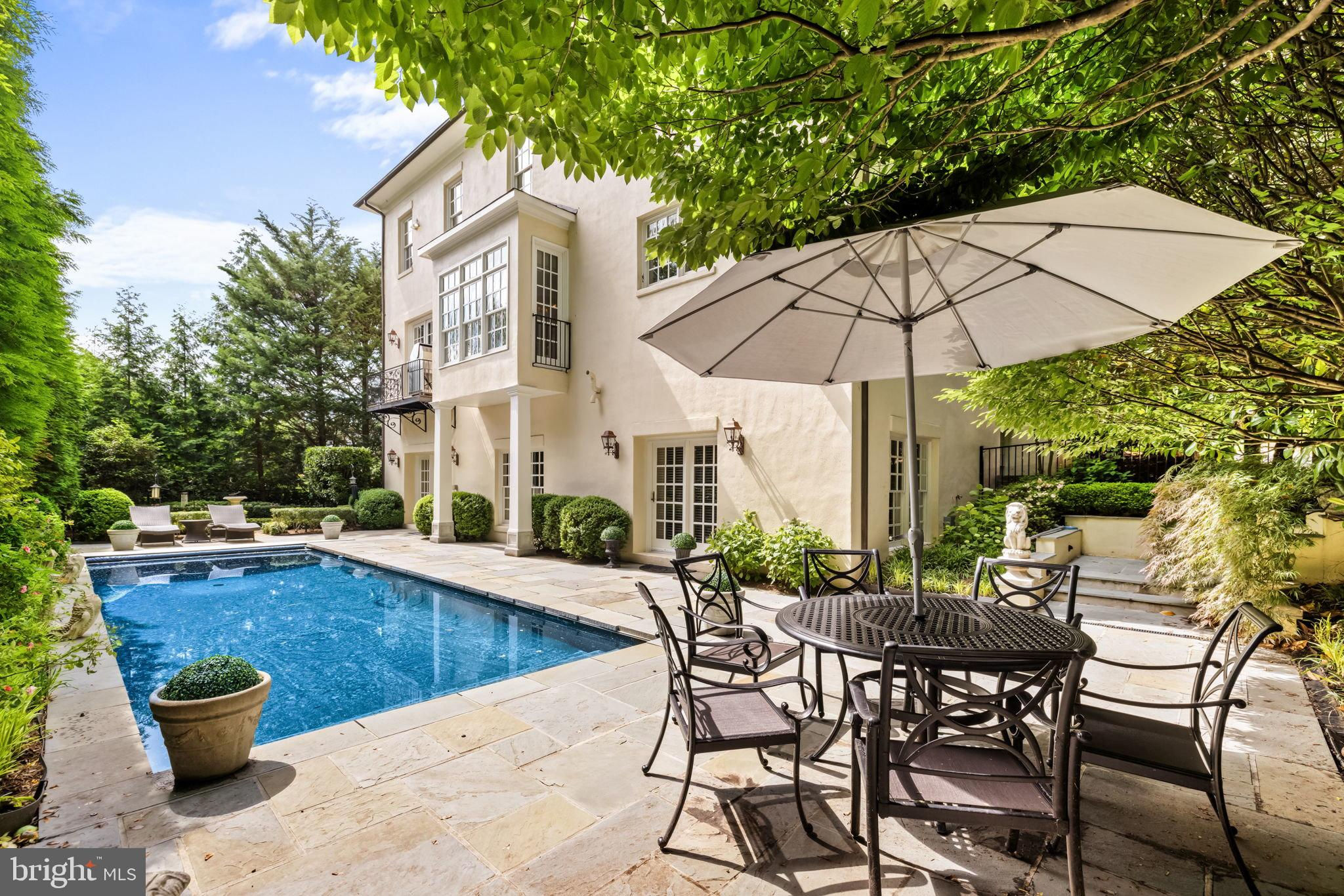 Custom built in 2001 and beautifully renovated since that time, this is one of the most stunning homes in Berkley. With 10’ ceilings on the main level and gracious room sizes throughout, the light-filled residence offers an ideal flow ideal for entertaining and everyday living, and also includes a fabulous heated pool in the private and beautifully landscaped back garden. With approximately 5,400 finished square feet, the through center hall layout includes gorgeous formal living and dining rooms, both with exquisite millwork, built-ins and gas fireplaces, and a large kitchen with island open to breakfast room and family room (with a 3rd gas fireplace), all overlooking the pool and gardens and on the main level. The skylit second level encompasses four bedrooms, all with ensuite baths, including a breathtaking primary suite with 11'+ tray ceiling and gas fireplace, dual walk-in closets and primary bath with tub, separate shower and dual vanities. The current configuration also allows for a second bath to serve the primary suite, so no need to share! The inviting lower level features a recreation room and study, both with 11’ tray ceilings, a fifth bedroom and bath, laundry room and access to the two car garage. The heated pool and patios are surrounded by beautiful mature landscape and gardens. Residents enjoy access from 49th Street to the trails of Battery Kemble Park as well as access to the C&O Canal towpath and the restaurants and shops of MacArthur Boulevard. This is a special one - don’t miss it!