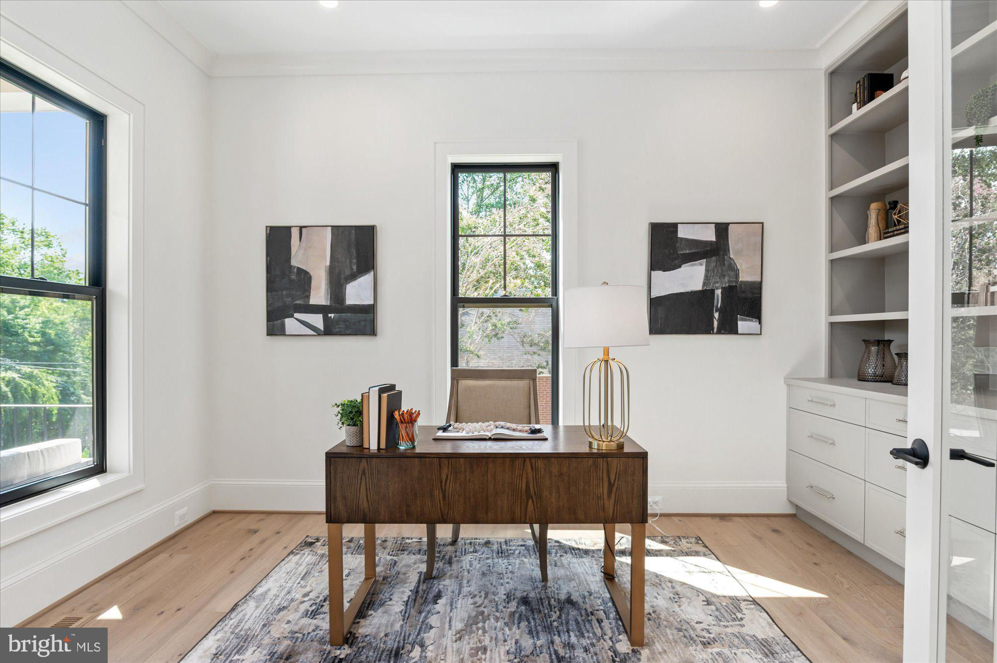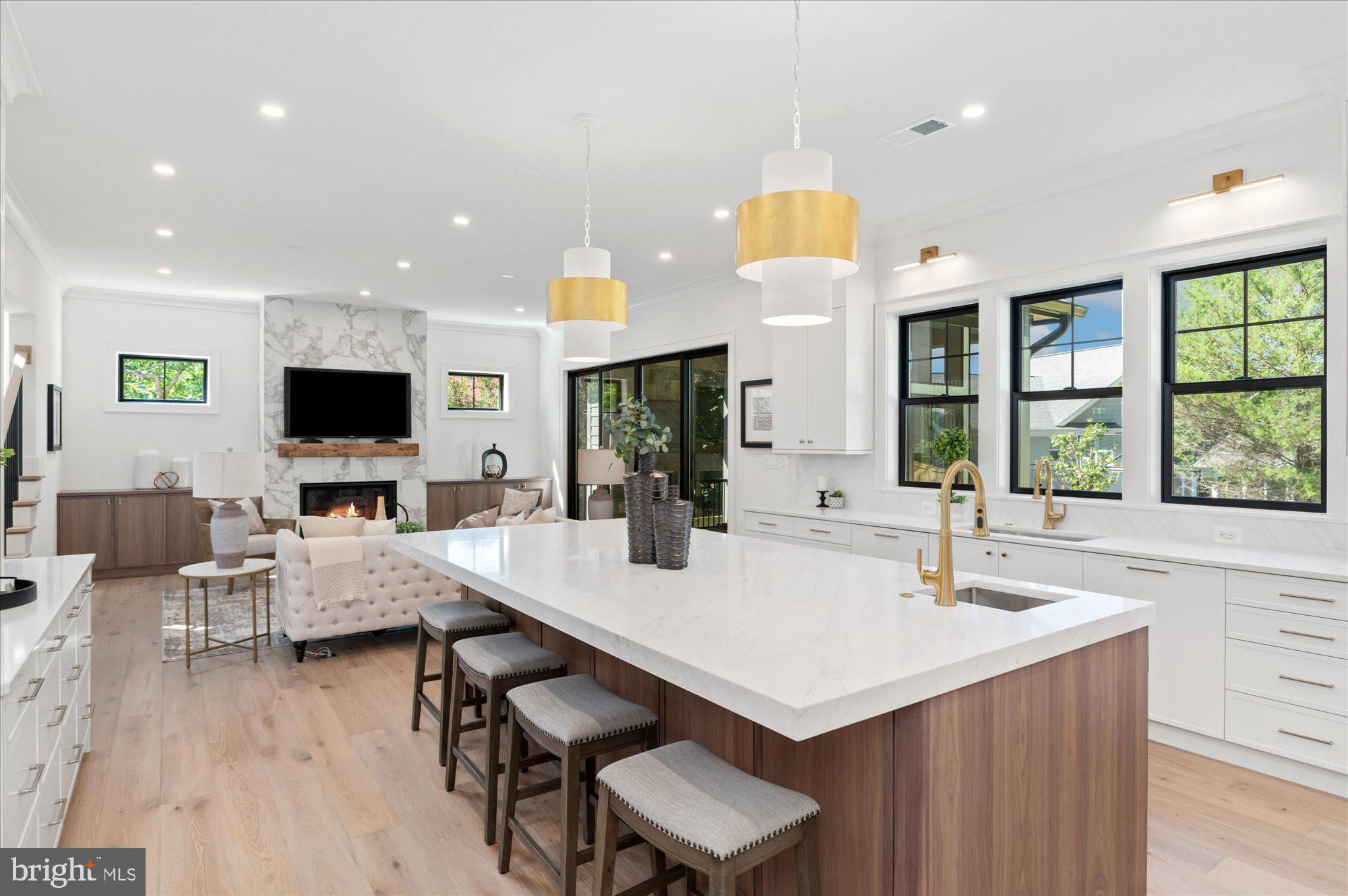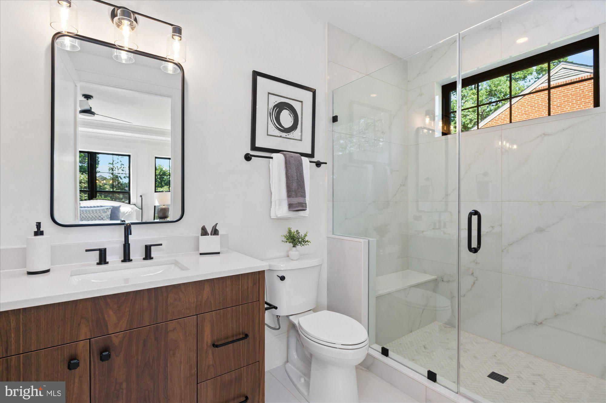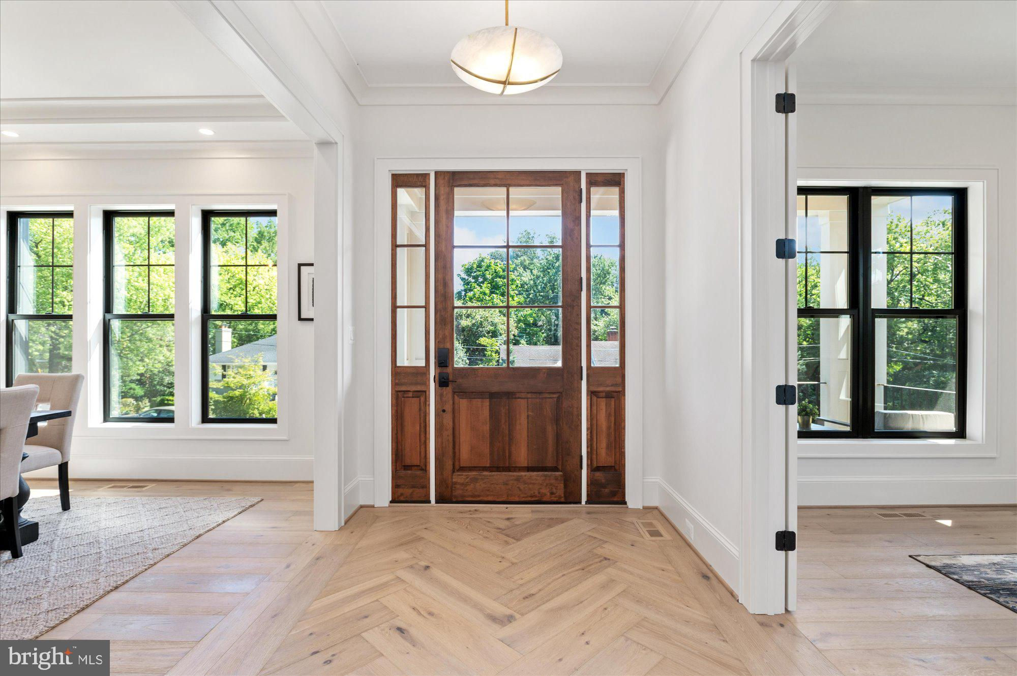 Now finished and ready to move in! Cherry Hill Custom Homes presents this beautiful new home in North Arlington, just a stone's throw from Jamestown Elementary. This home features 7 bedrooms, 7 full bathrooms, and one powder room with 6,791 square feet of thoughtfully designed living space over three levels. The main level includes 10ft ceilings, gorgeous wide-plank engineered white oak wood floors, a beautiful gourmet kitchen with frame-less custom cabinetry, quartz countertops, and Thermador appliances. The kitchen sits between a great room with coffered ceiling and gas fireplace with tile surround and a casual family dining area and spacious walk-in pantry. Through the butler's pantry is an elegant formal dining room with abundant natural light. The bluestone screened porch with fireplace and rear patio off of the great room provide two amazing outdoor living spaces overlooking the flat backyard. A guest suite, private study, dual staircases, and mudroom with built-in cubbies complete the main level living spaces. The upper level is highlighted by a luxurious primary suite with see-through fireplace, spacious dual walk-in closets with built-ins, a spa-like bathroom with heated floors, double vanities, stand-alone soaking tub, and heavy glass enclosed shower. The lower level includes a recreation room with wet bar, media room, and two additional en-suite bedrooms. This home includes an elevator that services all three floors. The fully fenced yard is professionally landscaped and includes an irrigation system. Convenient to Jamestown Park, Washington Golf and Chesterbrook Shopping Center. Jamestown ES/ Williamsburg MS/ Yorktown HS.