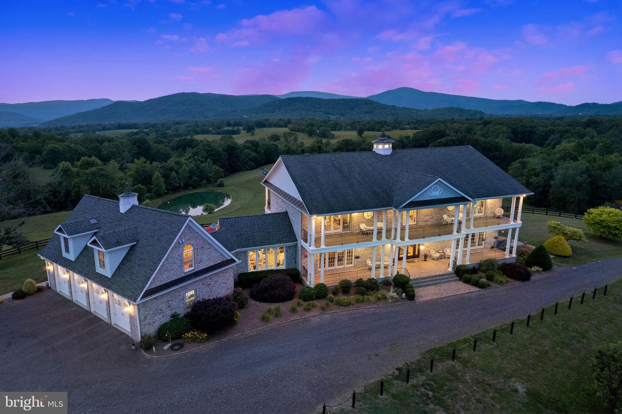 Beautiful 27+ acres of rolling pastures with pond, Covington River frontage and some of the most stunning 360-degree views we’ve seen — all conveniently located in-between Sperryville and “Little” Washington in the heart of Rappahannock County. The main residence is an immaculate 9,000+ square feet of elegant and comfortable living and entertaining spaces. Elevator access to all three finished levels. Each entertaining room and all four main house bedrooms open directly to their own sweeping views from a whopping 2,500 square feet of balconies and porches. The residence was designed to showcase the owners' love of art and antiques and the stunning vistas of Rappahannock County and the Blue Ridge Mountains. Everywhere you turn, there is a special treat waiting. A wide gallery with lighting for the most discerning art collector. Delightful year-round sunroom. Flexible multi-use finished basement, ready for movie night, wine storage, workouts, overflow guest quarters - name it! Impressive 4-car garage with workshop spaces and, above the expansive garage, a nice guest/rental/caretaker 1BR/1BA apartment. You and your guests will love -- and live --the unobstructed views of the Blue Ridge, Shenandoah National Park, and some mighty gorgeous, rolling hills and pastures. Located just a few miles from both Little Washington and Sperryville, you are a stone's throw from world-class restaurants, breweries, wineries, and the entry to the National Park. Hummingbird Hill offers that rare combination of space, views, privacy, and elegant comfort in one of the most beautiful spots in the Eastern US.