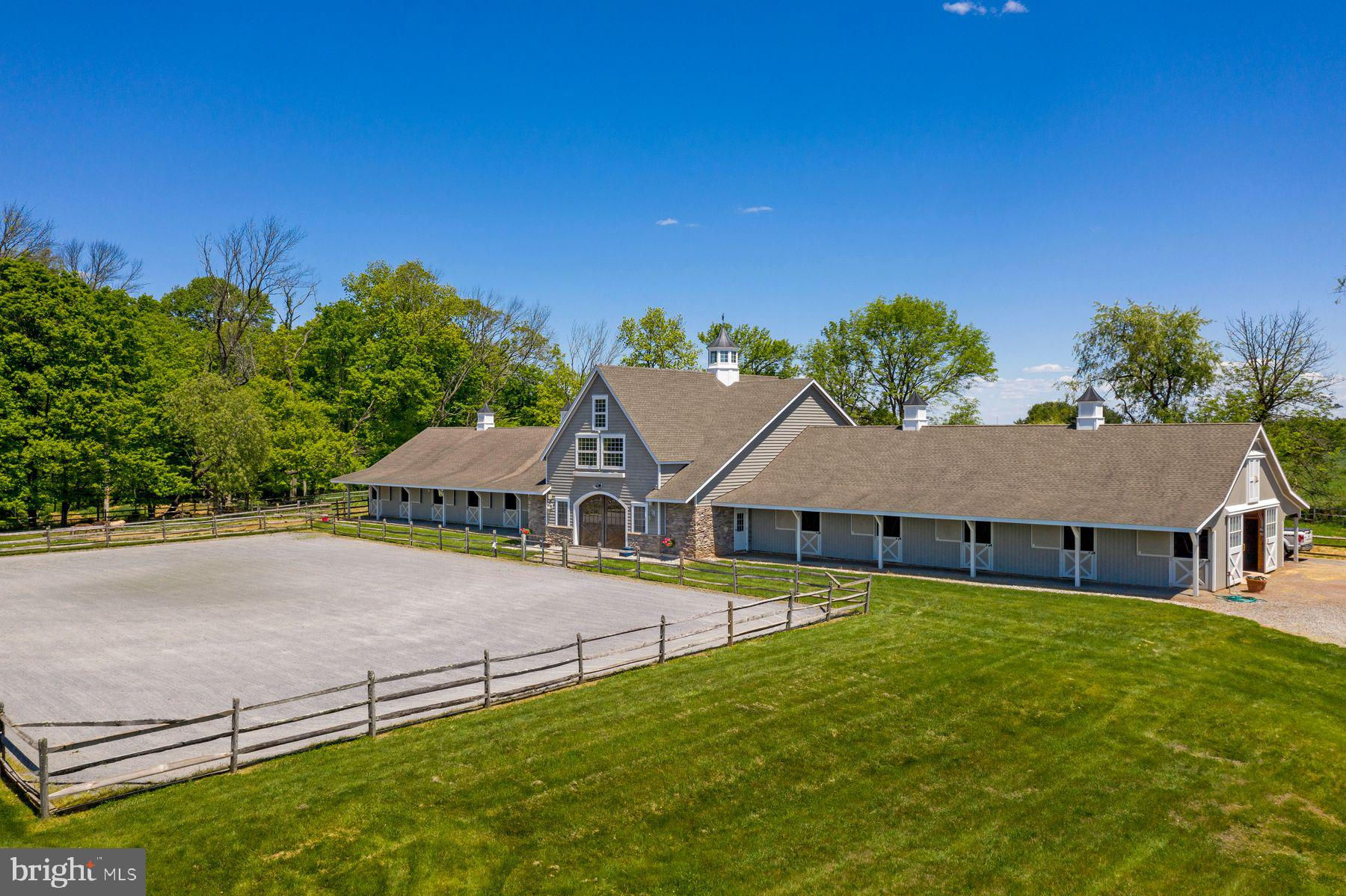 Blackrock Farm is an exceptional country estate offering unparalleled versatility for equestrian enthusiasts and those yearning for an exquisite retreat or entertainment haven. Nestled on 36 acres of preserved land in the heart of Hunterdon County’s esteemed horse country, this property seamlessly blends the quiet countryside with modern luxury. Recently enhanced with contemporary updates and featuring a new resort-style pool, Blackrock Farm welcomes you. The home offers the perfect balance of grand and intimate spaces with a sprawling floor plan that provides four levels of exceptional living spaces with picturesque views from every room. The home boasts exquisite millwork, a gourmet kitchen, and a dramatic two-story great room with cathedral ceiling, with a handsome floor-to-ceiling stone, wood-burning fireplace, a wet bar and patio access. The stunning library and entertainment wing offers floor-to-ceiling built-ins, a wet bar, game room, powder room and access to the covered terrace and patio with tranquil views. A thoughtfully designed first-floor guest wing allows for privacy and comfort with a wraparound terrace and gorgeous views of the stables. The finished walkout lower level with a sprawling floor plan, fireplace, wet bar, 1 1/2 bathrooms and separate entrances, provides endless possibilities for recreation, fitness or entertainment. The upper level of the home provides a spacious primary suite with gas fireplace, pastoral views, two walk-in closets with custom built-ins and a sumptuous bathroom. There are 3 additional rooms on this level, two of which are en suite bedrooms. The 3rd floor flex space offers an abundance of natural light and amazing views. This space is ideal for a playroom, yoga studio, artist studio, office or guest quarters. The versatile floor plan is perfect for multi-generational living, au pair suite and guest quarters. Equestrian amenities include a B&D Builders custom-designed barn with 19-stalls, matted with automatic waterers, hot/cold wash stall, partially climate-controlled barn with a tack room, office, bathroom, and two-story center aisle with upper-level loft - perfect for events, hobbyists, or car enthusiasts. Eight lush pastures, 5 with automatic waterers, a double run-in shed and a 140' x 90' outdoor arena and 9 acres of woodlands at the backend of the property. Located close in proximity to top equine medical care and trainers. Tucked in the picturesque countryside yet conveniently located between NYC and Philadelphia, you are offered easy access to the charming towns of Lambertville, Stockton, New Hope, and Princeton. Whether you dream of an equestrian lifestyle, a peaceful country retreat, or your ultimate weekend getaway, Blackrock Farm offers an exceptional opportunity to live your dream. The property can be purchased furnished. **Please note, this property cannot be subdivided. This property is Farm Assessed and there is a Deed of Easement - Agricultural Retention and Development Program.