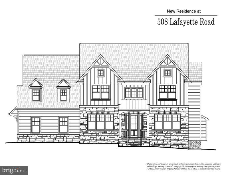 Introducing 508 General Lafayette, a gorgeous new construction home rarely offered in desirable Merion Park. Set on a premium 100 ft wide lot, this home is a rare opportunity to live in one of Lower Merion's most desirable neighborhoods in a custom built home by esteemed builder Vintage Development. 508 General Lafayette blends classic Main Line Charm and finishes with a modern floor plan designed for today's living. Curb appeal abounds with natual ashler stone combined with board and batten cement board siding and custom roof eaves with ornamental gables. An inviting Portico welcomes you into the classic Center Hall entry with 9 ft ceiling and filled with natural light. A large, formal living room is next to the entry and offers crown molding, oversized baseboards and large, bright windows. The formal Dining Room is also adjacent to the entryway and will be a special place for occasions big and small and memories to be made. This wonderful gathering space has classic wainscoting, room for large gatherings and access to the Butler's pantry and walk-in kitchen pantry. Through the pantry is the stunning Kitchen/Family Room area offering the best in modern living. The deluxe kitchen is a chef's dream that includes sleek Century Carriage House cabinetry, a 9 Ft island with Quartz Countertops, 48' Thermador duel fuel range and a 42' built in Thermador Refrigerator. This opens to the warm and inviting Family Room with coffered ceilings mantle, direct vent gas fireplace and large oversized windows for great natural light. A wonderful and bright morning room completes this lovely space that is surrounded by three walls of windows and features a slider to the rear deck perfect for dining al fresco in the private and flat backyard. Off the kitchen is the spacious mudroom with more built in shelving and custom built cubbies, a convenient full bathroom with tiled shower and access to the 2 car garage. Finishing off the first floor is a large, private study great for a home office for this level. Heading upstairs to the second floor are 5 bedrooms including a grand Primary suite. This retreat space offers vaulted ceilings in the bedroom, two spacious walk-in closets with Top Shelf closet systems and a luxurious 4 piece bath with a gorgeous soaking tub, Carrera tile and a beautiful walk-in shower. Floor plan continues with two large additional bedroom suites (2 and 3) that each offer walk-in closets and full bathrooms. Bedrooms (4 and 5) are also spacious and share a charming Jack and Jill bathroom. Rounding off the second floor is the second floor laundry room tiled and with additonal storage. Extra living space continues with the finished basement that offers 9 ft ceilings and lots of fun possibilities. Beginning with the large rec room perfect for a playroom, movie theater, game area and a second finished room with an oversized window, closet and access to the full bathroom. This bonus space could work as a 6th bedroom, 2nd office, studio or great au pair suite. A third finished space on tis level could make a top of the line gym, wine room, you name it, lots of creative options here. Top notch construction and materials throughout, this home can be delivered by the end of 2025 and options remain. Incredible location in Merion Park just a short walk to General Wayne Playground, downtown Narberth and easy access to Center City, Philadelphia. Make your appointment today! **Taxes shown are not correct. With new construction, reassessment occurs after settlement to include the lot and improvements by the county. ** All renderings/floor plans are artist interpretations of the plans. They are not exact, and are subject to errors, omissions and changes. Any photos and/or video tours are of similar properties, included to illustrate builder's similar finishes/styles.**