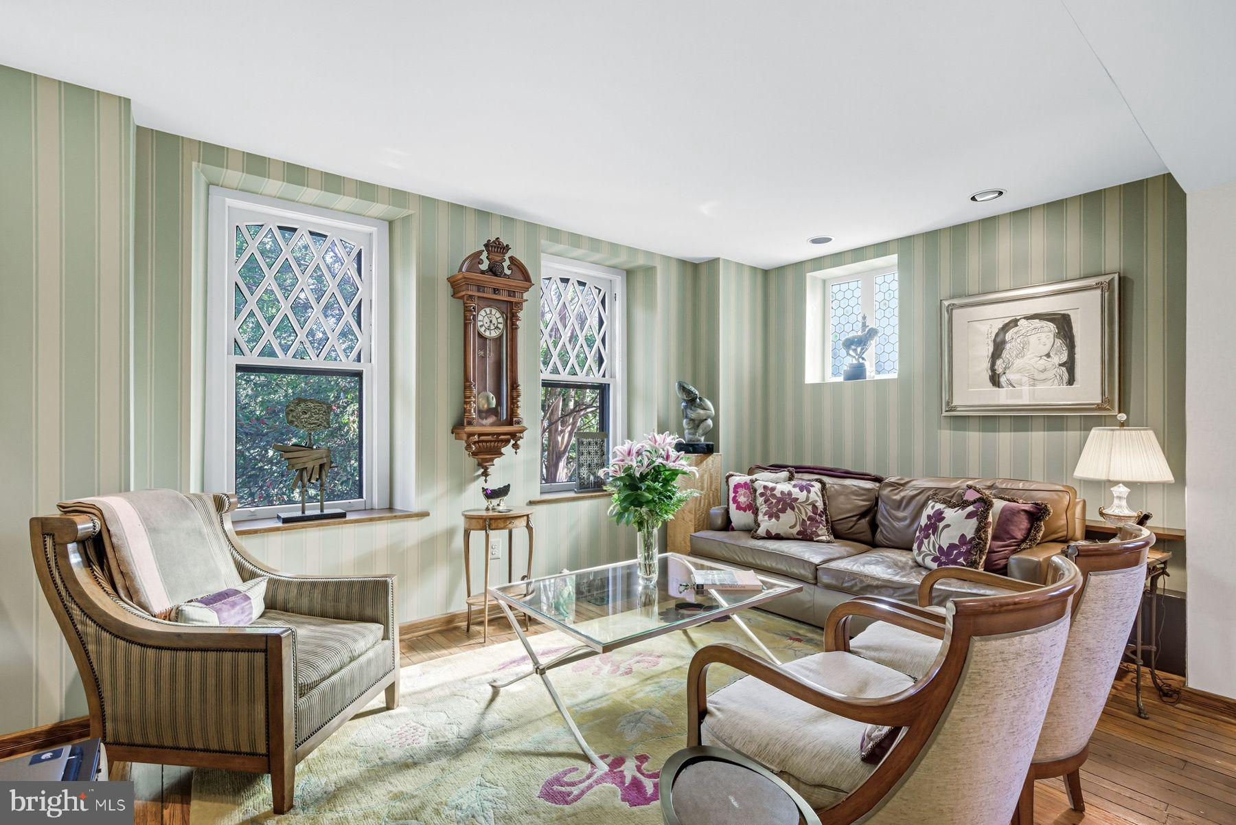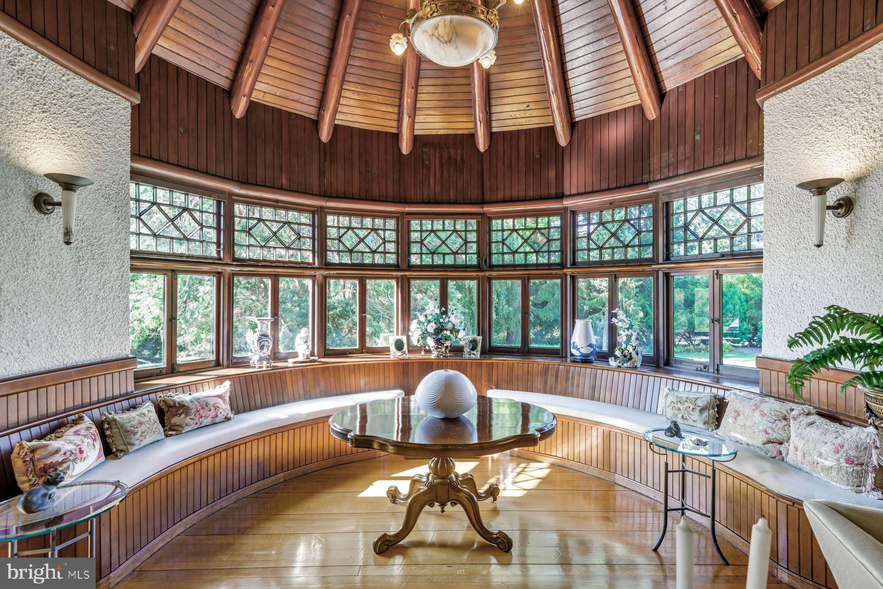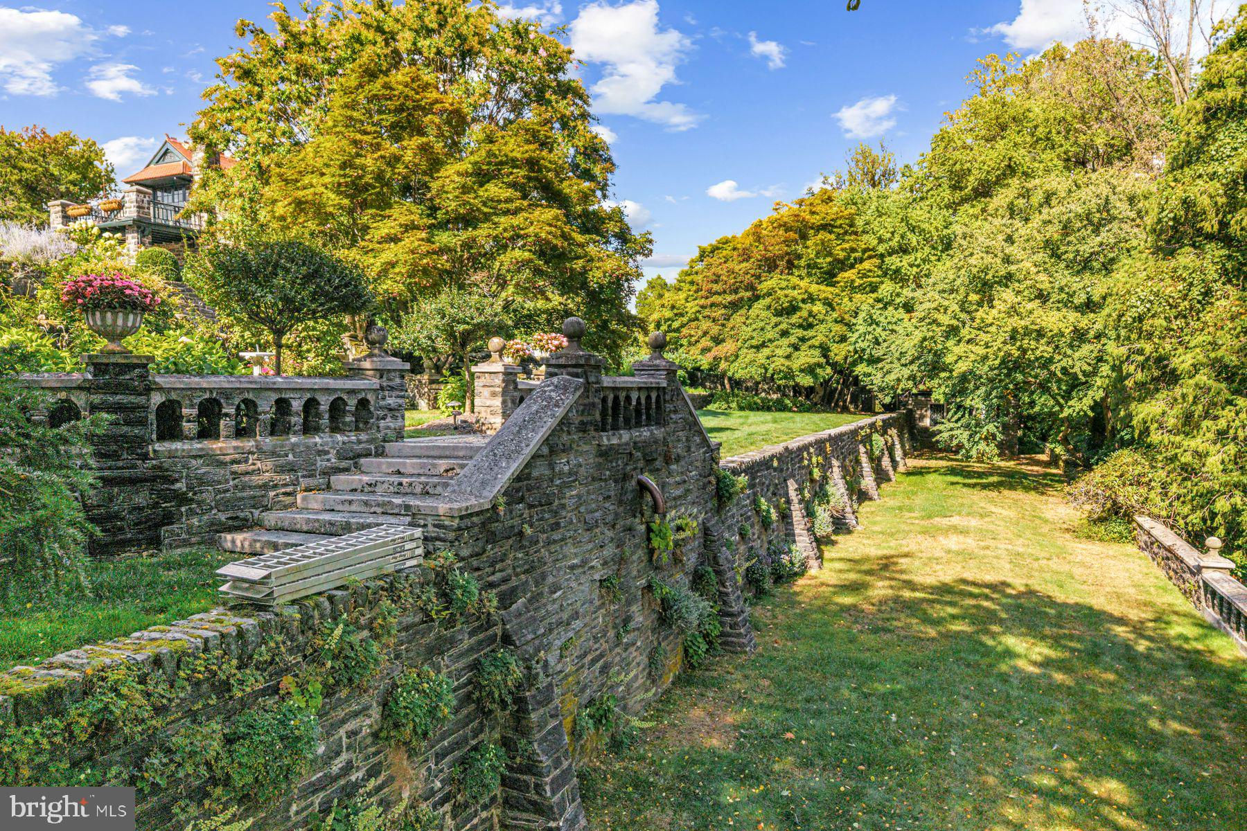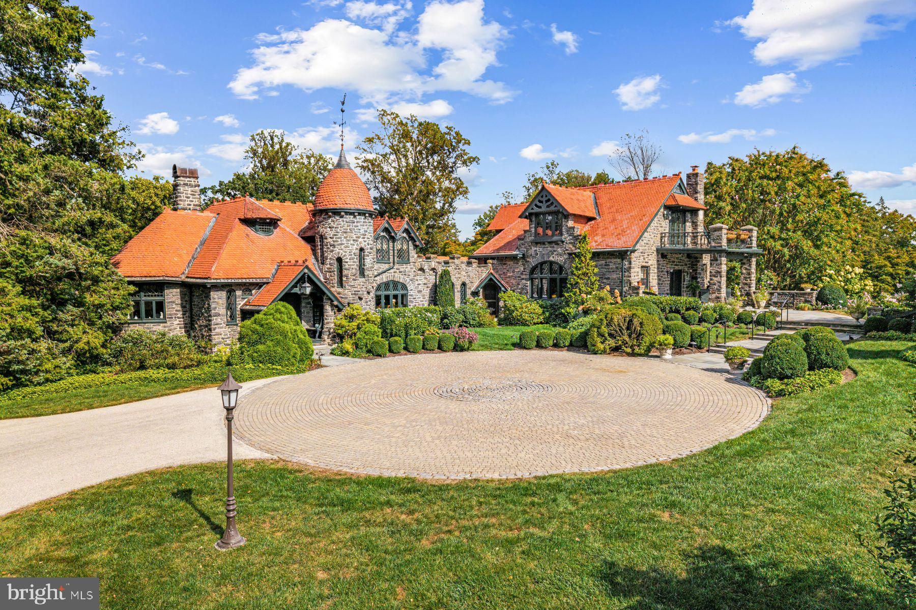 WOW!!! This incredible Radnor estate built in 1882, was once known as Fox Hill Farms and was originally sited on 560 glorious acres at the highest point in Bryn Mawr. Now set on 5 beautifully landscaped private acres with flowering perennials, specimen trees and breathtaking views, the fabulous stone main residence with tile roof, separately deeded charming guest/ gate house and tennis court await their next lucky stewards, with both parcels being included in this listing. The current owners have meticulously restored the original architectural designs and materials, while completely modernizing the infrastructure and amenities of the residences including updated HVAC, electrical systems, new generator and more. Endless features that afford comfortable everyday living and easy entertaining include sun-filled leaded glass arched and eyebrow windows, fabulous wide plank floors, massive mahogany moldings and millwork, gracious entrance foyer, soaring great room ceiling with restored log beams and walk-in Philadelphia brownstone fireplace, expansive dining room with hidden wet bar private office, large cherry eat-in kitchen with prep island, gas cooktop, double ovens, SubZero refrigerator, breakfast room and enormous "icebox" pantry, 2 first floor powder rooms, cozy family room off of kitchen area and a generous first floor guest bedroom suite with full bathroom. The main staircase is dedicated to a spacious second floor Primary Suite with gracious bedroom opening up to 2 balconies with glorious views of the gardens, grounds, terraces, stone walls, flowering pergola and water fountain, 2 customized walk-in closets, sitting room with fireplace, luxurious bathroom with sunken tub, walk-in frameless glass shower and separate commode room. A second staircase leads up to a third bright bedroom suite with bright bedroom and bathroom featuring endless views of the jaw dropping grounds. The dry, partially finished lower level offers a potential 4th bedroom with full bathroom, exercise area, laundry room and lots of storage The stately guest/ gate house also offers private living or working spaces with a potential 5th bedroom, full bathroom, kitchen and living/ dining room. This incredible, one-of-a-kind historic oasis offers endless opportunities for expandable spaces to suite any buyer's desires. Close to renowned Radnor schools, and private schools and universities, a wide variety of recreational facilities, clubs, all forms of transportation, wonderful restaurants, Philadelphia Airport and more. A rare jewel!! LOW TAXES!