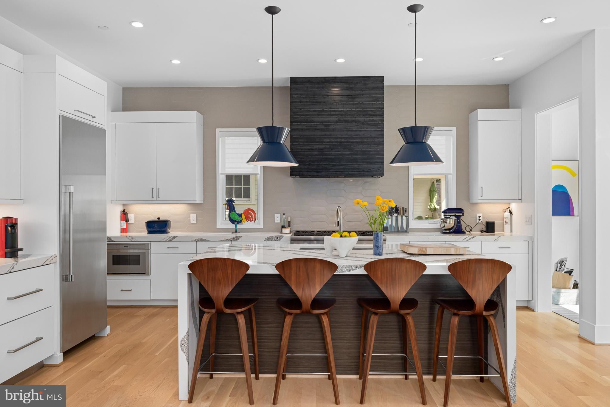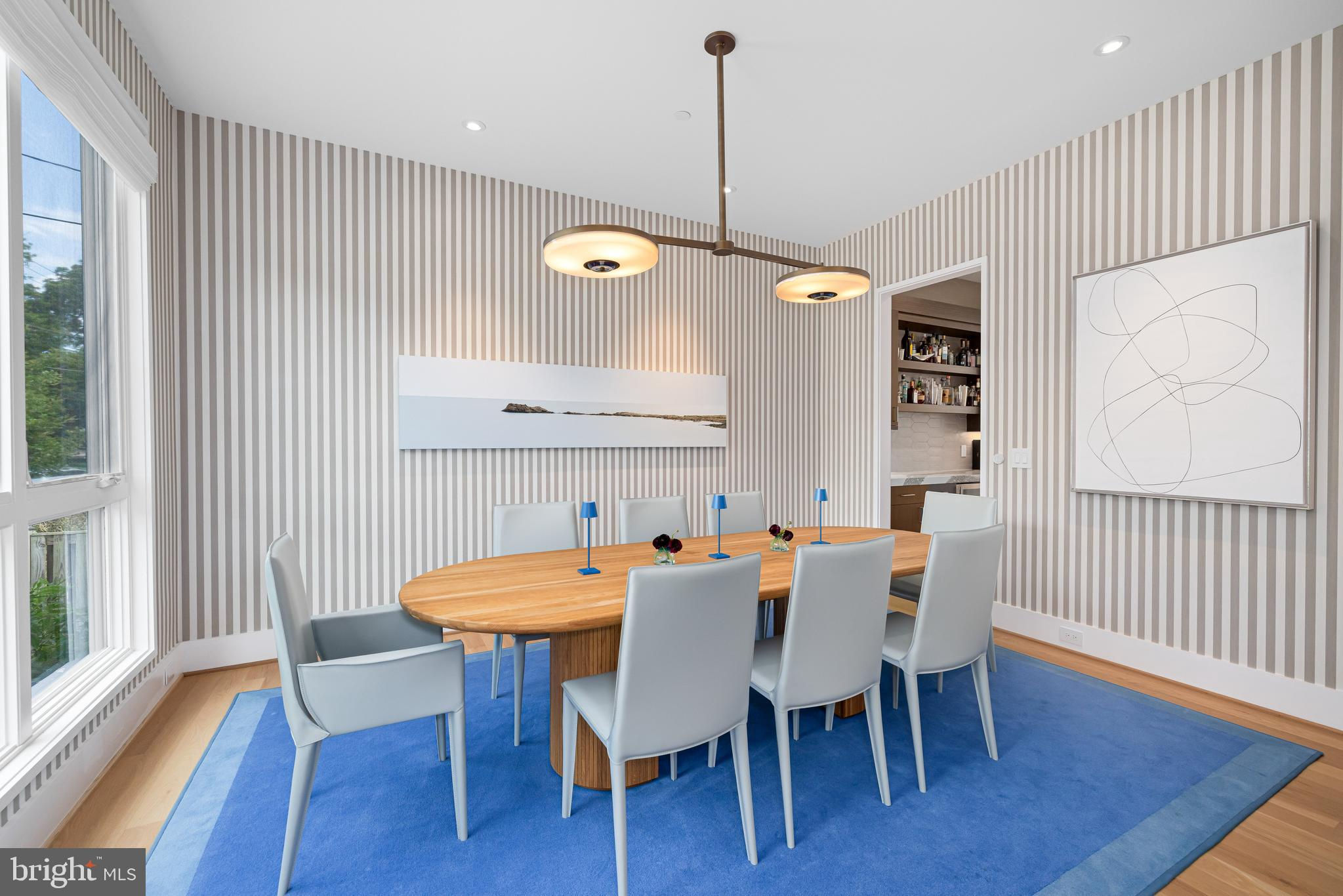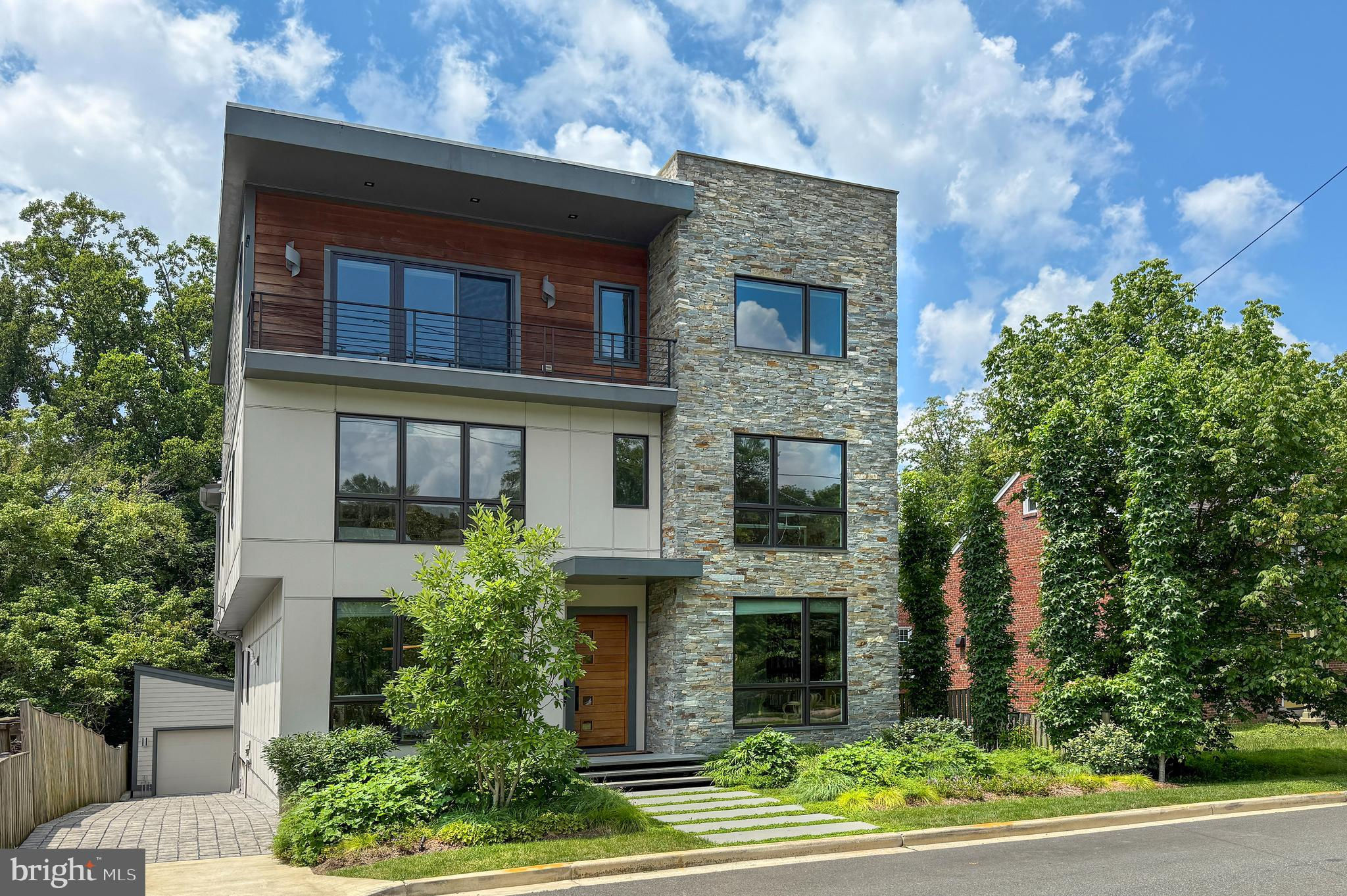 A Modern Masterpiece in the Heart of the Palisades. This exceptional 6-bedroom, 5.5-bathroom residence offers 5,150 square feet of meticulously designed living space across four levels. Built in 2019 by local builder Bo-Bud, the home boasts a striking blend of natural stone and wood paneling, creating a contemporary aesthetic that is both inviting and sophisticated. Floor-to-ceiling windows flood the interiors with natural light, enhancing the open-concept layout and highlighting the home's luxurious finishes. Designed for modern living, the home features a gourmet kitchen equipped with top-of-the-line appliances, elegant primary bedroom with luxurious ensuite bathroom, a spacious third-floor loft with a wet bar, and multiple outdoor spaces, including a rear sun deck and two balconies. An elevator services all levels, ensuring convenience and accessibility. The landscaped backyard backs directly onto Carolina Park, offering unparalleled privacy and a serene natural backdrop. The front offers a modern layered garden, designed by Moody Graham, features perennial native plants and local bluestone walk and floating stairs. Additional amenities include custom shades throughout, a solar array that all but eliminates electricity bills, UV coated windows on all rear windows and entire first floor, a two-car detached garage, driveway, and parking pad. All providing both functionality and style. Situated in the highly sought-after Palisades neighborhood, this residence combines the tranquility of suburban living with the convenience of urban access. The Palisades is known for its tree-lined streets, strong community spirit, and proximity to the Potomac River. Residents enjoy a variety of local shops, restaurants, and recreational facilities, including the nearby Palisades Recreation Center and the annual July 4th parade, a cherished local tradition. With its blend of modern luxury and neighborhood charm, 5624 Sherier Place NW offers a unique opportunity to experience the best of both worlds.