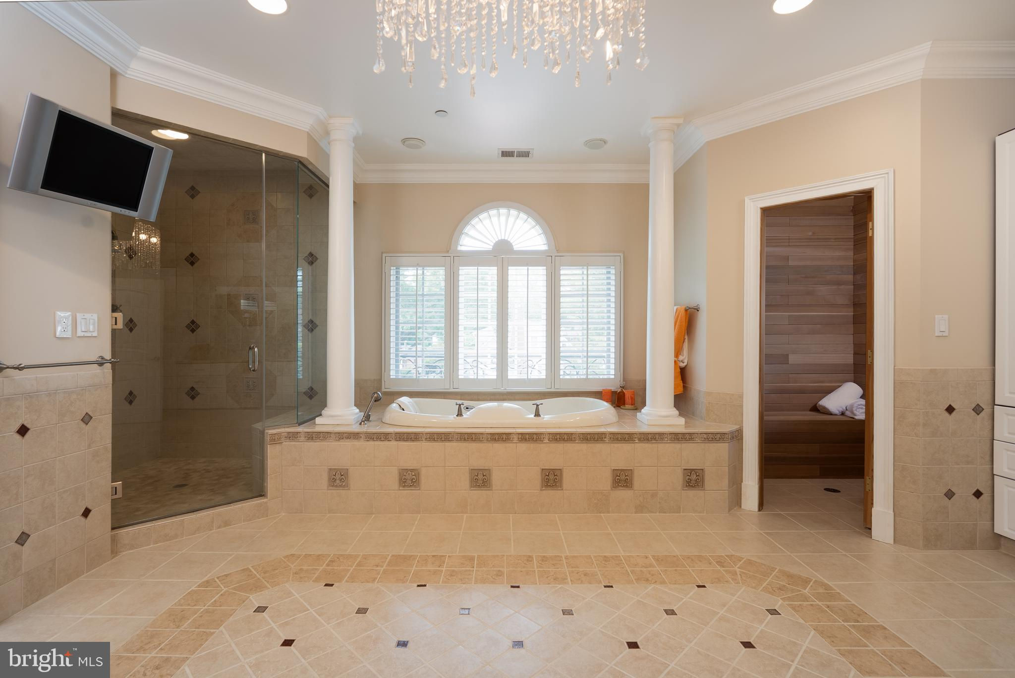 Villa Fior di Verdura, a breathtaking Bethesda estate, redefines luxury with over 12,000 square feet of masterfully designed living space. Drawing inspiration from Italian villas and Mediterranean serenity, this custom residence blends timeless sophistication with the warmth of a true home, nestled just minutes from Downtown Bethesda, Wildwood Shopping Center, and Pike & Rose. The estate welcomes with a herringbone brick driveway, elegant stucco façade, grand arched windows, and intricate wrought-iron balconies. Inside, expansive yet inviting spaces cater to both intimate gatherings and lavish entertaining. The grand foyer, adorned with bespoke Italian tile, showcases a custom wrought-iron staircase with delicate vine and blossom designs, setting a tone of refined elegance. The main level unfolds with a formal dining room, tranquil living room, distinguished home office with French doors, and a versatile morning room. The heart of the home, a state-of-the-art kitchen, boasts premium appliances, handcrafted cabinetry, an auxiliary catering kitchen, and a charming breakfast nook that flows into a soaring family room. Here, a two-story stone fireplace exudes warmth, while the sunlit conservatory windows offer sweeping views of the lush grounds. A spacious deck extends from the kitchen and family room, perfect for al fresco dining or quiet evenings overlooking the vibrant landscape. Outside, the meticulously curated backyard is a masterpiece worthy of a luxury home and garden magazine cover. The showstopping herb and vegetable garden, framed by elegant stone pathways, thrives with a sophisticated drainage system ensuring year-round vitality. Ambient barn-style lighting casts a warm glow, transforming the garden into an enchanting evening retreat. Exquisitely landscaped grounds envelop the estate in tranquility, offering a seamless blend of nature and refinement. The main level also features a spacious laundry room with exterior access, two elegant powder rooms, a walk-in pantry, a large coat closet, a discreet secondary staircase, and a private elevator for effortless access across all levels. Upstairs, four en-suite bedrooms and a central family room overlook the grand spaces below. The owner’s suite, a private sanctuary, includes a cozy fireplace, private gym, dual walk-in closets, and a spa-inspired bath with dual vanities, a whirlpool tub, an expansive shower, a redwood-lined sauna, and two water closet. The walk-out lower level offers a haven for entertainment and relaxation, featuring a grand recreation room, a versatile family room/gym/game room, ample storage, and a spacious au pair or in-law apartment with a full kitchen, en-suite bath, and private patio. Villa Fior di Verdura is a rare gem where European artistry meets modern comfort, delivering a lifestyle of unparalleled elegance and warmth. A visit to this home will evoke feelings of joy and wonder; please come ready to fall in love.