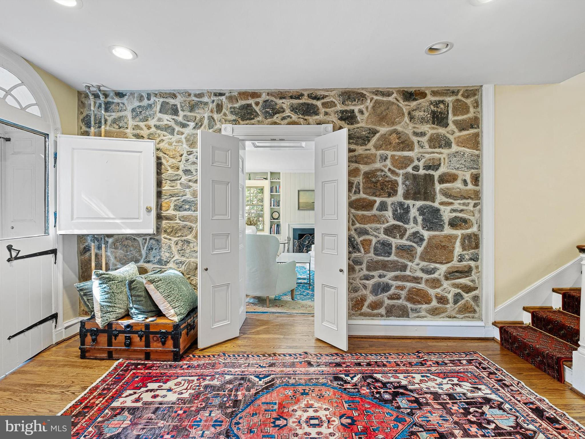 Welcome to one of the most impressive historic homes in the Brandywine Area, rich with history and elegance. The Marquis de Lafayette experienced his first action at the Battle of Brandywine on September 11, 1777, where he showed extreme courage under fire in leading an orderly retreat. Unfortunately, he was shot through the calf during the battle. After he recovered, Lafayette was given command of a division of troops. Legend has it that Doctor Chandler was the only surgeon available within miles, and he operated on the Marquis at the Chandler House. During the Marquis's convalescence, General Washington visited him multiple times. Situated in the charming village of Centreville, a unique country estate on over three acres of mature landscaping awaits. Specimen trees planted by Evelena duPont lace the property, and tucked within, one finds a refreshing swimming pool with an entertainment area framed with wisteria climbing across a 300-year-old stone wall foundation. This 18th-century stone house stimulates the senses with attention to detail around every corner. The home's grand entrance is flanked by sitting rooms, each with a fireplace. Seven working fireplaces, handsome paneling with built-ins including china cupboards. Rich hardwood floors and plaster walls have been restored beautifully. The brightly lit gracious kitchen has room for a full table, updated stainless appliances, and a French door that accesses the terrace--perfect for a morning breakfast. The adjacent butler's pantry is the perfect place to start the party before heading into the elegant dining room with a fireplace and a secret door that once led to the Underground Railroad hideaway below. The sunroom was once a screened porch that the current owners expanded and transformed into a spectacular great room following the historic detail of the home. The great room has a fireplace that was once in the landmark Shipley House (the other two are at Winterthur), and this is a large room for celebrating and entertaining...President Lyndon Johnson once was here for such an occasion. The stone wall at the entrance is original to the house that dates back to the 1720s. Up the stairs is a large main suite with loads of built-in closets and storage, a laundry room, and an additional guest suite that would be perfect for an au pair as it has access to the lower level via the second stairway. Two other bedrooms, each with a fireplace and bath, complete the second floor. The third floor is a magical hideaway for the young at heart--two bedrooms, a full bath, loads of storage, and access to the third-floor attic, which could be transformed into additional living space. The lower level has a wine cellar with historical roots to the Underground Railroad--the door to which is over 300 years old. There is a powder room, workroom, Bilco door for easy access, updated HVAC and water filtration systems, and a tunnel rumored to be part of the Underground Railroad. Outside is a carriage house with enough space for two cars and work equipment. The upstairs could be converted to additional living space. Roofs house have been replaced—Tile, standing seam metal and slate on house. There are cedar roofs on outbuildings. Stone wall with electric gates to ensure privacy...truly a unique property. Located close to nearby Brandywine area attractions such as Winterthur, Longwood Gardens as well as walkable to the Village of Centreville, this home is a dream home come true that is rarely available. Easy access to Philadelphia, New York and Washington via air or rail. NOTE: The square footage on Public Records is not reflective of the sunroom expansion. There are 4 heating zones—main, upstairs, and 2 in the sunroom. There are two working wells on the property—one supplies the house and one supplies the pool—each of the pumps has been replaced. There is a heated + fenced dog house. Guard dog on the property—please do not attempt to enter property without permission.