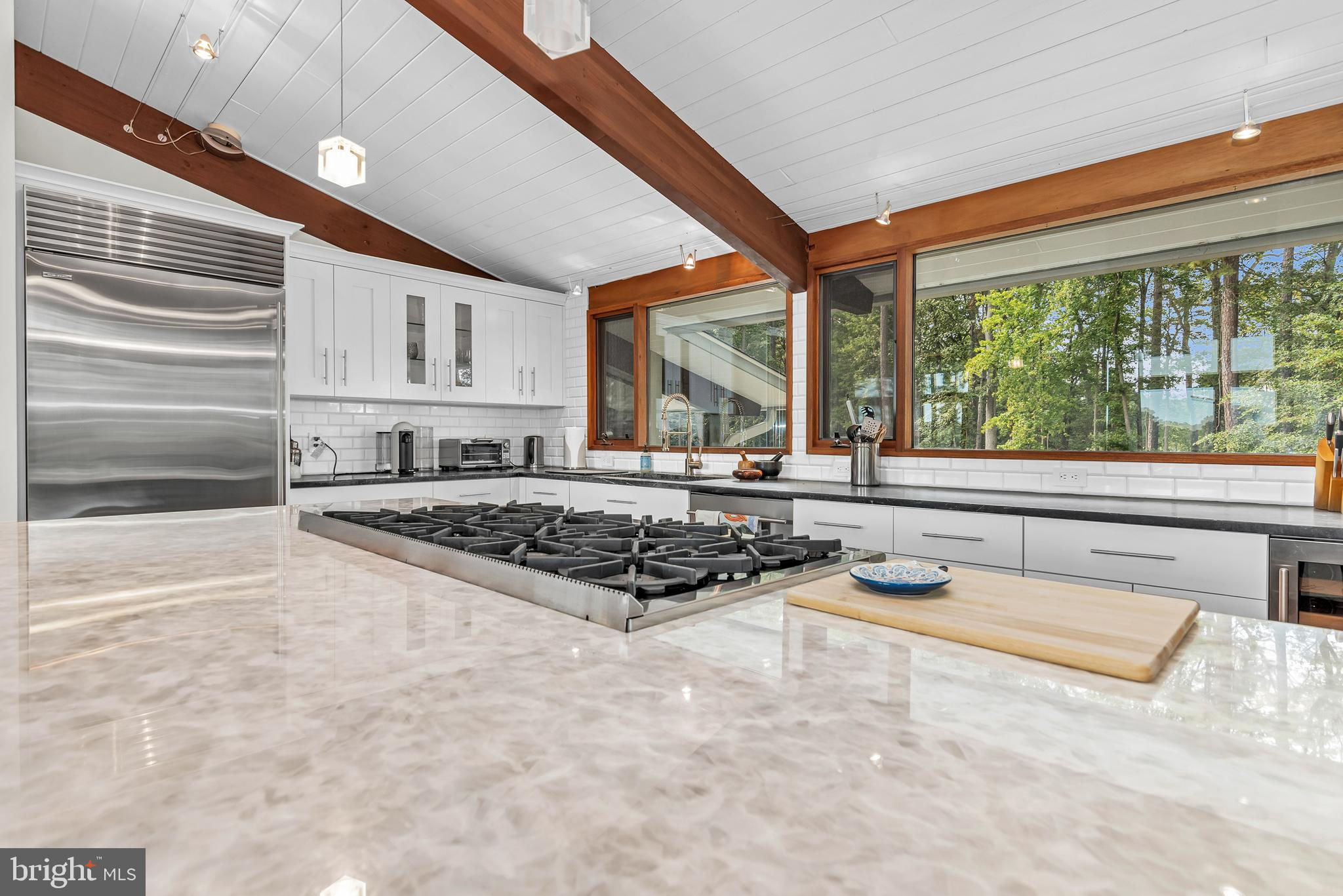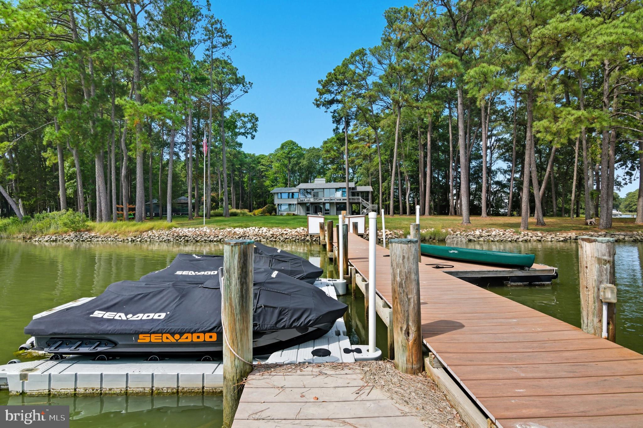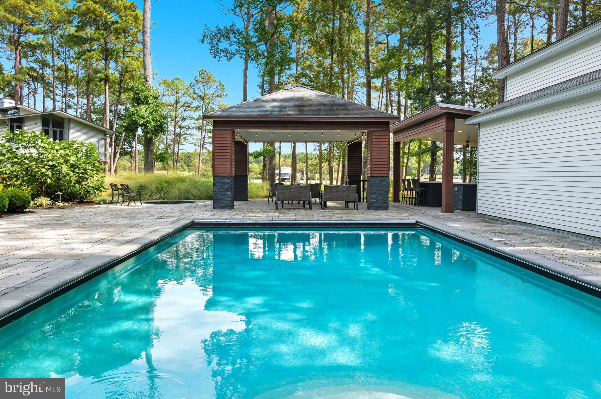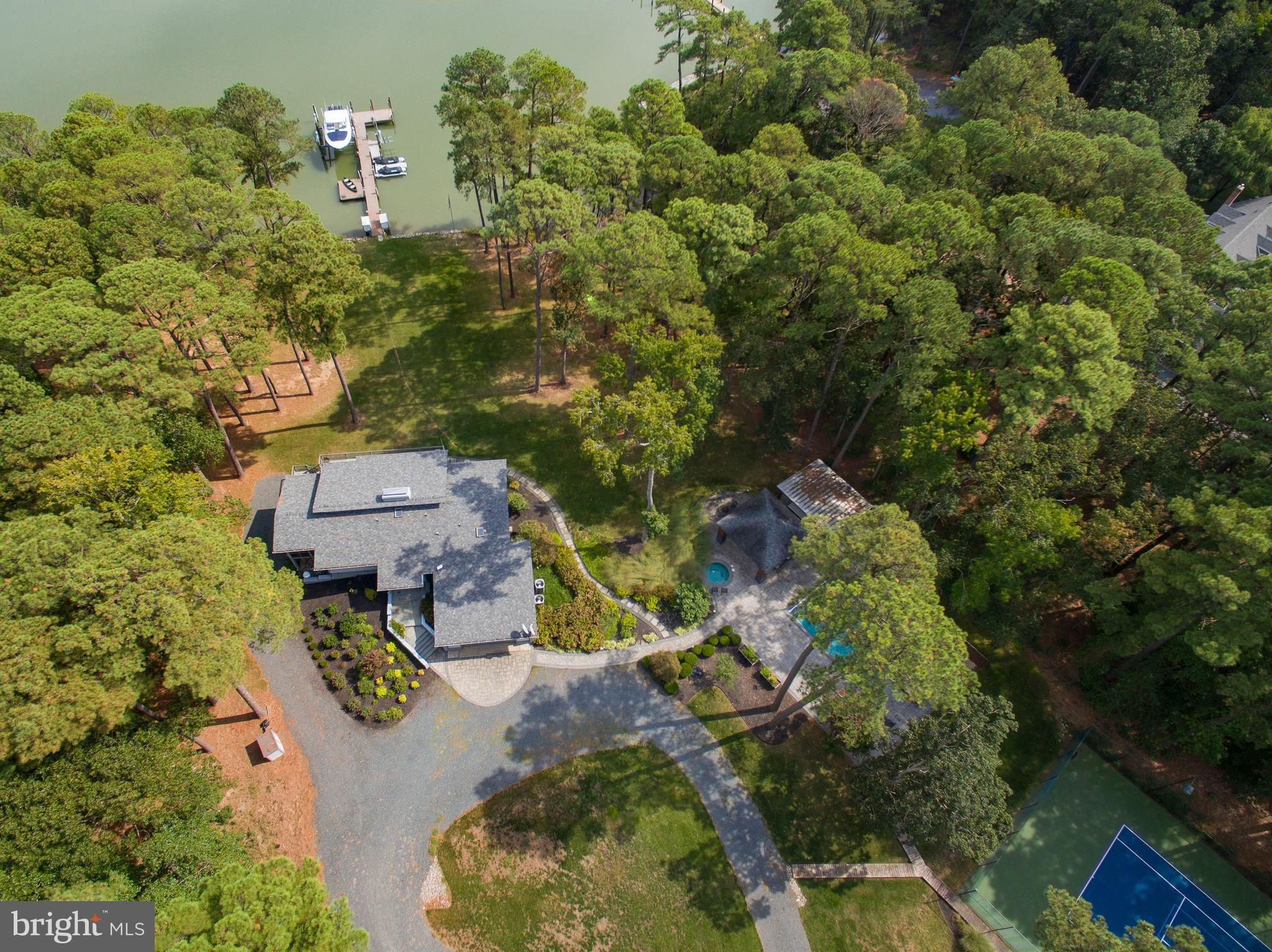 Absolutely stunning mid-century contemporary estate offering a private , park-like setting, with heated swimming pool, pavilion, luxurious fully equipped outdoor- kitchen, outdoor shower, in -ground hot tub ,tennis court, and maintenance -free Azek pier with new 30K lb. boat lift. Meticulously maintained inside and out! Professionally landscaped with WiFi controlled front/rear irrigation system.The superbly designed and crafted home offers an open floor-plan with 4 bedrooms and an office, 3.5 designer baths with heated floors,, a magnificent gourmet kitchen, upper and lower level living areas providing outstanding functionality. Breathtaking water- views and protected shoreline! This is an outstanding turn-key property that comes beautifully furnished !