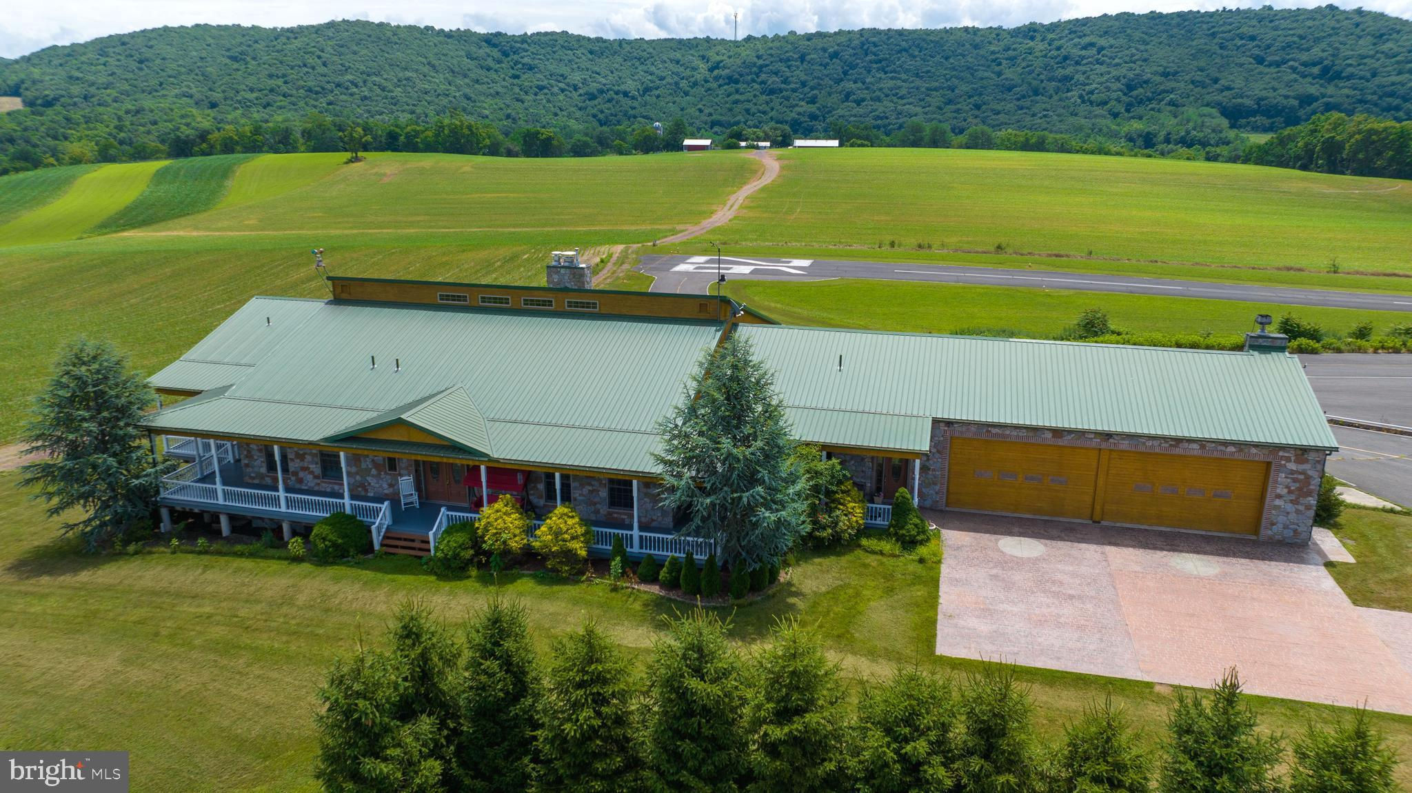 You are cleared for landing! Welcome to 600 Airport Drive in Mifflintown, Pennsylvania. This 24 plus acre property is a private oasis located in Juniata County, surrounded by a peaceful setting of scenic mountains, serene farmland, and lush green trees. It is conveniently situated in between Harrisburg and State College/Penn State University. The property is highlighted by a custom 12,000 square foot home, 2,650-foot paved lighted runway, over 23,000 square feet of hangars, 6,000-gallon fuel storage, two residential rental properties, an apartment, an additional residential home that can be redeveloped into a hangar home. This airport is in a secluded area but only 45 minutes from Harrisburg on a four-lane highway. The Juniata River is just a couple of blocks away. The airport is surrounded by farmland and can handle most turboprops. The airport is unattended and based aircraft owners are extremely helpful in maintaining the facility. The local RC airplane club is based at the airport. This 26.3-acre airport features a 2,650-foot paved, lighted runway with a GPS approach. Only 153nm west of KTEB, 114nm from KPNE and a 55-minute drive to Harrisburg International Airport. The airport has over 23,000 square feet of hangars in 13 different units. Three of these hangars (9,400 square feet) are heated. The airport has 6,000 gallons of fuel storage set up for two fuels. There are 3.5 acres of undeveloped land as well. The owner's home, separately deeded, was completed in 2008 and is a 12,000 plus square foot custom home on 2.2 acres, which includes 9,837 square feet on two floors, a 1,632 square foot heated garage that can be opened to 37 feet of free span, and a 1,504 square foot screened-in porch. Below the screened-in porch is a pre-dug area for a 15 x 50 foot swimming pool that is enclosed for year-round use. Hardwood floors can be found throughout the house with several wood ceilings and wainscoting. Many windows and glass doors offer unlimited opportunities to enjoy the surrounding views. The house is set up with three bedrooms, but more can be added. The owner's suite includes a cedar lined walk-in closet, a whirlpool tub with a bay window, and an oversized walk-in shower. The lower-level bedroom has its own bath with jacuzzi tub and walk-in shower. The home has an additional full bath too. The modern kitchen boasts oak cabinets and granite countertops, all stainless appliances, including a large gas cooktop with grill and griddle, and a warming drawer. The main living room has a vaulted wood ceiling and a pellet stove in a stone chimney encasement. In the full, completed lower level there is a home theater, fireplace, cedar lined closet, and a large area for various recreational activities. The complete U.S. sectional map is epoxied into the floor. A covered front porch surrounds the front of the home while a rear deck encases the back of the home with a covered area next to the kitchen for year-round grilling. A new vineyard was planted in 2019. The home is covered with an alarm system, a video system, a separate RO water system, a telephone system and high-speed internet great for a remote office. The residence has two air conditioning systems and is completely heated with automatic wood pellet fired boilers. There is room to build a hangar and housekeeper apartment on the owner’s lot as well. Don't wait to schedule your visit and see this amazing property with your own eyes today!