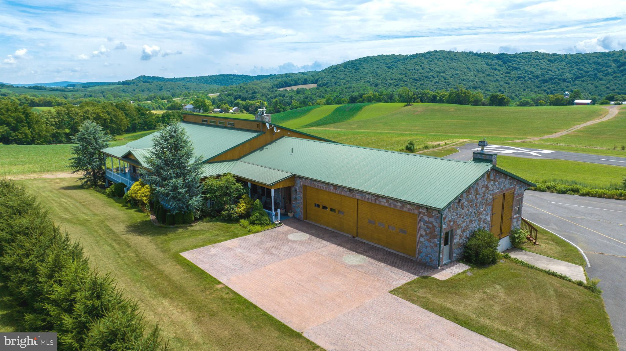 You are cleared for landing! Welcome to 600 Airport Drive in Mifflintown, Pennsylvania. This 24 plus acre property is a private oasis located in Juniata County, surrounded by a peaceful setting of scenic mountains, serene farmland, and lush green trees. It is conveniently situated in between Harrisburg and State College/Penn State University. The property is highlighted by a custom 12,000 square foot home, 2,650-foot paved lighted runway, over 23,000 square feet of hangars, 6,000-gallon fuel storage, two residential rental properties, an apartment, an additional residential home that can be redeveloped into a hangar home. This airport is in a secluded area but only 45 minutes from Harrisburg on a four-lane highway. The Juniata River is just a couple of blocks away. The airport is surrounded by farmland and can handle most turboprops. The airport is unattended and based aircraft owners are extremely helpful in maintaining the facility. The local RC airplane club is based at the airport. This 26.3-acre airport features a 2,650-foot paved, lighted runway with a GPS approach. Only 153nm west of KTEB, 114nm from KPNE and a 55-minute drive to Harrisburg International Airport. The airport has over 23,000 square feet of hangars in 13 different units. Three of these hangars (9,400 square feet) are heated. The airport has 6,000 gallons of fuel storage set up for two fuels. There are 3.5 acres of undeveloped land as well. The owner's home, separately deeded, was completed in 2008 and is a 12,000 plus square foot custom home on 2.2 acres, which includes 9,837 square feet on two floors, a 1,632 square foot heated garage that can be opened to 37 feet of free span, and a 1,504 square foot screened-in porch. Below the screened-in porch is a pre-dug area for a 15 x 50 foot swimming pool that is enclosed for year-round use. Hardwood floors can be found throughout the house with several wood ceilings and wainscoting. Many windows and glass doors offer unlimited opportunities to enjoy the surrounding views. The house is set up with three bedrooms, but more can be added. The owner's suite includes a cedar lined walk-in closet, a whirlpool tub with a bay window, and an oversized walk-in shower. The lower-level bedroom has its own bath with jacuzzi tub and walk-in shower. The home has an additional full bath too. The modern kitchen boasts oak cabinets and granite countertops, all stainless appliances, including a large gas cooktop with grill and griddle, and a warming drawer. The main living room has a vaulted wood ceiling and a pellet stove in a stone chimney encasement. In the full, completed lower level there is a home theater, fireplace, cedar lined closet, and a large area for various recreational activities. The complete U.S. sectional map is epoxied into the floor. A covered front porch surrounds the front of the home while a rear deck encases the back of the home with a covered area next to the kitchen for year-round grilling. A new vineyard was planted in 2019. The home is covered with an alarm system, a video system, a separate RO water system, a telephone system and high-speed internet great for a remote office. The residence has two air conditioning systems and is completely heated with automatic wood pellet fired boilers. There is room to build a hangar and housekeeper apartment on the owner’s lot as well. Don't wait to schedule your visit and see this amazing property with your own eyes today!