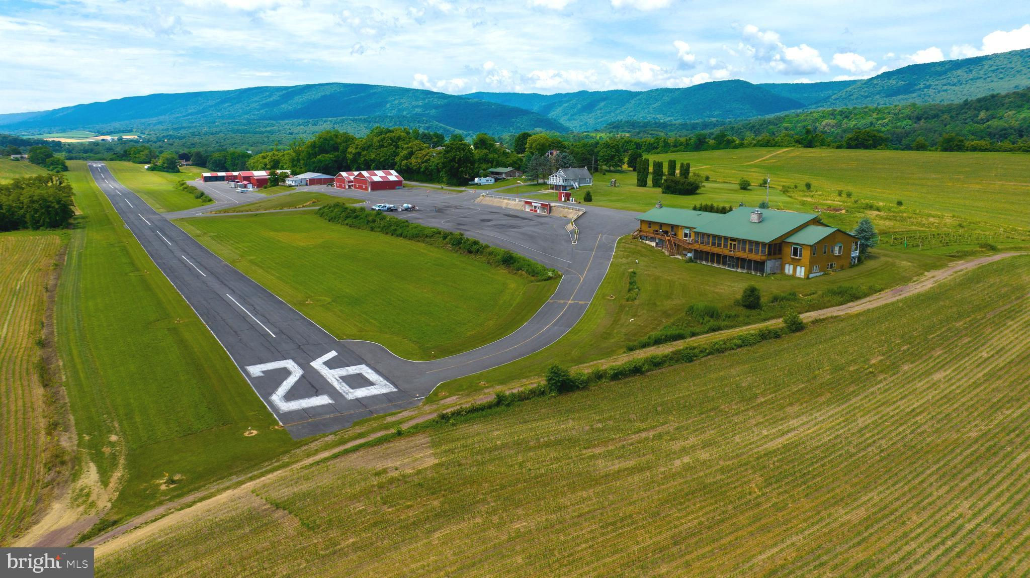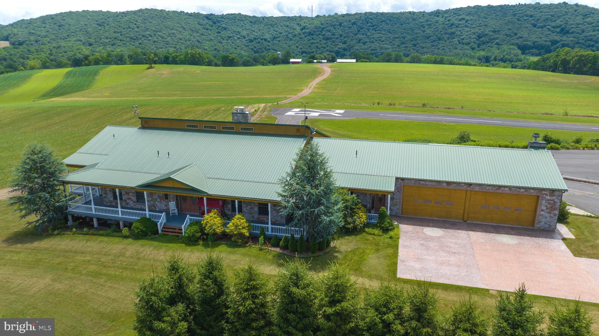 You are cleared for landing! Welcome to 600 Airport Drive in Mifflintown, Pennsylvania. This 24-acre property is a private oasis situated in Juniata County, surrounded by a peaceful setting of scenic mountains, serene farmland, and the Juniata River is just a couple of blocks away. It is conveniently located between Harrisburg and State College/Penn State University. The property is highlighted by a custom 12,000 plus square foot home, 2,650-foot paved and lighted runway with a GPS approach, over 23,000 square feet of hangars, 6,000-gallon fuel storage, two residential rental properties, an apartment, and an additional residential home that can be redeveloped into a hangar home. The custom home will soon have an enclosed in-ground pool for year-round enjoyment. Completion of the pool is expected in the summer of 2025. Mifflintown Airport is unattended, and based aircraft owners are extremely helpful in maintaining the facility. The airport can handle most turboprops. The local RC airplane club is also based at the airport. Mifflintown Airport is only 140 air miles west of Teterboro Airport in New Jersey, 145 air miles from Northeast Philadelphia Airport, and a 55-minute drive to Harrisburg International Airport. The airport features 23,000 square feet of hangars in 13 different units. Three of these hangars (9,400 square feet) are heated. The airport has 6,000 gallons of fuel storage set up for two fuels. The property offers 3.5 acres of undeveloped land as well. The owner's home, sitting on 2.2 acres and separately deeded, was completed in 2008 and is 12,000 plus square feet, including 9,800 square feet on two floors, a 1,600 square foot heated garage that can be opened to 37 feet of free span, and a 1,504 square foot screened-in porch. Many windows and glass doors offer unlimited opportunities to enjoy the surrounding views. Hardwood floors can be found throughout. The home is set up with three bedrooms, but more can be added. The owner's suite includes a cedar lined walk-in closet, a whirlpool tub with a bay window, and an oversized walk-in shower. The lower-level bedroom has its own bath with a jacuzzi tub and walk-in shower. The home has an additional full bath too. The modern kitchen boasts oak cabinets and granite countertops. Stainless steel appliances include a large gas cooktop with grill and griddle, and a warming drawer. The main living room boasts a vaulted wood ceiling and a pellet stove in a stone chimney encasement. The full, finished lower level provides a home theater, fireplace, cedar lined closet, and a large area for various recreational activities. The complete U.S. sectional map is epoxied into the floor. A covered front porch surrounds the front of the home while a rear deck encases the back of with a covered area next to the kitchen for year-round grilling. Outside, a new vineyard was planted in 2019. The home comes with an alarm system, a video system, a separate RO water system, a telephone system and high-speed internet great for a remote office. The residence has two air conditioning systems and is completely heated with automatic wood pellet fired boilers. There is potential to build a hangar and a housekeeper apartment on the owner’s lot as well. Don't wait to schedule your visit and see this amazing property with your own eyes today!