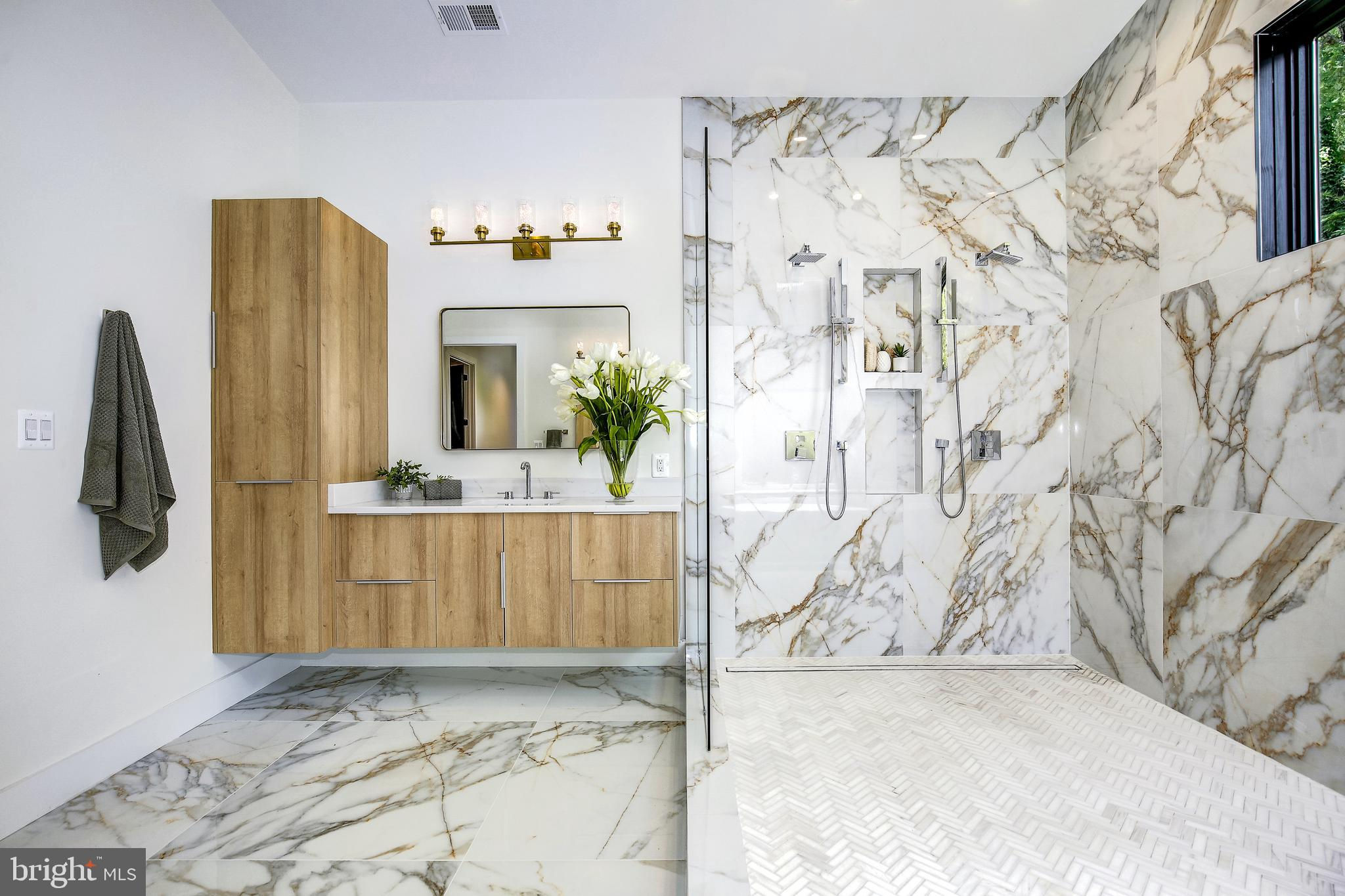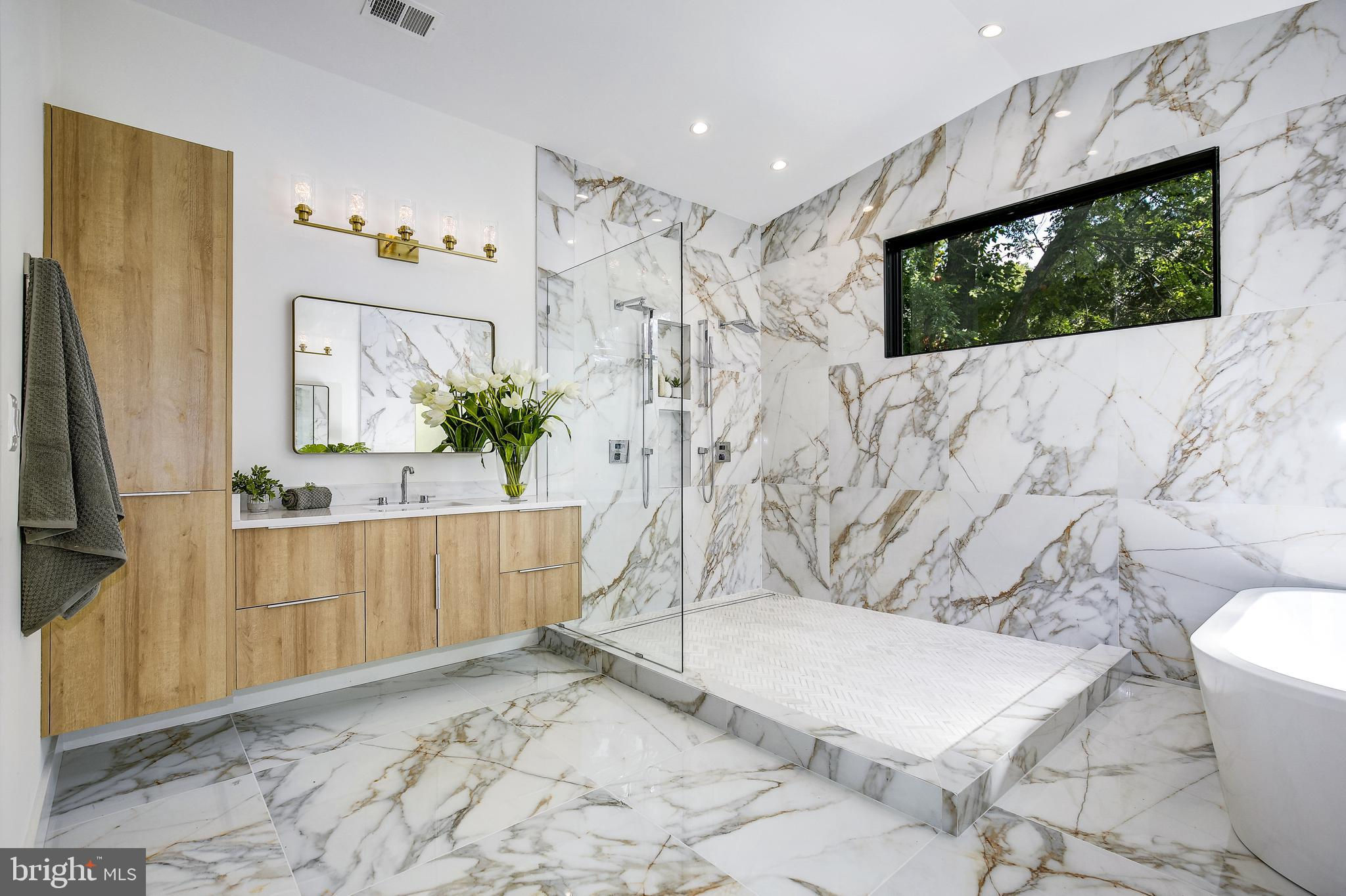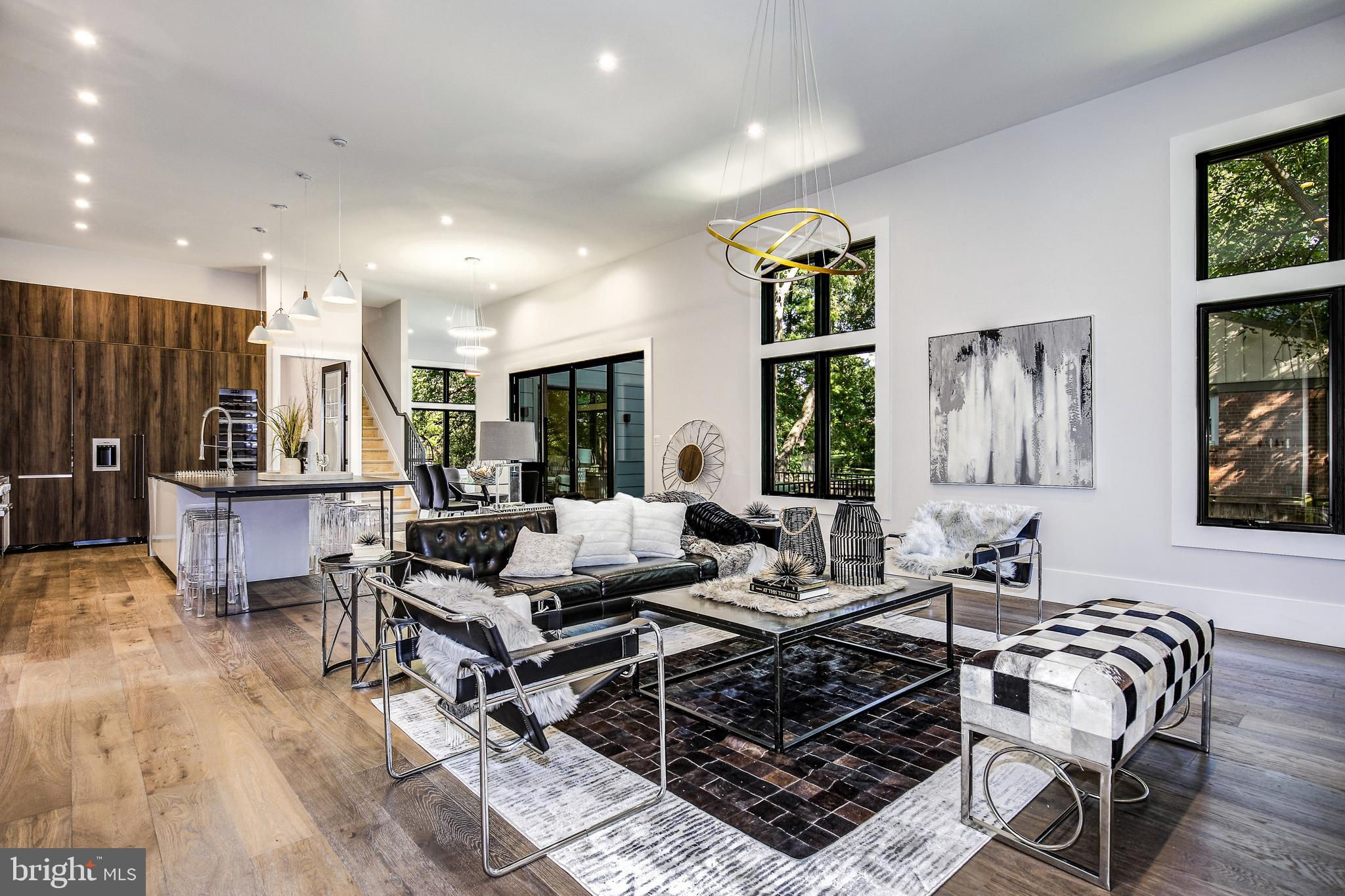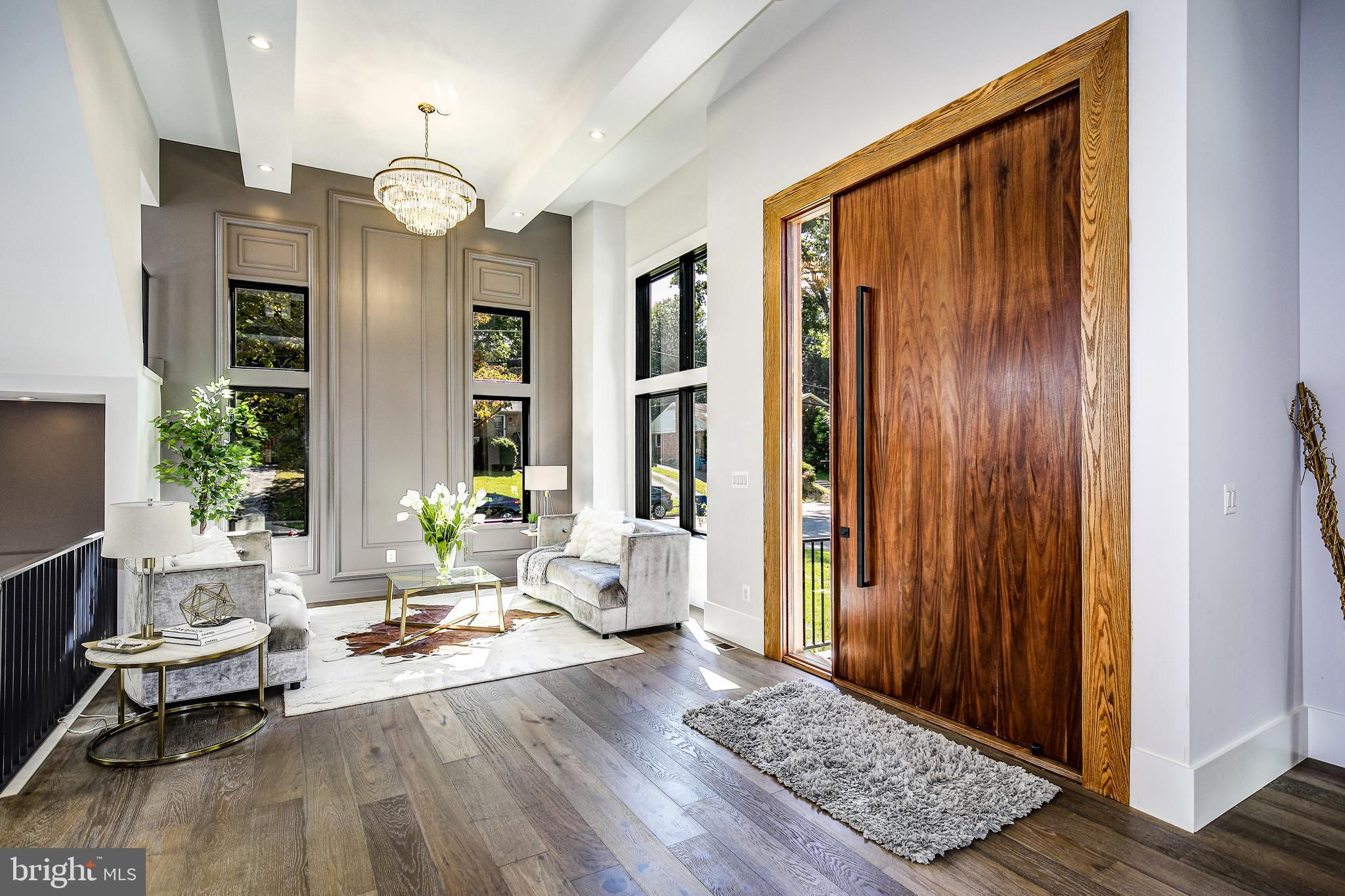 Welcome to your new home in the coveted Potomac Hills neighborhood, nestled on a spacious, level lot. Just steps from Chesterbrook Elementary and Highlands Swim & Tennis Club, this prime location offers easy access to Kirby Road, GW Parkway, and a quick commute to DC, Tyson's Corner, Downtown McLean, Arlington, and Falls Church. This luxurious 7-bedroom residence is designed with grandeur in mind, featuring soaring 10- to 14-foot ceilings on every level, Marvin windows, and elegant wide-plank white oak flooring throughout. Enter through an impressive ten-foot pivot door and explore the main level, which includes multiple living areas, a formal dining room, and a main-level bedroom with an en suite bath. The family room boasts an oversized gas fireplace with a stunning feature wall, and the spacious study and convenient half-bath add to the home's thoughtful layout. The gourmet kitchen is a chef’s dream, equipped with sleek stainless steel Miele appliances and modern Porcelanosa cabinetry, complemented by an additional prep kitchen perfect for entertaining. A tranquil sunroom invites casual relaxation and dining, while a sizeable mudroom off the three-car sideload garage, complete with a car-charging port, ensures daily convenience. Take either of the home's two staircases to the upper level, where you'll find four additional bedrooms and an open loft/den area. The grand primary suite offers 13' ceilings, a sitting area, a luxurious en suite bath, and two customizable walk-in closets, providing a private retreat. The lower level extends the home's versatility, featuring two more bedrooms with en suite baths, ideal for guest rooms or au pair suites. Additionally, there are game, exercise, and recreation rooms, along with a speakeasy-style lounge and exterior access. Outside, the large, tree-lined yard offers endless possibilities for outdoor activities, whether it's exercise, playtime, or simply enjoying nature. Notable features include wide casings, large format tiling in all en suite baths, maintenance-free wide exposure Nichiha fiber cement siding, two sump pumps, and concealed kitchen outlets. Plus, the home is elevator-ready with an installed elevator shaft for future convenience. This home perfectly balances luxury and practicality, offering an unparalleled living experience in one of the area’s most desirable neighborhoods.