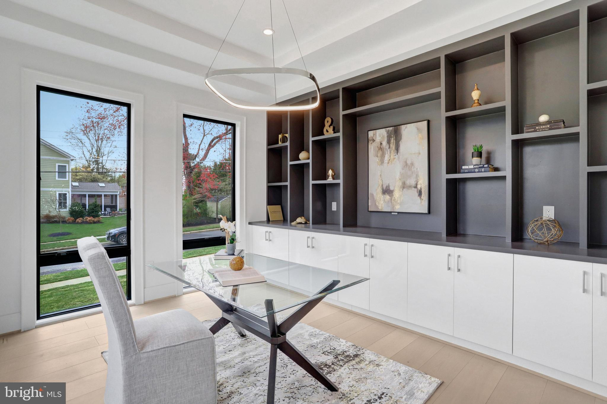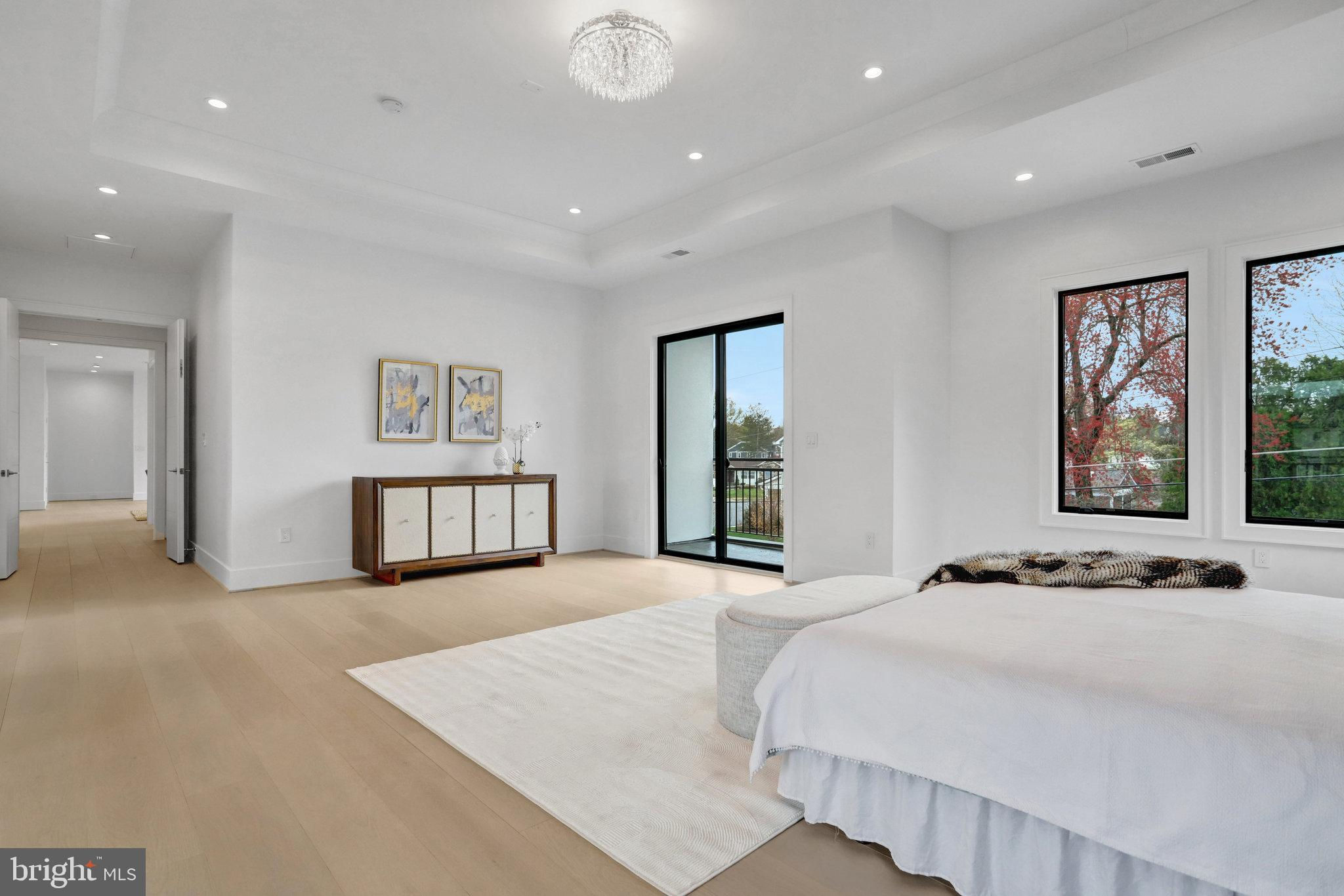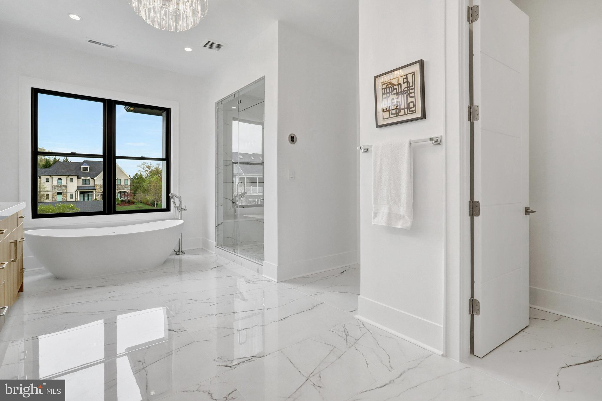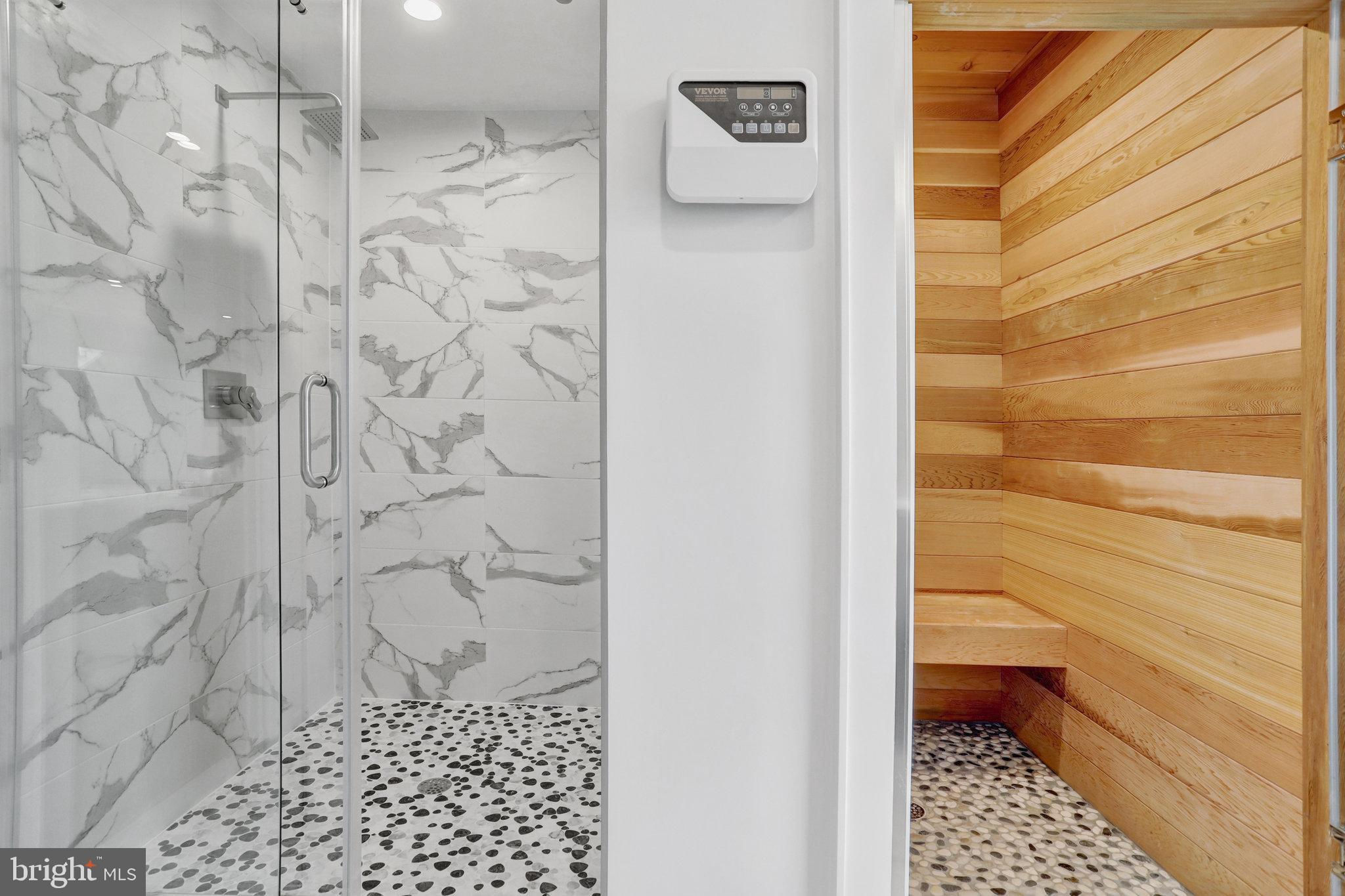 This striking, modern home offers an expansive 8,453 SqFt of living space with 4 CAR GARAGE, thoughtfully designed across three levels. With its distinctive contrast of luxury finishes and meticulous craftsmanship, the home blends comfort and contemporary style effortlessly. Upon arrival, you're greeted by a pre engineered wood wide plank floor, flanked by side light panels and elegant sconces, setting the tone for the refined interiors. The foyer leads into the heart of the home: an open-plan kitchen and family room that serve as a central hub for daily living. The chef’s kitchen is equipped with professional-grade Thermador appliances, including a six-burner gas stove, double wall ovens, and a built-in coffee machine. White marble countertops and two-tiered designer cabinetry with under-cabinet lighting provide a sophisticated contrast to the grey cabinetry. Additional features include a prep sink, microwave, dishwasher, and quartz drawer pulls and cabinet knobs. Pendant lighting with brushed brass accents completes the elegant atmosphere. In the family room, a floor-to-ceiling stone gas fireplace with a wooden mantle and built-in side shelving creates a focal point, while French doors open to a covered porch, seamlessly connecting the indoors and outdoors—ideal for both relaxation and entertaining. A professionally appointed prep kitchen enhances the space, featuring a four-burner gas stove and refrigerator, conveniently located next to a walk-in pantry. The 4-car garage, with Garage 1 offering ample depth to park two cars or a RV , is easily accessible via the mudroom, which includes a built-in bench and coat rack. An ensuite bedroom on this level provides privacy and luxury, featuring a floor-to-ceiling tiled shower and custom closets. The second-floor landing invites relaxation, with built-in shelves, an entertainment center, and ambient lighting. The centerpiece of this level is the luxuriously appointed owner’s suite. This oversized bedroom includes a separate seating area with a fireplace and coffee bar, along with dual balconies, perfect for intimate dining or relaxation. A gas fireplace with a wooden mantle, a tiered ceiling with recessed lighting, a crystal chandelier, and a ceiling fan create both comfort and elegance. The walk-in closets are expansive, with built-in shelves and drawers. The spa-like owner’s suite bathroom is designed for ultimate relaxation, with marble floors, dual vanities featuring smart-controlled heating, an aroma diffuser, a standalone bathtub, and an oversized shower with multiple shower heads, a seamless glass enclosure, a built-in bench, and a steam bath feature. The practical laundry room is equipped with tiled flooring, ample cabinetry, and a built-in drying rack. All other bedrooms on this level are ensuite, each featuring custom walk-in closets and bathrooms with marble countertops and tiled floors. The lower level combines functionality with luxury, offering both relaxation and entertainment options. The recreation room, the heart of this space, features a sophisticated wet bar and a cozy stone fireplace, complemented by luxury vinyl tiles and elegant paneling. A media room with tiered seating and an exercise room with access to a full bathroom and sauna complete this level. Ideally situated in the coveted Lewinsville Heights neighborhood of McLean, this home is easily accessible to major freeways, the Tysons metro station, and Tysons Mall. As an upgrade, a pool can be added, further enhancing this home’s luxurious offerings.