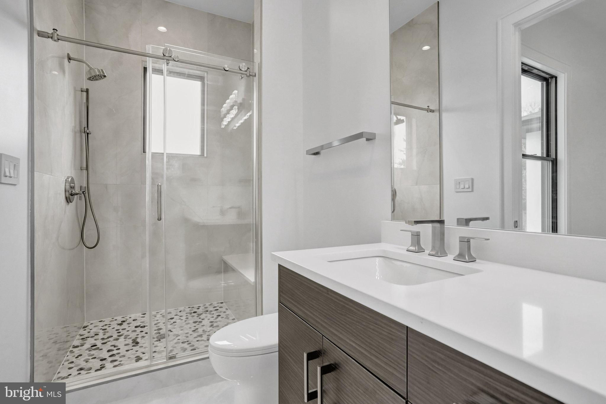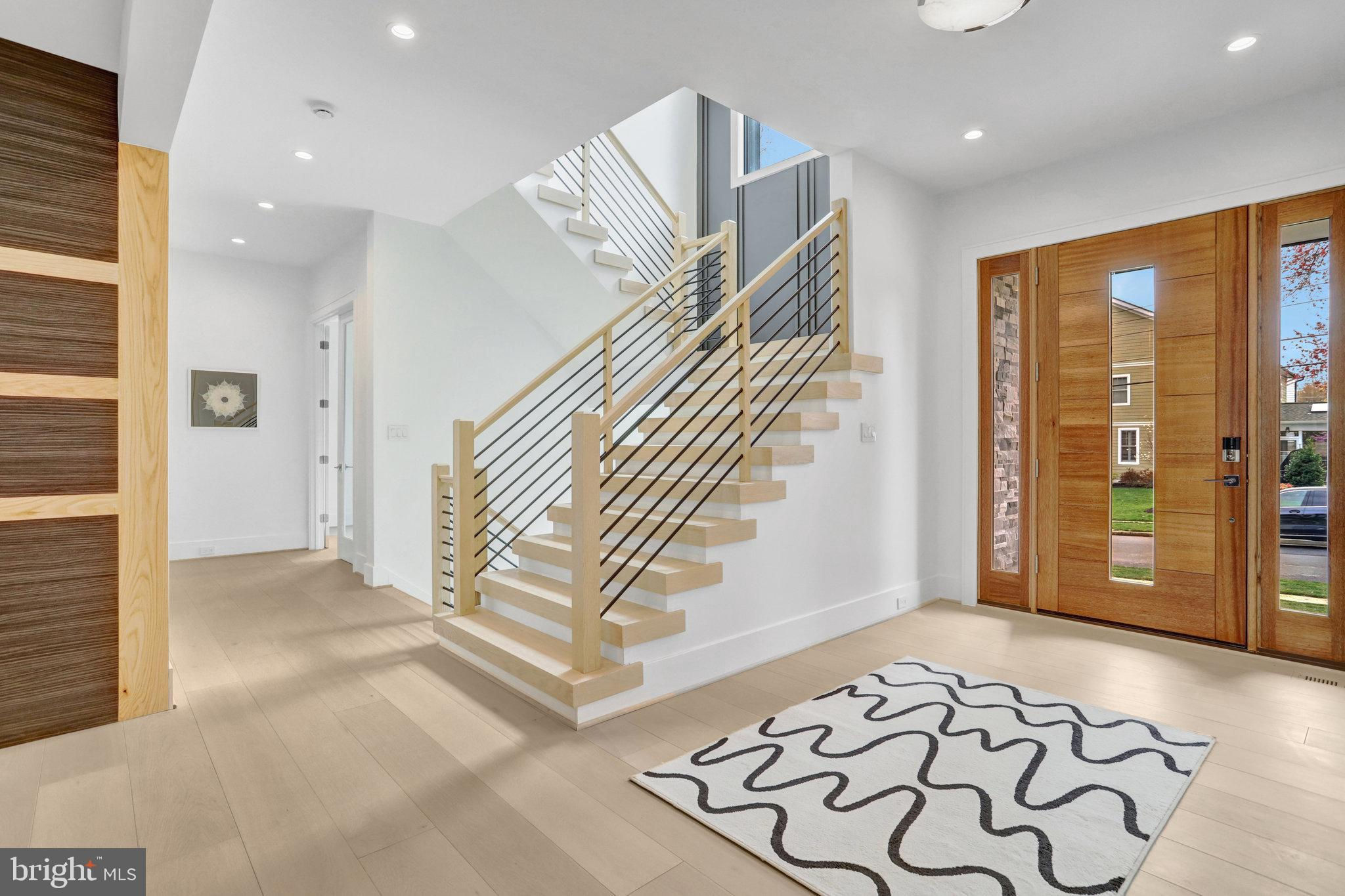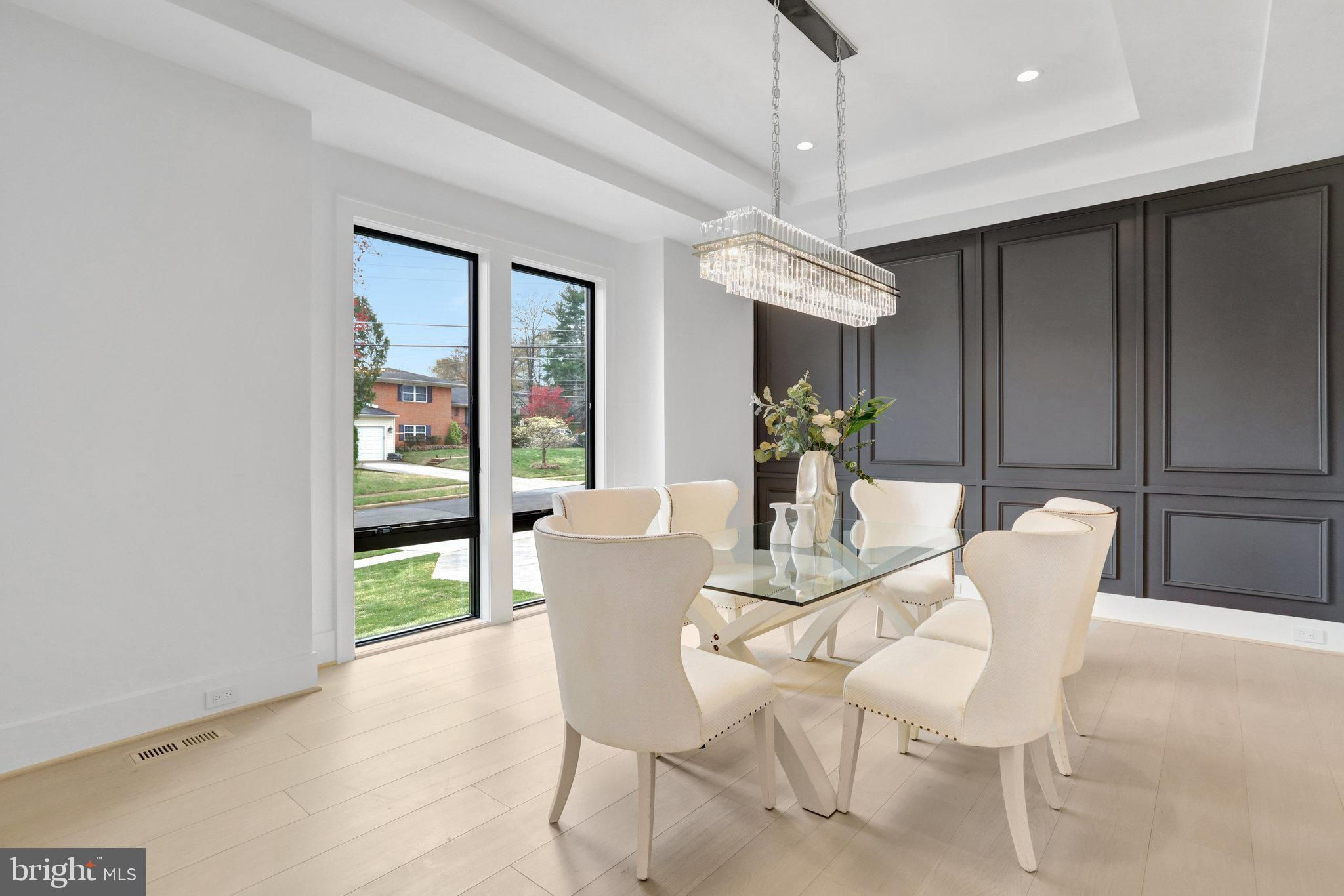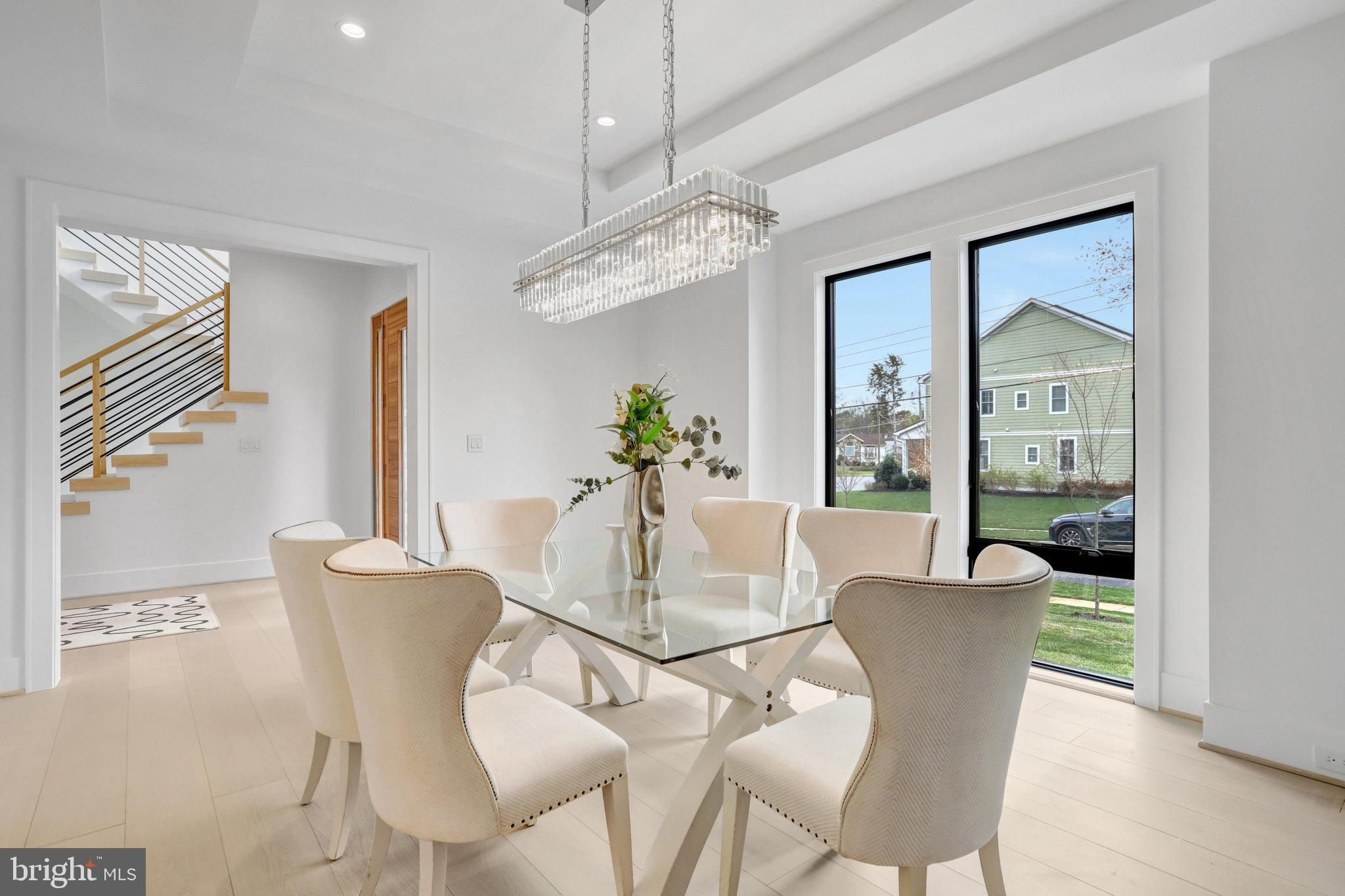 This striking, modern home offers an expansive 8,453 SqFt of living space with 4 CAR GARAGE, thoughtfully designed across three levels. With its distinctive contrast of luxury finishes and meticulous craftsmanship, the home blends comfort and contemporary style effortlessly. Upon arrival, you're greeted by a pre engineered wood wide plank floor, flanked by side light panels and elegant sconces, setting the tone for the refined interiors. The foyer leads into the heart of the home: an open-plan kitchen and family room that serve as a central hub for daily living. The chef’s kitchen is equipped with professional-grade Thermador appliances, including a six-burner gas stove, double wall ovens, and a built-in coffee machine. White marble countertops and two-tiered designer cabinetry with under-cabinet lighting provide a sophisticated contrast to the grey cabinetry. Additional features include a prep sink, microwave, dishwasher, and quartz drawer pulls and cabinet knobs. Pendant lighting with brushed brass accents completes the elegant atmosphere. In the family room, a floor-to-ceiling stone gas fireplace with a wooden mantle and built-in side shelving creates a focal point, while French doors open to a covered porch, seamlessly connecting the indoors and outdoors—ideal for both relaxation and entertaining. A professionally appointed prep kitchen enhances the space, featuring a four-burner gas stove and refrigerator, conveniently located next to a walk-in pantry. The 4-car garage, with Garage 1 offering ample depth to park two cars or a RV , is easily accessible via the mudroom, which includes a built-in bench and coat rack. An ensuite bedroom on this level provides privacy and luxury, featuring a floor-to-ceiling tiled shower and custom closets. The second-floor landing invites relaxation, with built-in shelves, an entertainment center, and ambient lighting. The centerpiece of this level is the luxuriously appointed owner’s suite. This oversized bedroom includes a separate seating area with a fireplace and coffee bar, along with dual balconies, perfect for intimate dining or relaxation. A gas fireplace with a wooden mantle, a tiered ceiling with recessed lighting, a crystal chandelier, and a ceiling fan create both comfort and elegance. The walk-in closets are expansive, with built-in shelves and drawers. The spa-like owner’s suite bathroom is designed for ultimate relaxation, with marble floors, dual vanities featuring smart-controlled heating, an aroma diffuser, a standalone bathtub, and an oversized shower with multiple shower heads, a seamless glass enclosure, a built-in bench, and a steam bath feature. The practical laundry room is equipped with tiled flooring, ample cabinetry, and a built-in drying rack. All other bedrooms on this level are ensuite, each featuring custom walk-in closets and bathrooms with marble countertops and tiled floors. The lower level combines functionality with luxury, offering both relaxation and entertainment options. The recreation room, the heart of this space, features a sophisticated wet bar and a cozy stone fireplace, complemented by luxury vinyl tiles and elegant paneling. A media room with tiered seating and an exercise room with access to a full bathroom and sauna complete this level. Ideally situated in the coveted Lewinsville Heights neighborhood of McLean, this home is easily accessible to major freeways, the Tysons metro station, and Tysons Mall. As an upgrade, a pool can be added, further enhancing this home’s luxurious offerings.