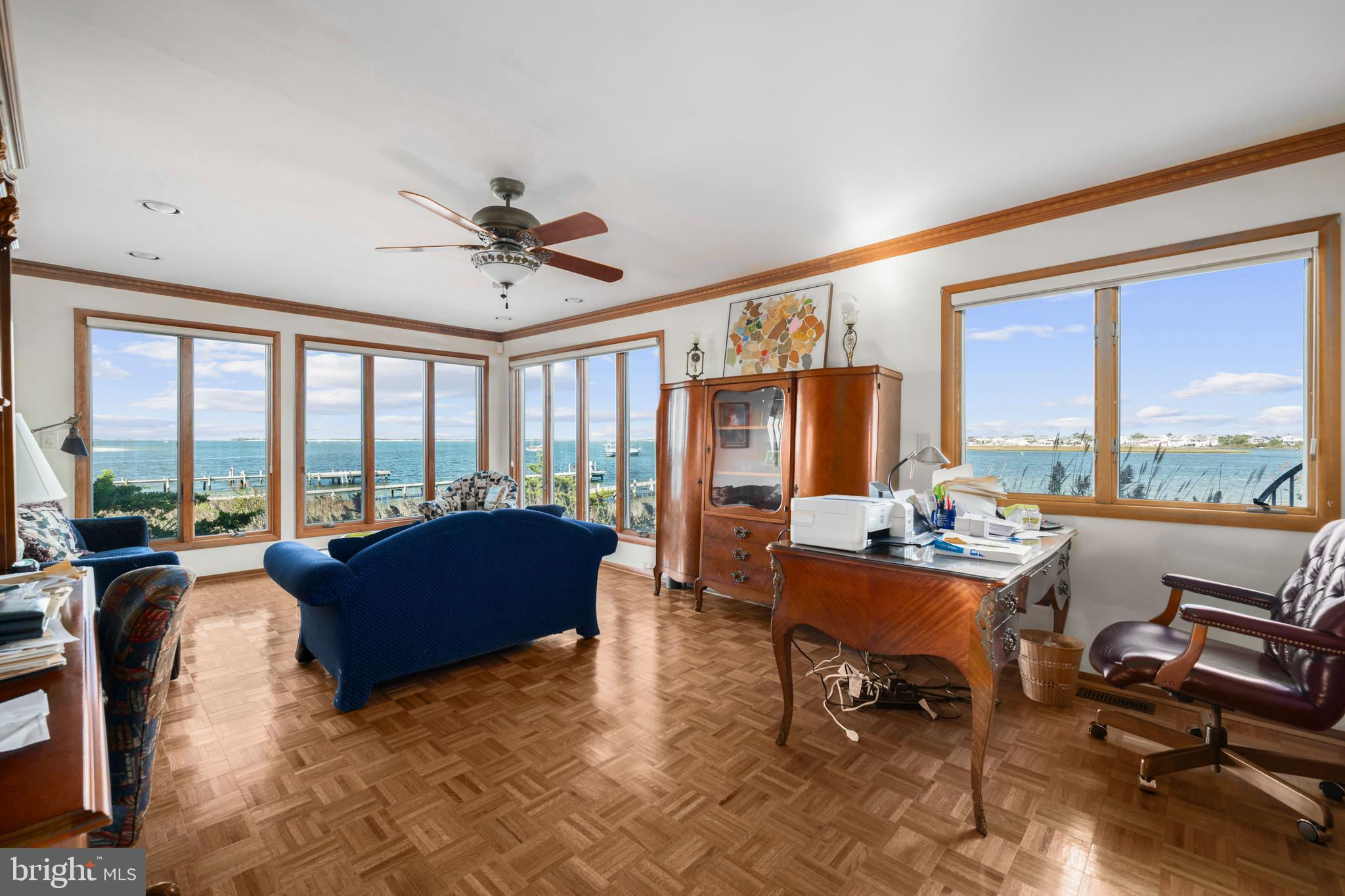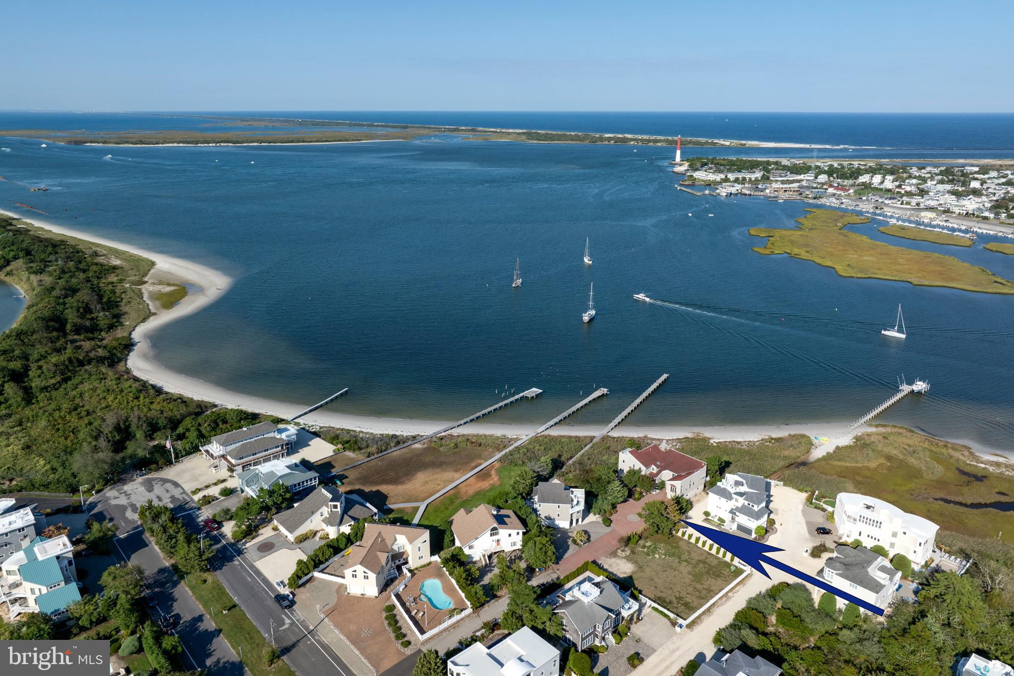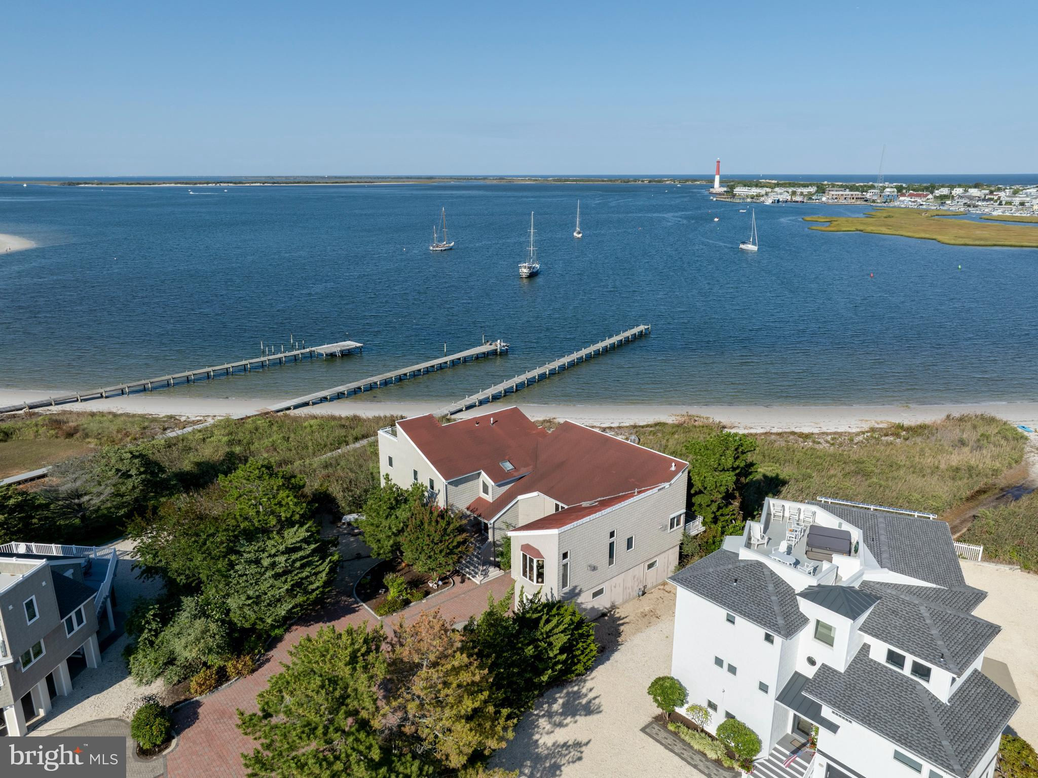 BAYFRONT - HIGH BAR HARBOR: Enjoy the most nautical and fascinating views available on LBI from this superior bayfront location on a giant-sized lot. Direct views of Barnegat Lighthouse, Barnegat Inlet, the wildlife refuge, Island Beach State Park, the harbor and more! More than 200' of pristine white sandy beach and the bay frontage at the end of the huge riparian grant is 331'! Renovate/update in place or build new. The existing living space footprint is approximately 2100sq' plus 430sq' of elevated deck footprint with plenty of room for westward expansion too. Home features 4 bedrooms, 2.5 baths, great room with dining area and granite topped kitchen, large family room with fireplace and vaulted ceiling, den, huge primary suite with phenomenal views, and a spa room with sauna, hot tub, and wet bar. Outdoor features include a large brick paved courtyard and driveway, attractive irrigated landscaping, and private driving easement. A more interesting and beautiful view does not exist!