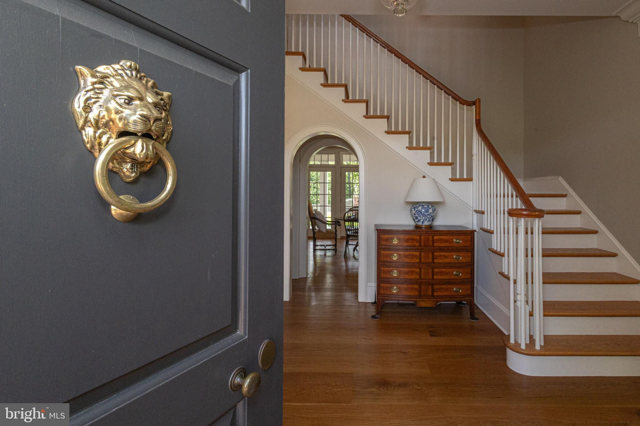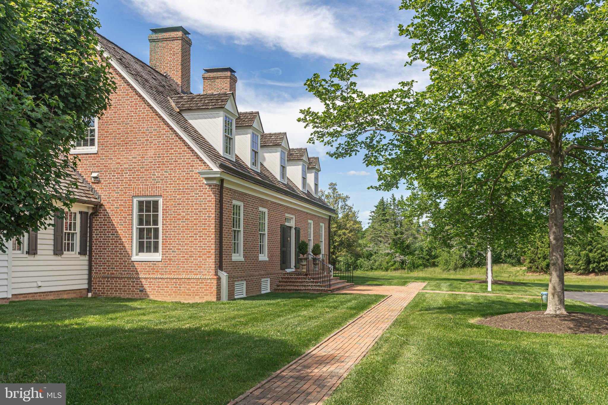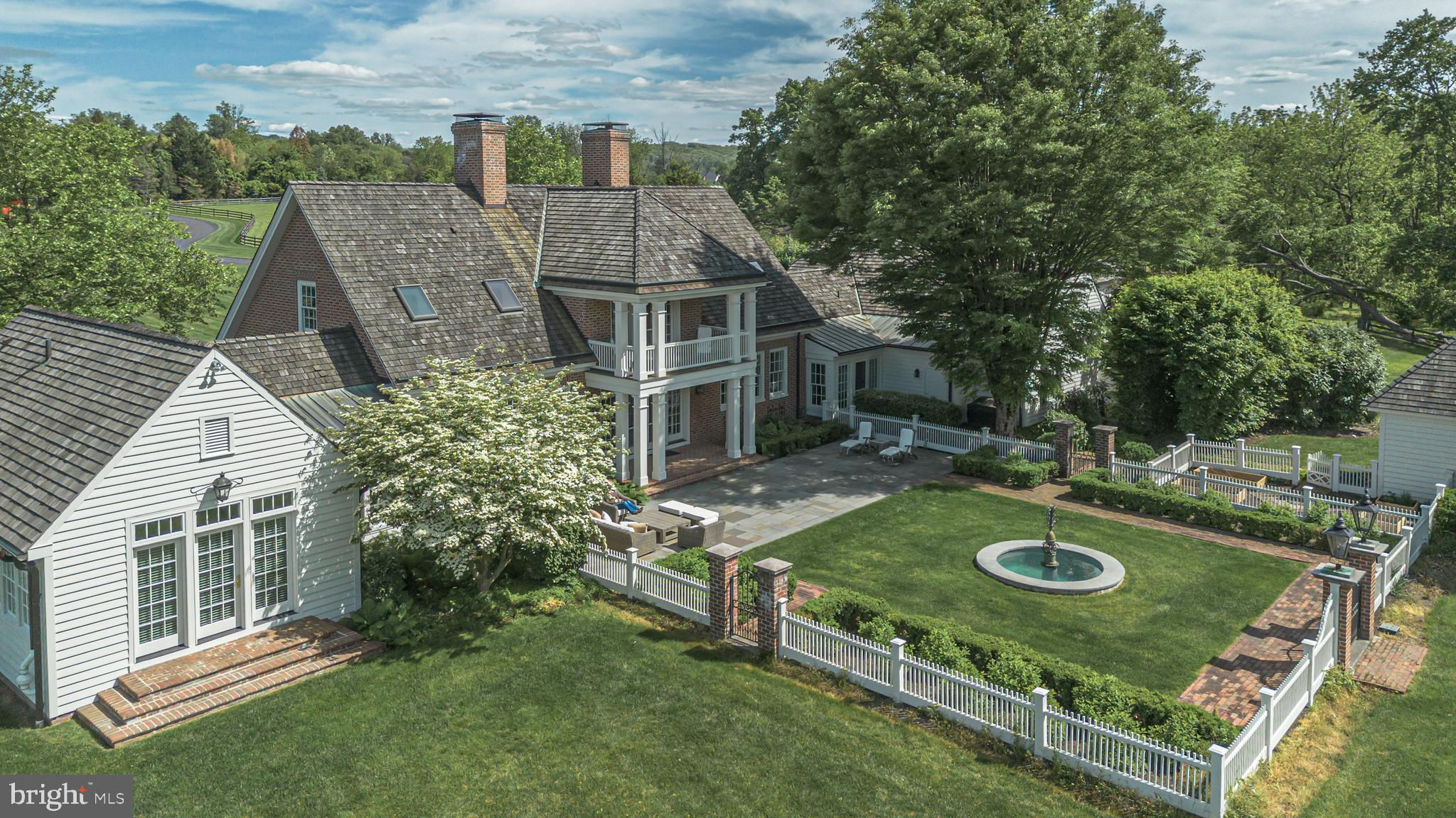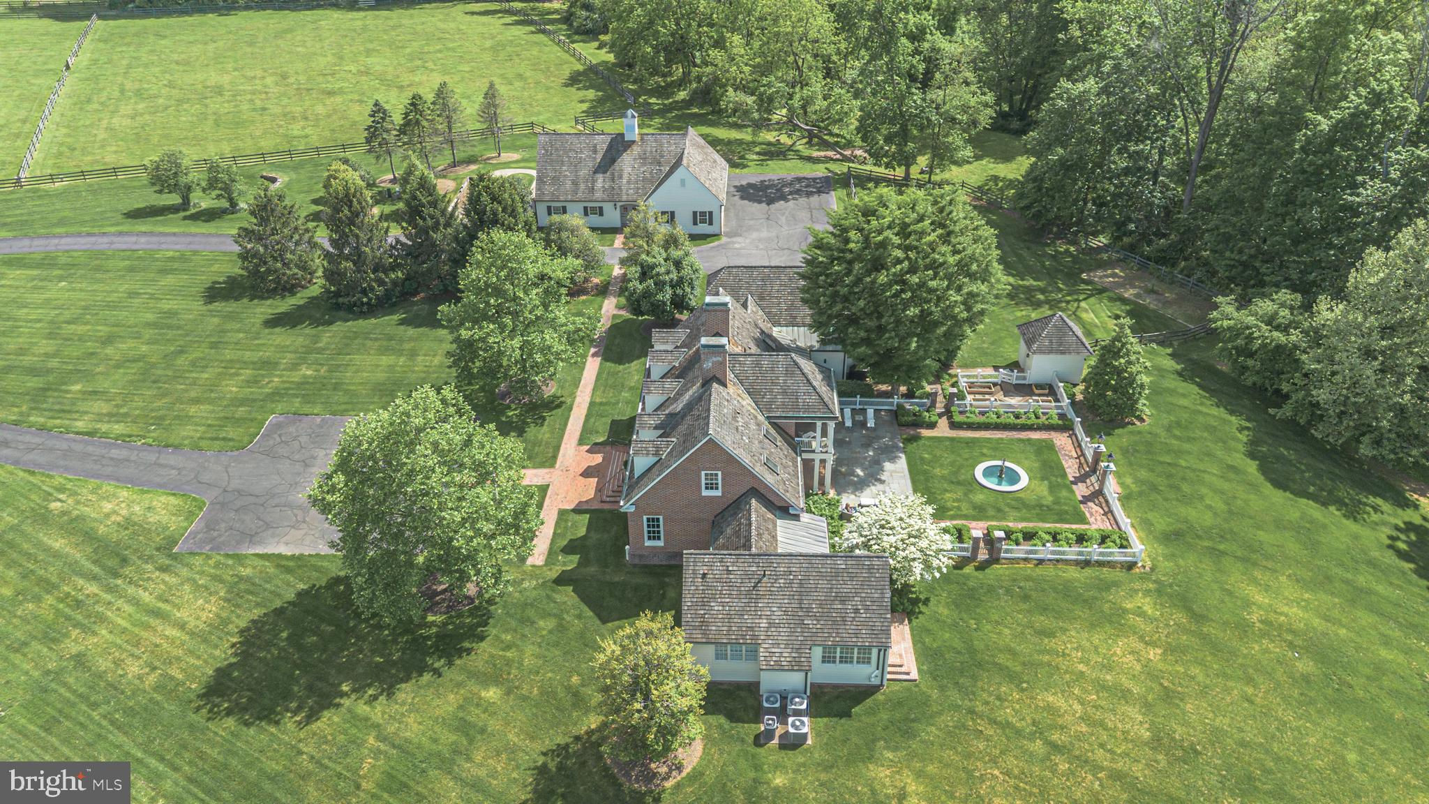 Situated on over 15 serene acres just a few hundred yards from the iconic Van Sandt Covered Bridge, is a distinguished Williamsburg-style brick estate and gentleman’s farm that seamlessly blends classic elegance with equestrian functionality. Built by renowned local master builder Jarrett-Vaughn, this custom home offers privacy, breathtaking views from every room, and unparalleled craftsmanship throughout. Once inside the double entry door, the stately main residence showcases a grand foyer with rich oak hardwood floors throughout. To the left, a formal dining room with charming built-in corner cabinets; to the right, an expansive light-filled, family room anchored by a striking fireplace Adding to the charm on the first floor is a library with a wall of buit-in bookshelves and a partial brick floor. The first-floor primary suite is a private sanctuary with dual walk-in closets, a spa-like bath with jetted tub, and sweeping views of the rear picturesque grounds. A chef’s dream, the gourmet kitchen is outfitted with Wolf and Sub-Zero appliances, granite countertops, and a large center island with farmhouse sink. Adjoing the kitchen area is sun-filled breakfast area complete with a fireplace, and French doors that open to a covered patio. Nearby are a butler’s pantry and convenient first-floor laundry room. Upstairs, you'll find two generously sized bedrooms—each with walk-in closets and en suite baths—as well as a handsome office/library with built-ins and a large balcony overlooking the gardens and a beautiful pineapple water fountain. The finished lower level is ideal for entertaining, offering a custom granite-topped bar, a cedar closet, ample finished and unfinished storage, and direct access to the oversized three-car garage. The home’s interior excellence is matched only by its meticulously designed outdoor spaces—with expansive bluestone patios perfect for outdoor entaining or just relaxing, a formal fenced in garden, and brick walkways adorned with flowering shrubs. The property includes a beautifully appointed horse facility featuring a well-designed barn with three spacious stalls, a wash stall, tack room, and abundant storage for feed, equipment, and large vehicles. Three fenced paddocks—each with direct stall access—provide the ideal setting for equestrian living. Located in prestigious Solebury Township, this property enjoys a prime location on one of the area’s most sought-after country roads. Whether you're enjoying the quiet solitude of the land, entertaining on a grand scale, or pursuing outdoor and equestrian hobbies, this property delivers it all, with timeless grace and style. Schedule your private tour today!