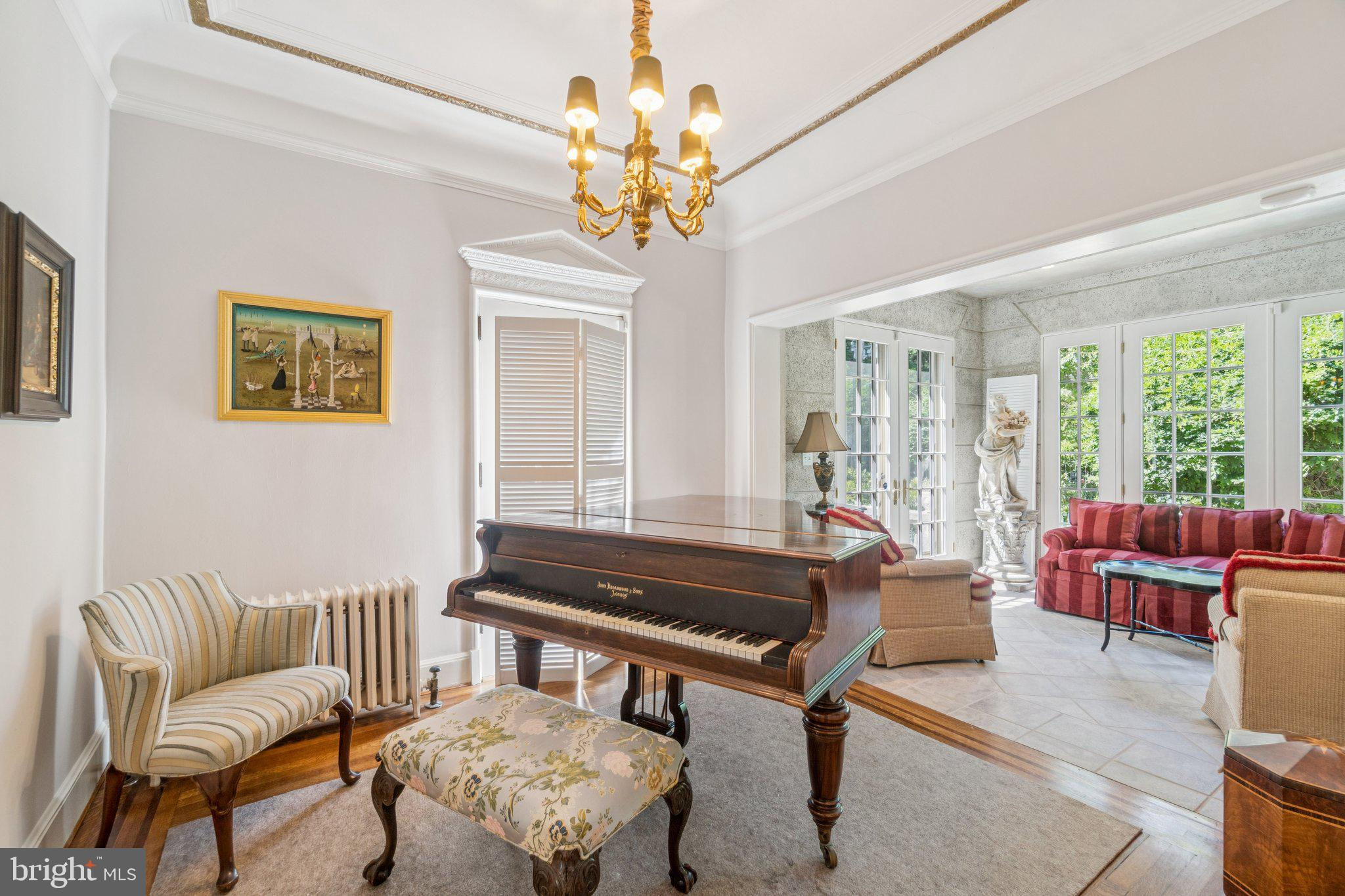 7200 Connecticut Avenue is one of the celebrated Lozupone Houses—an extraordinary trio of Italian Renaissance Revival residences built in 1925 by the Lozupone brothers, renowned ornamental plasterers whose artistry shaped Washington’s great landmarks, including Union Station and the U.S. Capitol. Their Old World craftsmanship remains beautifully preserved here, thoughtfully balanced with modern updates for today’s lifestyle. Inside, the home’s original plasterwork, marble details, and decorative moldings highlight its historic character, while gracious entertaining spaces—including a formal entry hall, elegant living room, and grand dining room—evoke a timeless sophistication. Nearly every room opens to the outdoors, connecting seamlessly with terraces, gardens, and the home’s landscaped grounds. A two-story addition extends the home with a spacious family room on the main level and a private guest suite above—ideal for multigenerational living, visitors, or a secluded home office. Upstairs, the main house offers three bedrooms and two full baths. The serene primary suite features a spa-like bath with soaking tub, dual vanities, frameless glass shower, and a generous walk-in closet. French doors open to a balustraded terrace, completing this retreat. Additional bedrooms each showcase unique style and share a well-appointed hall bath. The expansive lower level adds flexible living space with a family room, full bath, laundry, and abundant storage. Outside, the 12,000 sq. ft. lot provides a private courtyard with fountain, a large flat lawn, and a detached two-car garage. Blending artistry, elegance, and comfort, 7200 Connecticut Avenue offers a rare chance to own a piece of Chevy Chase’s architectural and cultural heritage. Square footage is approximate and should not be used for property valuation.