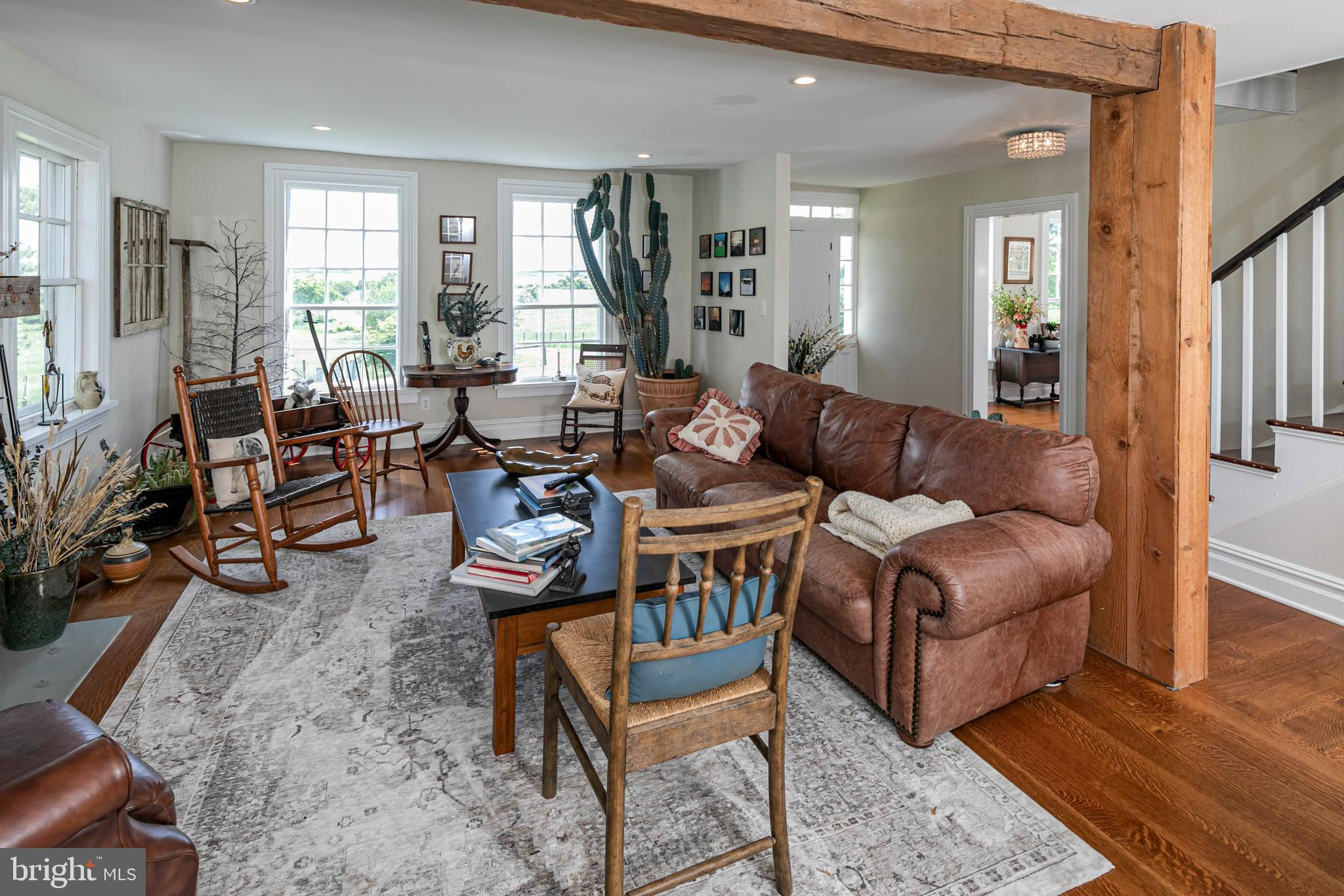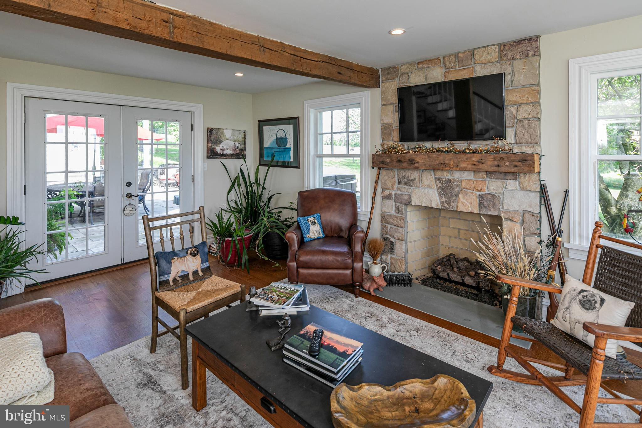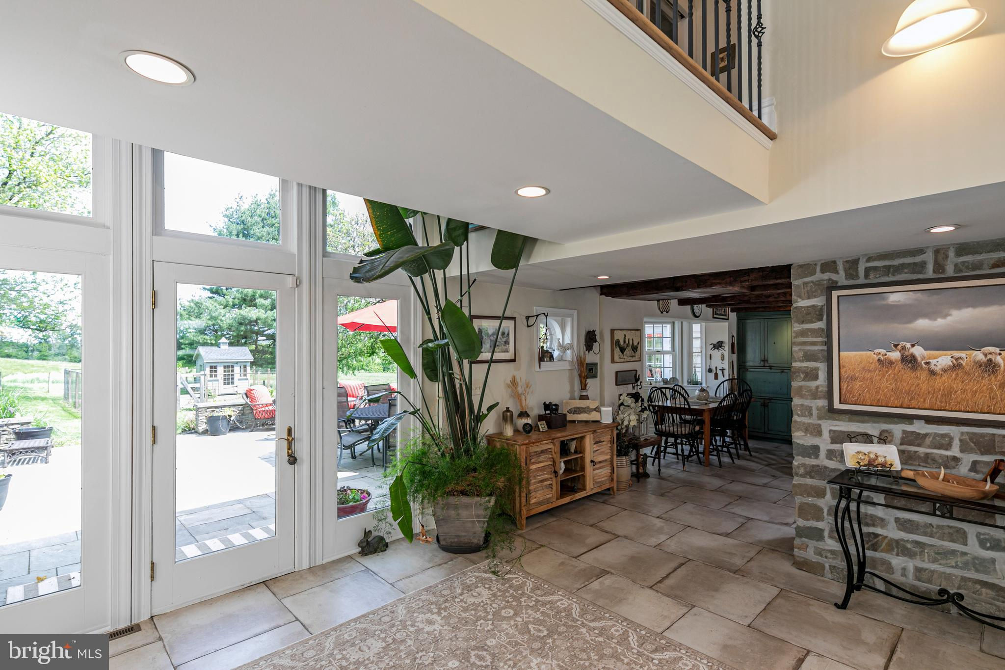 Just a few turns from New Jersey’s last covered bridge, 89 inspired acres roll out like a pastoral dream in the heart of Hunterdon County. This is not your average farmstead. This is a place where traditions are honored, animals are well-housed, and there’s a proper barn just for parties complete with a barrel-vaulted ceiling and a bar. The land itself is shaped by a network of fenced paddocks, dry lots, and barns that still serve their original purpose. One is ready for horses with four stalls, a heated tack room, and a hayloft that swallows up to 1,200 bales. Another once ran as a dairy barn, now brimming with potential, and there’s even a proper chicken coop. At the center of it all, the 19th-century farmhouse has been added upon and transformed into a place of pure comfort and grace, warmed by two gas fireplaces and the stories told around them. The kitchen, with its oversized island, hearth, and casual dining nook, is where the hours melt away. The great room, with its soaring ceiling and shuttered interior windows, is equal parts music hall and quiet escape. The living room spills out onto a wide bluestone patio. The dining room still knows how to host a holiday, and the upstairs main bedroom is thoughtfully tucked away from the others, one of which hides a cedar closet. There’s laundry upstairs, a sauna below, and a stone-walled nook that all but begs to become a wine cellar. Elsewhere on the property are surprises that stretch this estate beyond a single narrative: a garage with a finished game room above, a storybook cottage-style apartment, another two-bedroom apartment with a loft, and a studio with its own bathroom. Even the pets have their own fenced ¾-acre patch to keep them safe. In a world that moves too fast, this is a place that knows how to slow down while keeping farm life humming. Comprised of two lots: 84 acres for the farm land and 4.92 for the main residence. Please note the bedroom and bathroom counts include the guest house and cottage apartment.