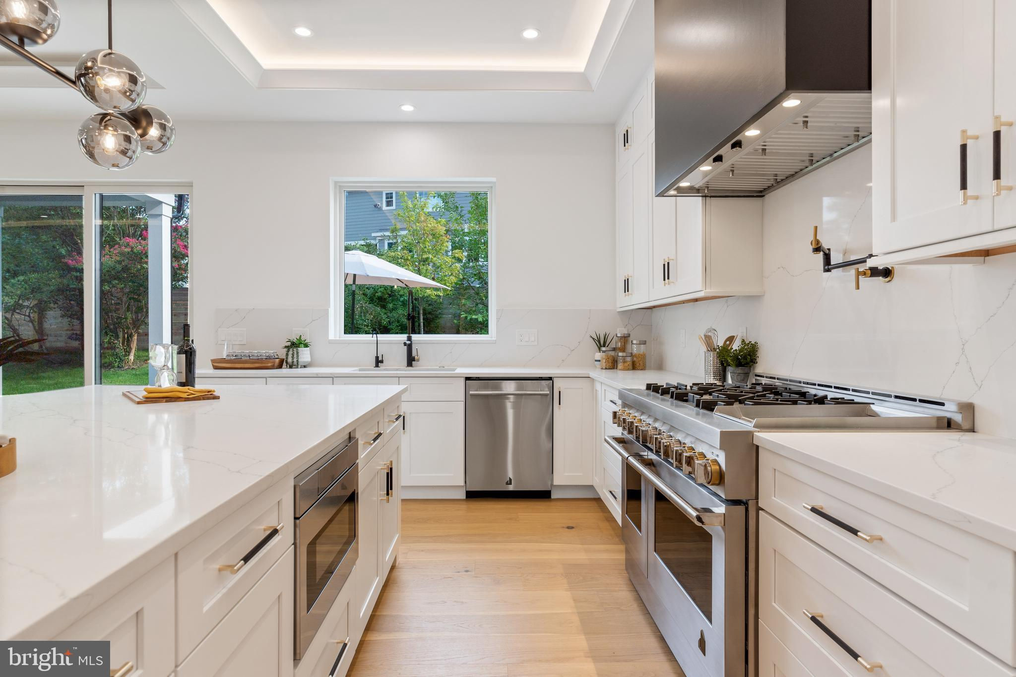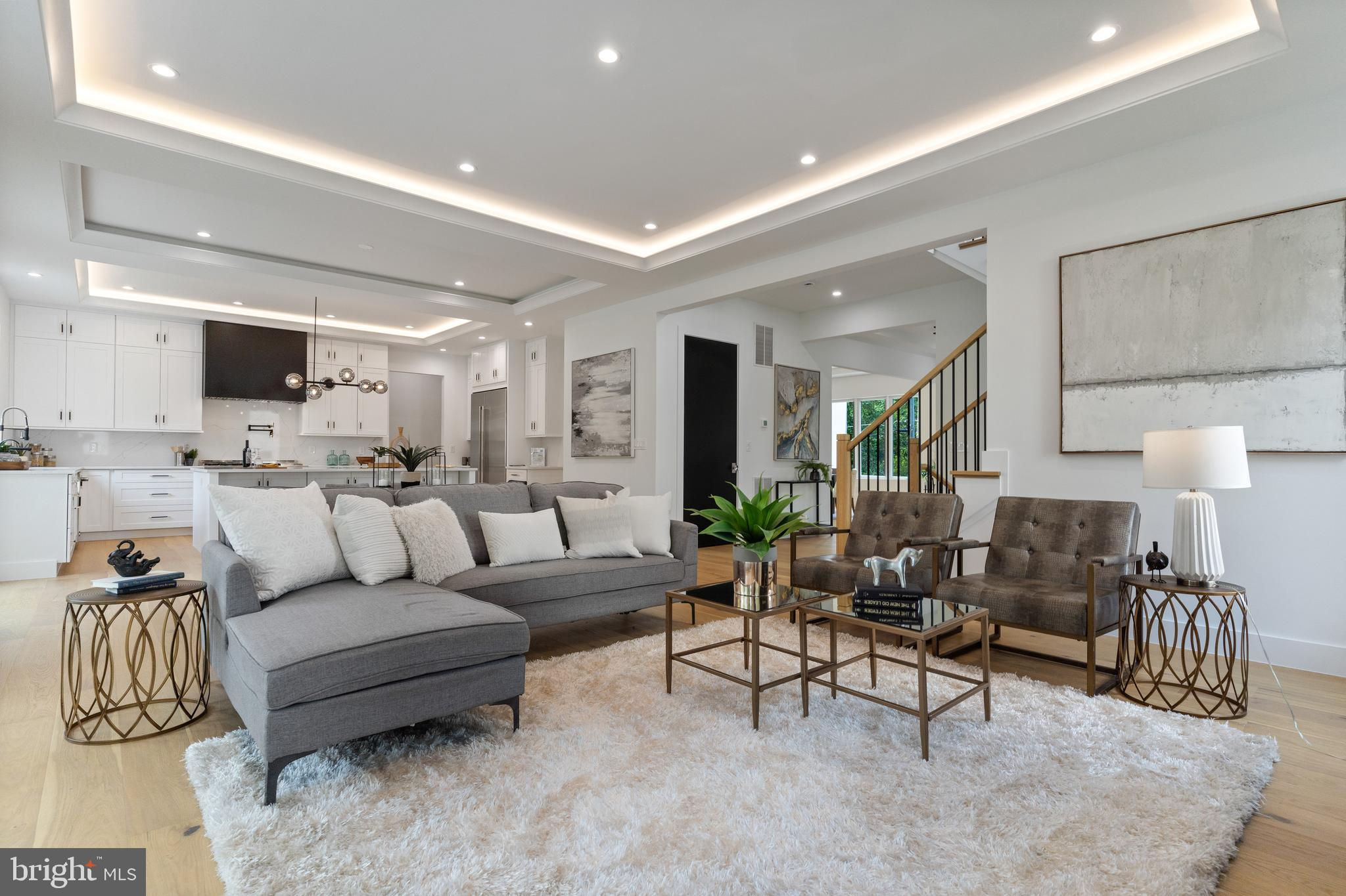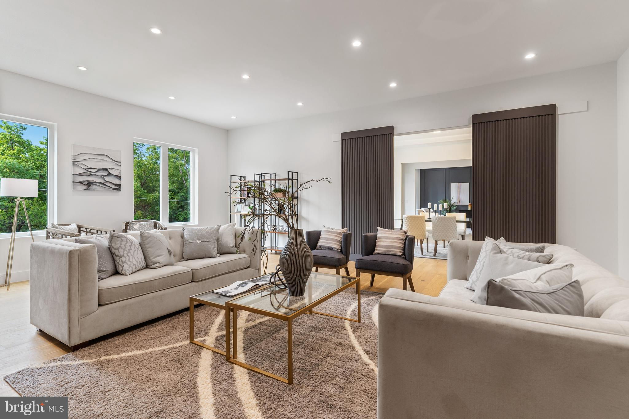 Spectacular sleek modern design home from Bella Home Construction. 7600 square feet. Mid November delivery. This gorgeous home has an open floor concept and boasts 6 bedrooms, 6 full bathrooms and 1 half baths. 7 1/2” European oak floors throughout all 3 levels. Beautiful wood accent walls throughout the home. This home will have an elevator installed for your convenience. 10 ft ceilings on the main floor and 9 ft on the upper and lower levels. On the main floor, you will be greeted by a formal living room, a full-sized dining room, a chef's kitchen, a family room complete with a gas fireplace, an additional private family room and a large main level bedroom guest suite. The impressive kitchen is adorned with a massive 10 ft island with quartz countertops and showcases top-of-the-line Jenn-Air stainless steel appliances, a built-in pantry room and a butler’s pantry. The outdoor space is equally enticing with expansive walls of glass sliding doors and windows with natural sunlight granting access to a covered porch and patio off the kitchen. The upper level showcases 4 bedrooms, 4 bathrooms with a large laundry area. The grand owner suite boasts a separate sitting room with an electric fireplace, a spa-like bath with heated floors, a spectacular 2-person rain shower, a free standing oversized 72” soaking tub, and a 2 huge walk-in closet with custom cabinetry. The lower level features a 4 tandem car oversized garage, a custom-built mud area, a gas fireplace in a spacious family room, wet bar with wine cooler, exercise room, bedroom and one full bathroom. **Images shown are of similar completed projects. Do not miss out on this opportunity.