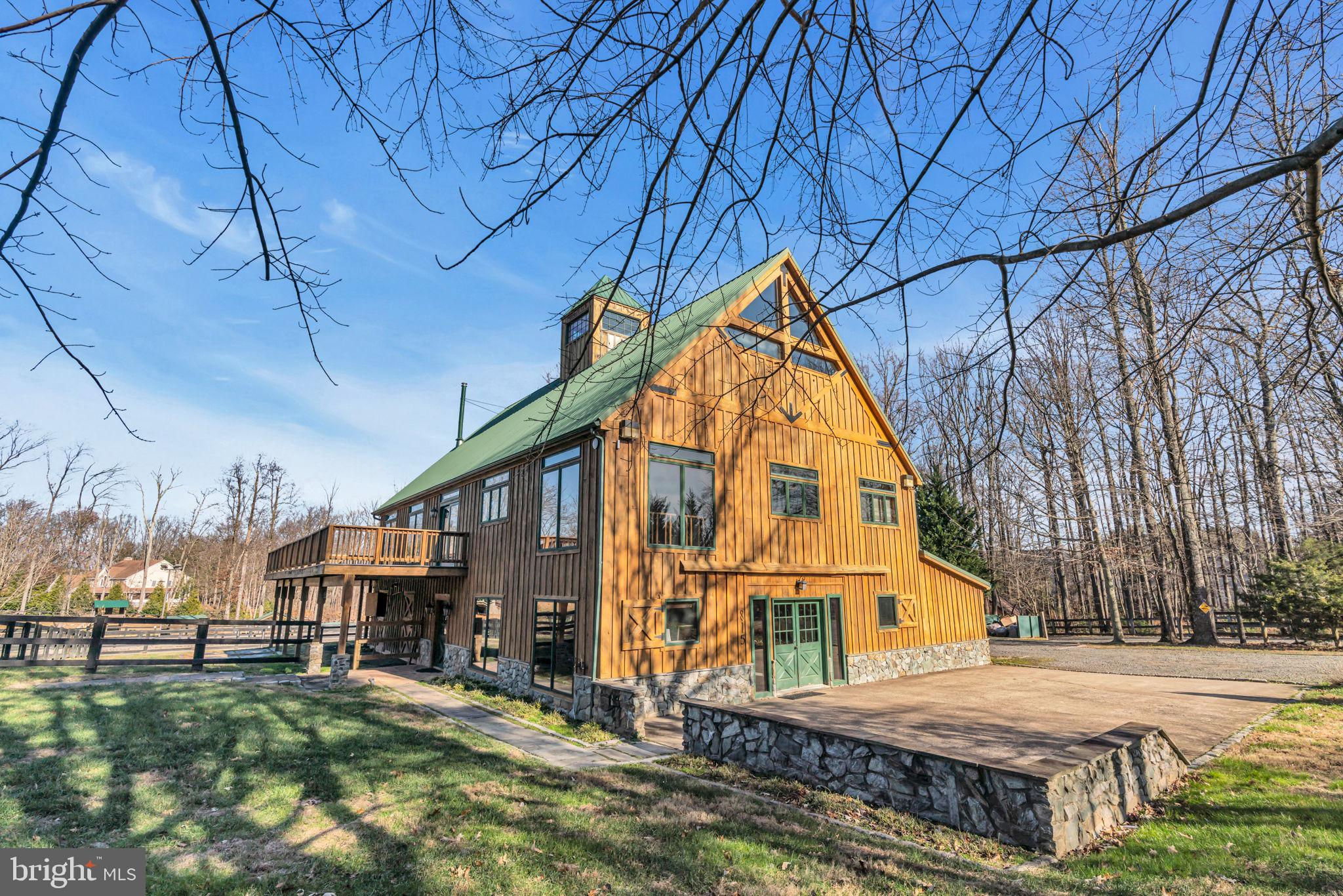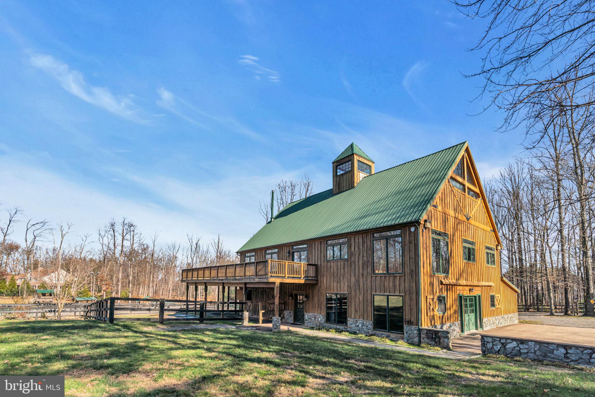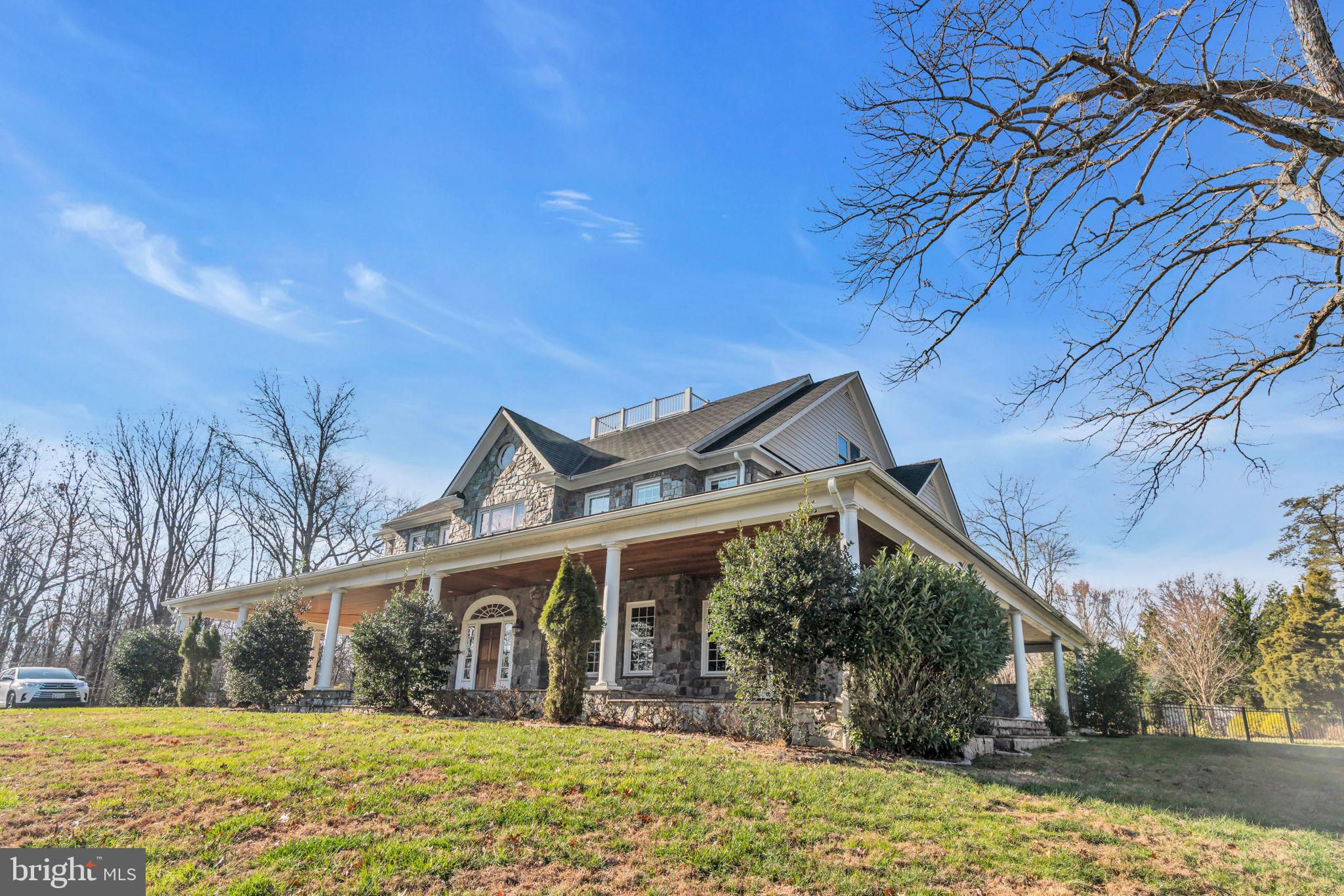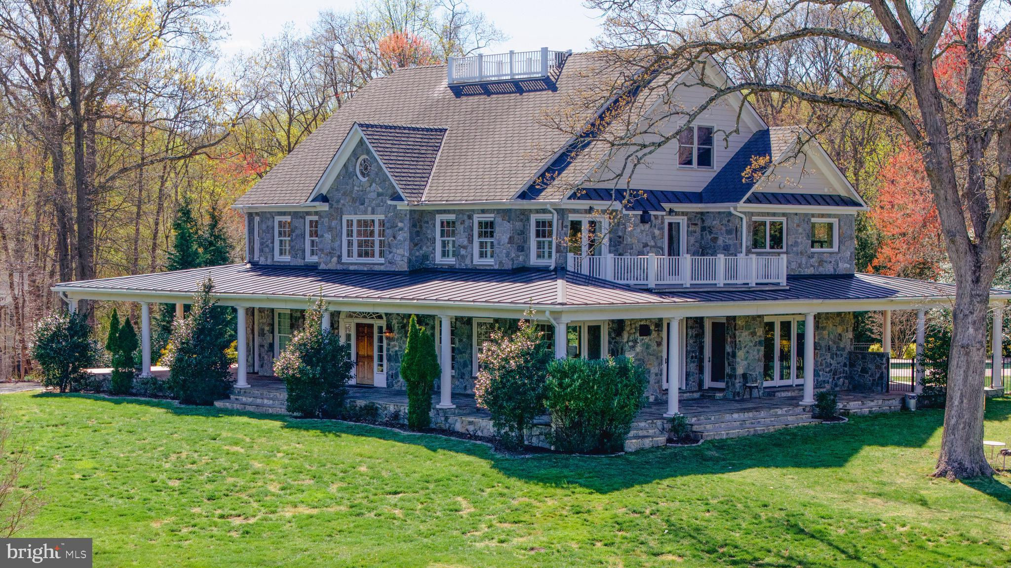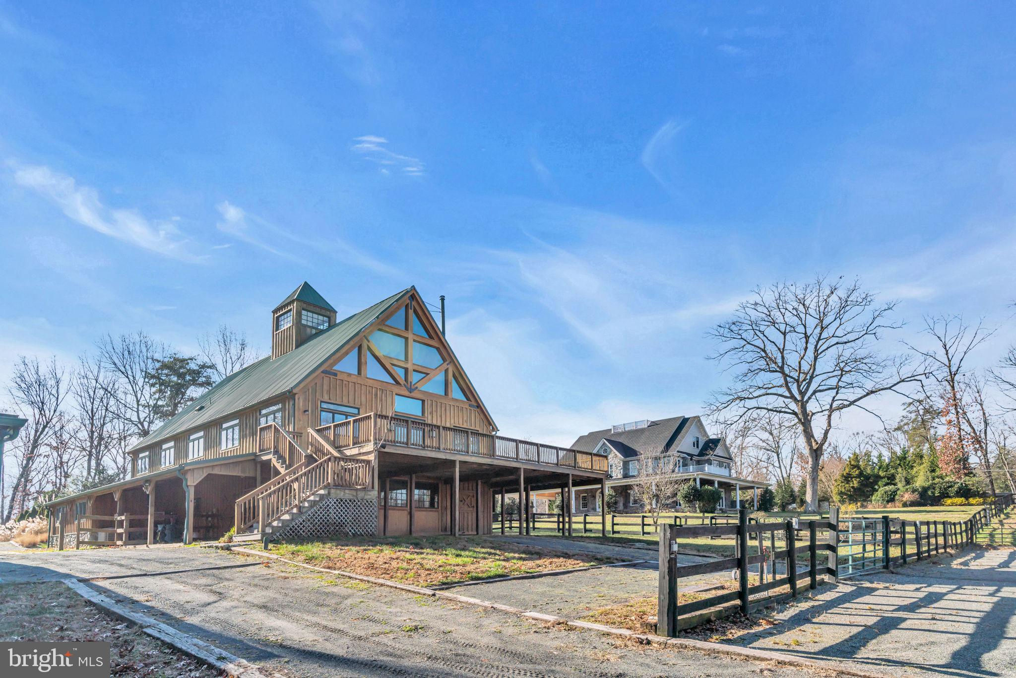 Welcome to 815 Blacks Hill Rd, a magnificent estate offering over 7,185 square feet of refined living space and 5.47 acres of land surrounded by breathtaking views. The property seamlessly connects to a nearby state-maintained roadway, ensuring easy access while maintaining a sense of serene seclusion. The home’s exterior boasts a spacious porch with an elegant tongue-and-groove ceiling that wraps around the residence, allowing for direct outdoor access from every primary-level room. Inside, you'll find broad plank hardwood flooring, soaring 10-foot ceilings, and a blend of decorative exposed beams and intricate coffered ceilings that add charm and sophistication. At the heart of the home lies a gourmet kitchen, perfect for both intimate meals and grand entertaining. The kitchen features an expansive island with bar seating, ideal for gathering and culinary creativity. The luxurious owner’s suite is a private retreat, offering dual bathrooms, two expansive walk-in closets, and a private balcony with tranquil views of the surrounding landscape. Outdoors, the amenities continue with a stunning pool area, an outdoor kitchen with ample bar seating, and a stone fireplace for cozy evenings under the stars. The expansive lawn provides plenty of space for outdoor activities, making it perfect for gatherings. For equestrian enthusiasts, the property includes a large barn that accommodates horses. The upper floor of the barn is equally impressive, featuring luxurious living quarters with a great room framed by panoramic windows, high cathedral ceilings with exposed beams, a kitchen with a large island, two bedrooms, 1.5 bathrooms, and a loft bunk room. The barn also includes several stalls, making it a perfect combination of functional and luxurious living. This property is a rare opportunity to own a piece of paradise in Great Falls, VA.
