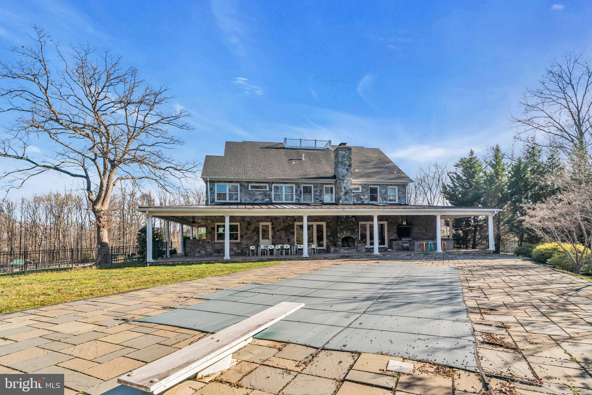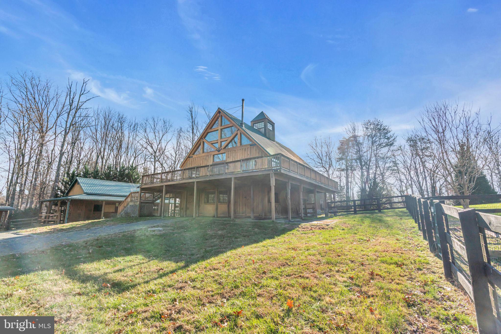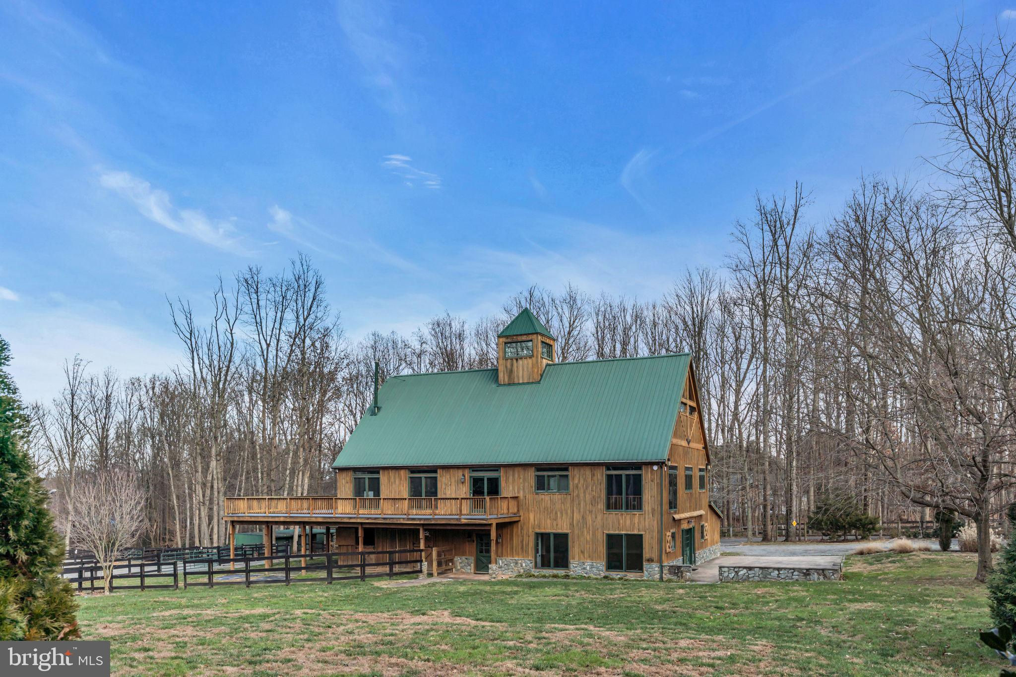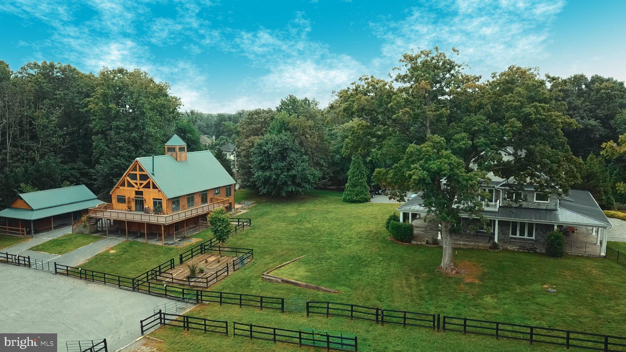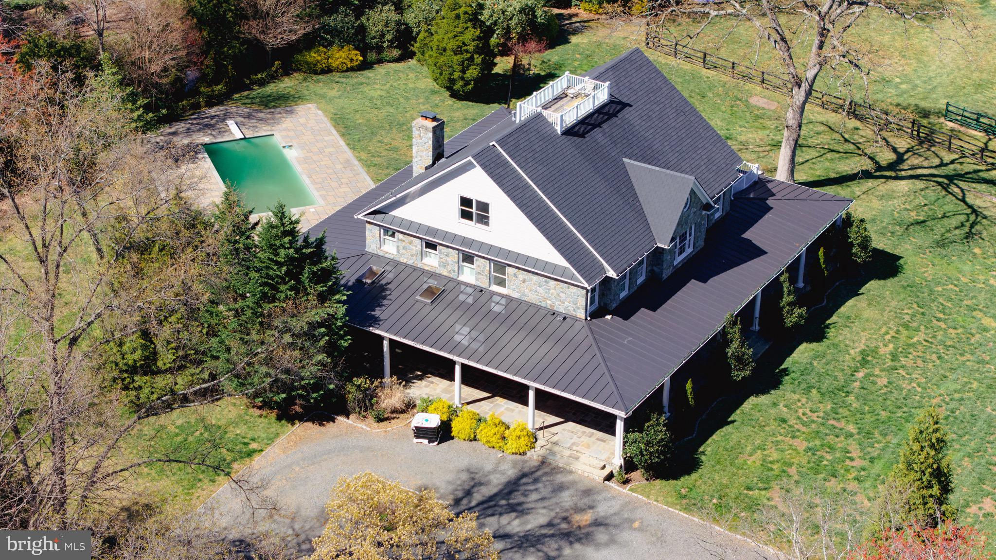 Welcome to 815 Blacks Hill Rd, a magnificent estate offering over 7,185 square feet of refined living space and 5.47 acres of land surrounded by breathtaking views. The property seamlessly connects to a nearby state-maintained roadway, ensuring easy access while maintaining a sense of serene seclusion. The home’s exterior boasts a spacious porch with an elegant tongue-and-groove ceiling that wraps around the residence, allowing for direct outdoor access from every primary-level room. Inside, you'll find broad plank hardwood flooring, soaring 10-foot ceilings, and a blend of decorative exposed beams and intricate coffered ceilings that add charm and sophistication. At the heart of the home lies a gourmet kitchen, perfect for both intimate meals and grand entertaining. The kitchen features an expansive island with bar seating, ideal for gathering and culinary creativity. The luxurious owner’s suite is a private retreat, offering dual bathrooms, two expansive walk-in closets, and a private balcony with tranquil views of the surrounding landscape. Outdoors, the amenities continue with a stunning pool area, an outdoor kitchen with ample bar seating, and a stone fireplace for cozy evenings under the stars. The expansive lawn provides plenty of space for outdoor activities, making it perfect for gatherings. For equestrian enthusiasts, the property includes a large barn that accommodates horses. The upper floor of the barn is equally impressive, featuring luxurious living quarters with a great room framed by panoramic windows, high cathedral ceilings with exposed beams, a kitchen with a large island, two bedrooms, 1.5 bathrooms, and a loft bunk room. The barn also includes several stalls, making it a perfect combination of functional and luxurious living. This property is a rare opportunity to own a piece of paradise in Great Falls, VA.