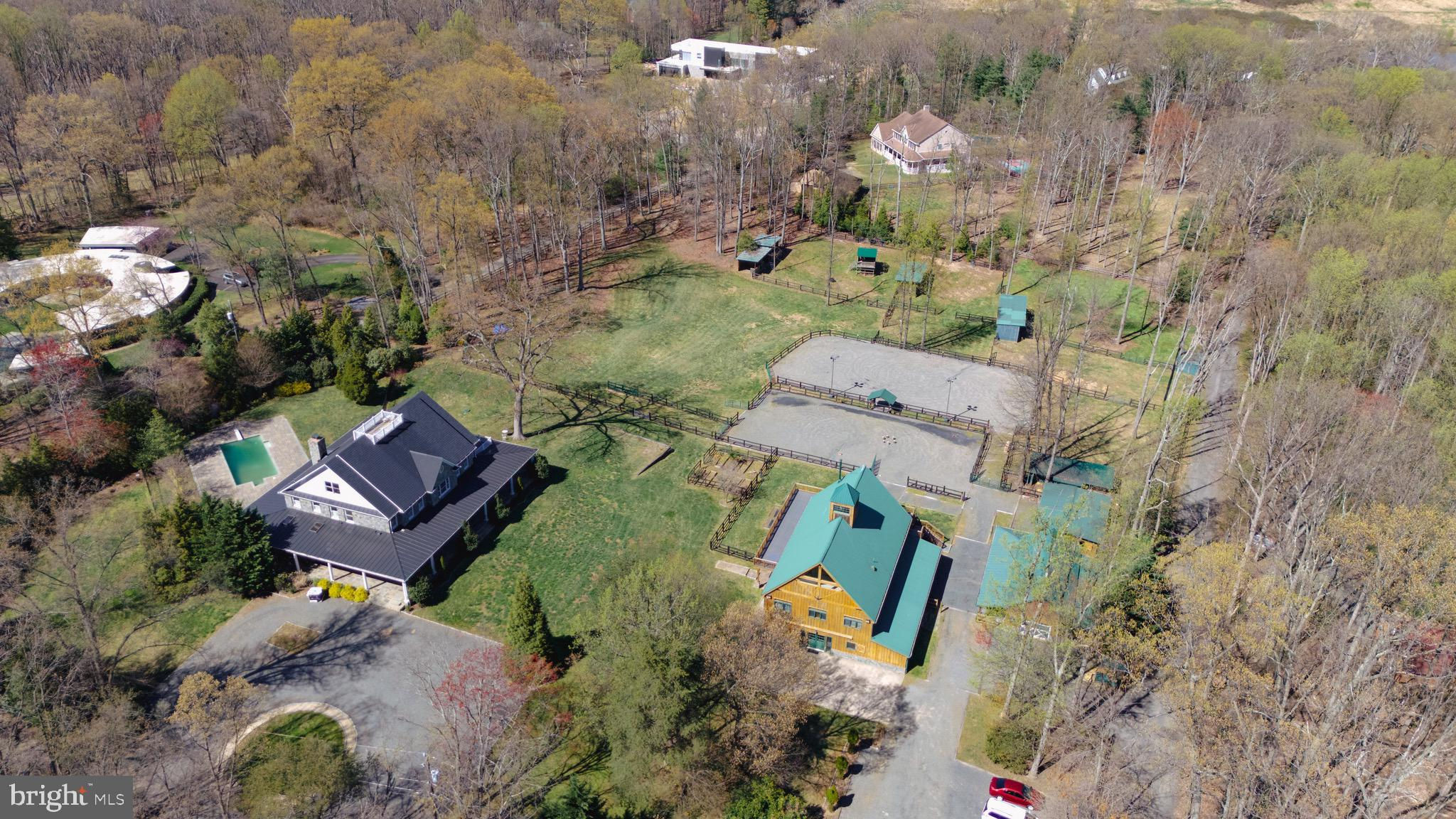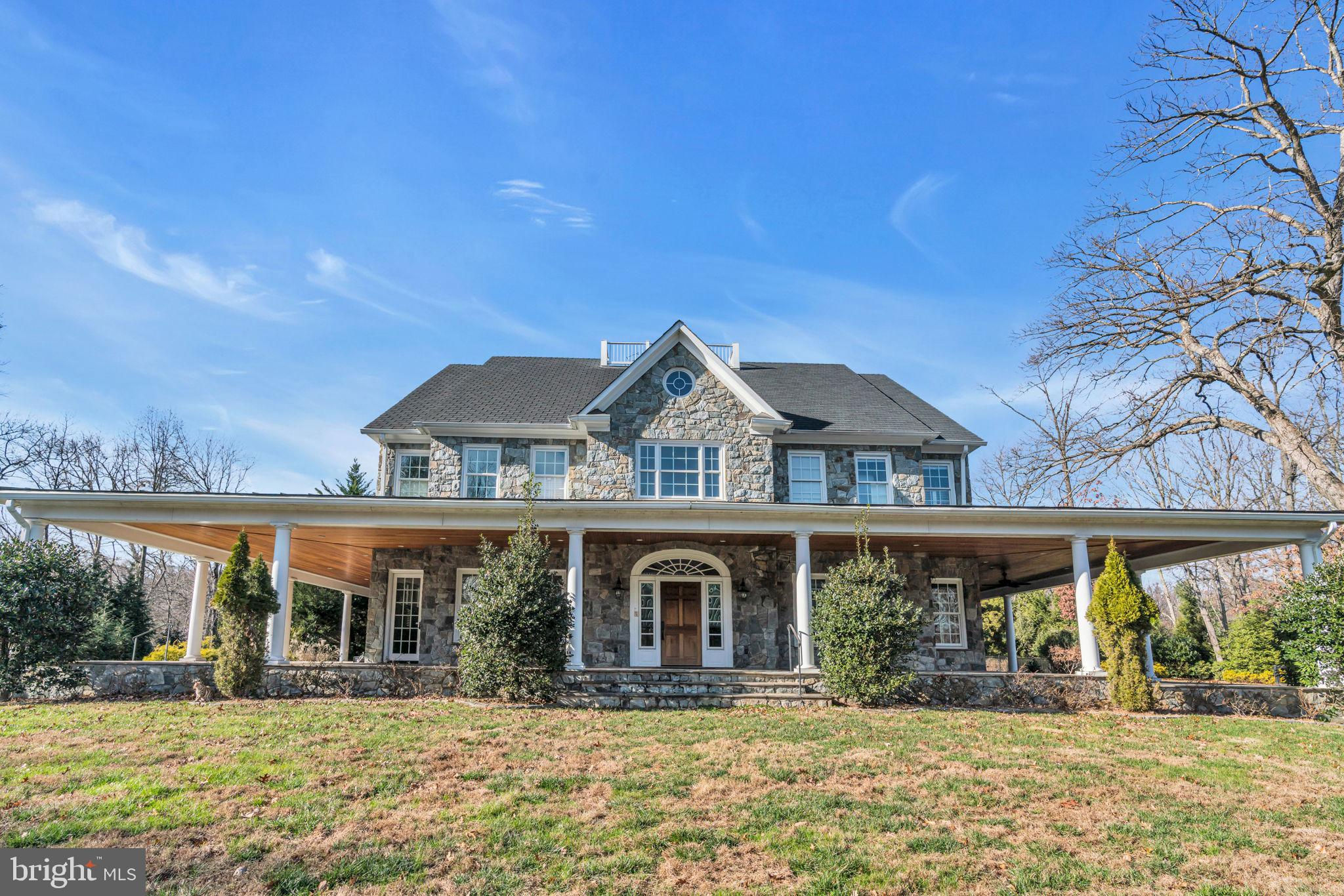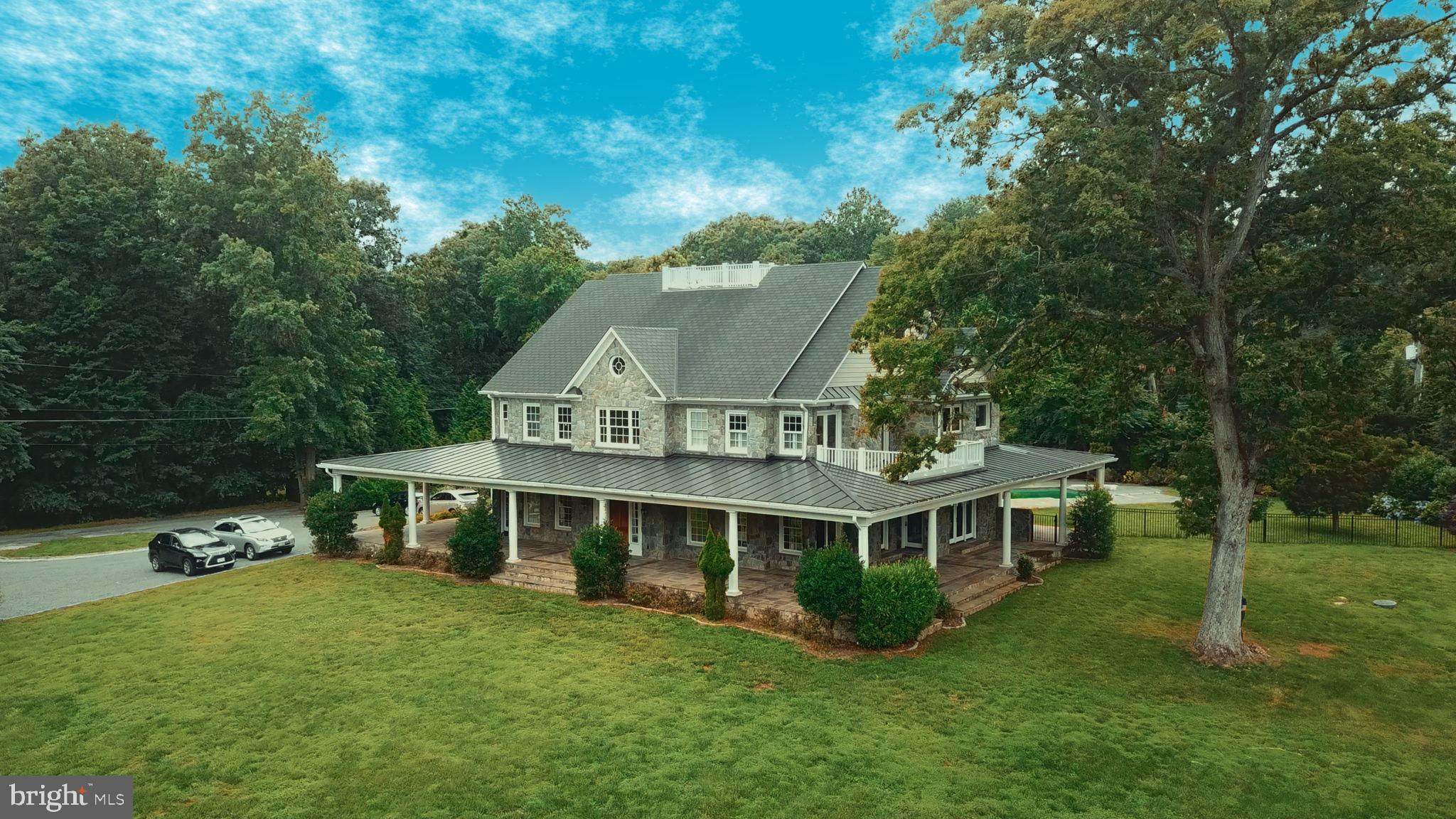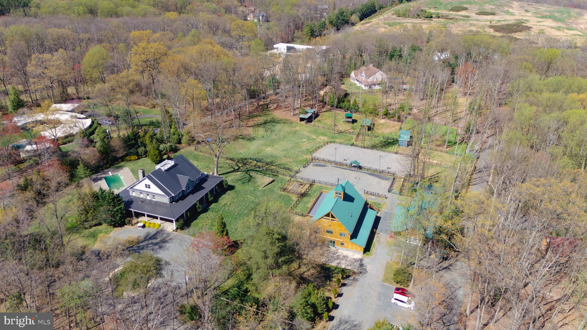 Welcome to 815 Blacks Hill Rd, a magnificent estate offering over 7,185 square feet of refined living space and 5.47 acres of land surrounded by breathtaking views. The property seamlessly connects to a nearby state-maintained roadway, ensuring easy access while maintaining a sense of serene seclusion. The home’s exterior boasts a spacious porch with an elegant tongue-and-groove ceiling that wraps around the residence, allowing for direct outdoor access from every primary-level room. Inside, you'll find broad plank hardwood flooring, soaring 10-foot ceilings, and a blend of decorative exposed beams and intricate coffered ceilings that add charm and sophistication. At the heart of the home lies a gourmet kitchen, perfect for both intimate meals and grand entertaining. The kitchen features an expansive island with bar seating, ideal for gathering and culinary creativity. The luxurious owner’s suite is a private retreat, offering dual bathrooms, two expansive walk-in closets, and a private balcony with tranquil views of the surrounding landscape. Outdoors, the amenities continue with a stunning pool area, an outdoor kitchen with ample bar seating, and a stone fireplace for cozy evenings under the stars. The expansive lawn provides plenty of space for outdoor activities, making it perfect for gatherings. For equestrian enthusiasts, the property includes a large barn that accommodates horses. The upper floor of the barn is equally impressive, featuring luxurious living quarters with a great room framed by panoramic windows, high cathedral ceilings with exposed beams, a kitchen with a large island, two bedrooms, 1.5 bathrooms, and a loft bunk room. The barn also includes several stalls, making it a perfect combination of functional and luxurious living. This property is a rare opportunity to own a piece of paradise in Great Falls, VA.
