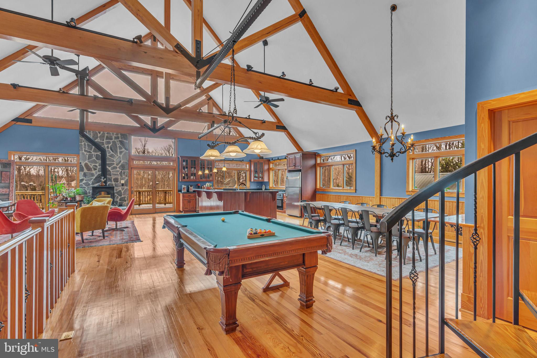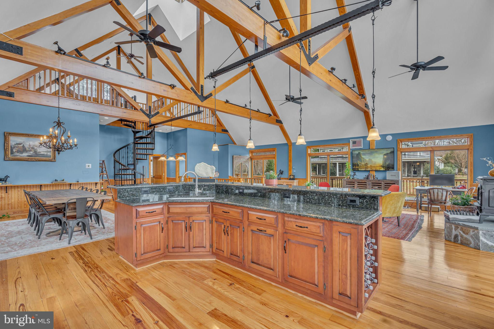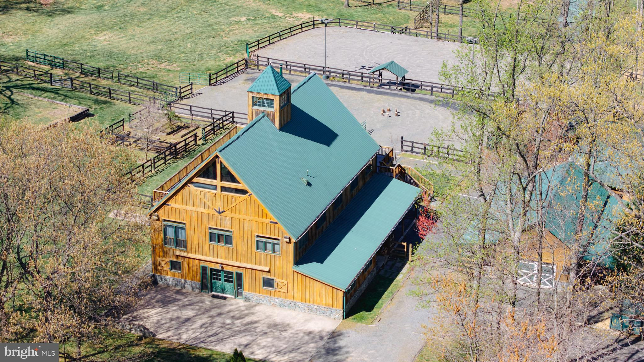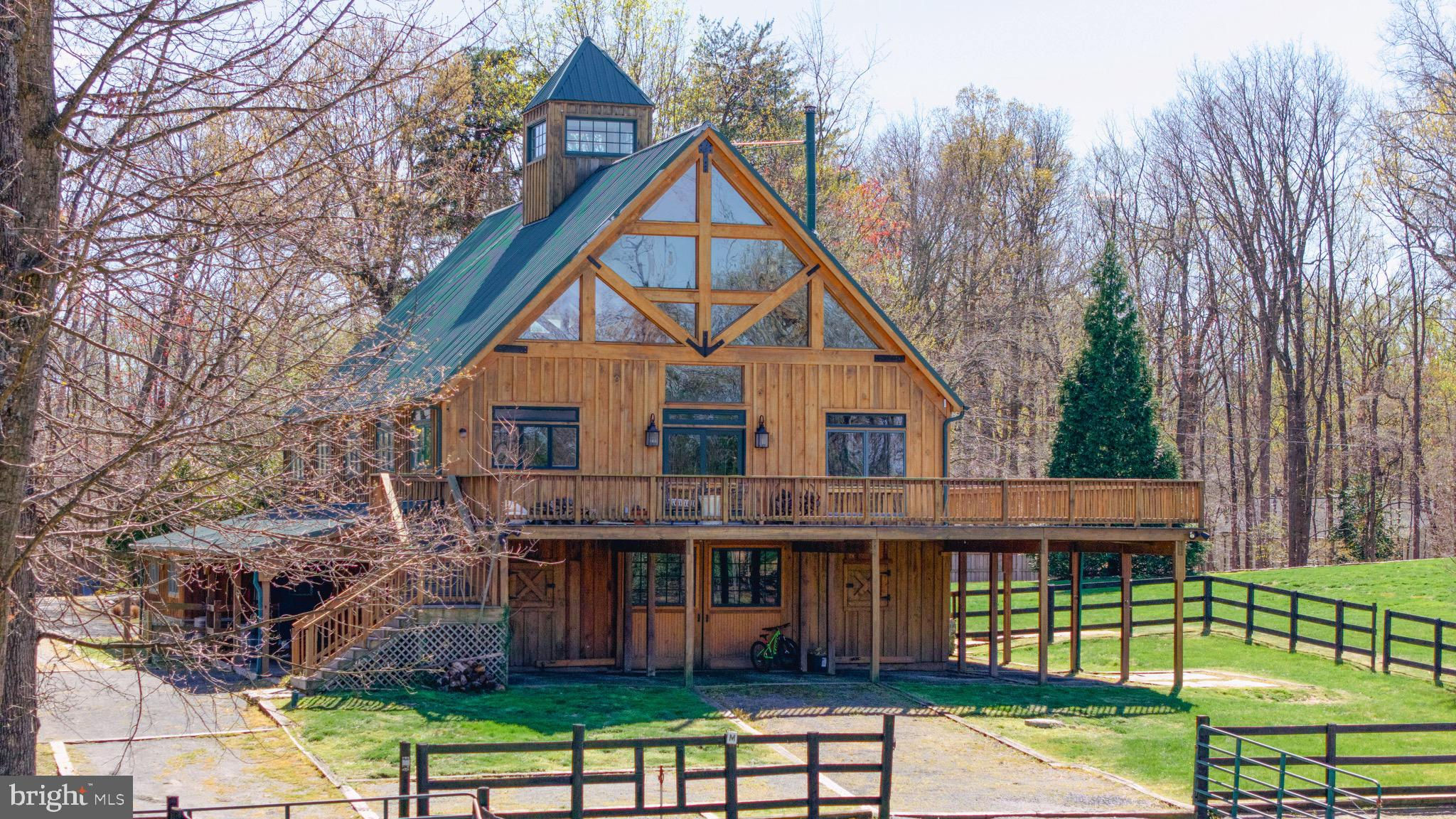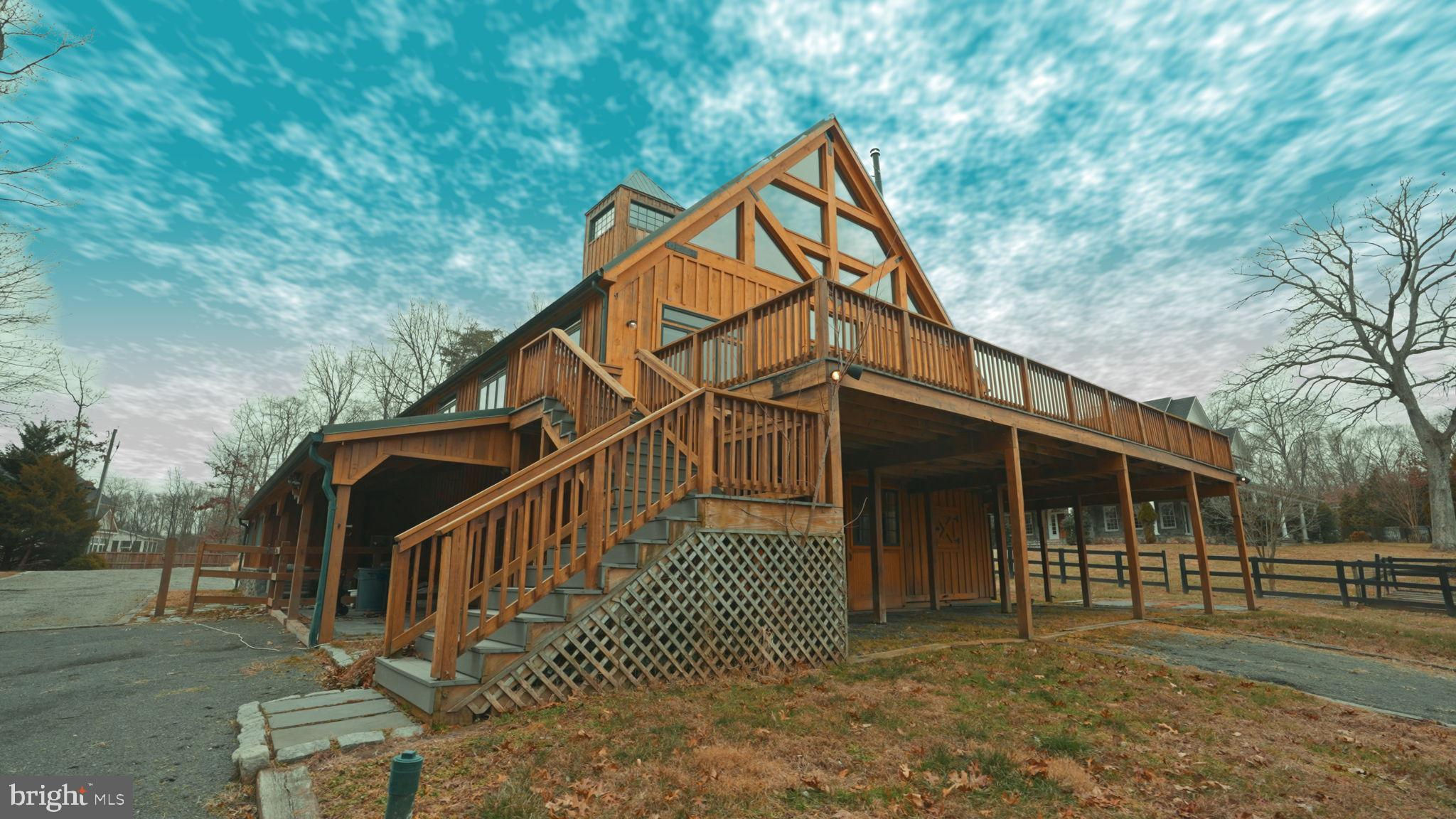Welcome to 815 Blacks Hill Rd, a magnificent estate offering over 7,185 square feet of refined living space and 5.47 acres of land surrounded by breathtaking views. The property seamlessly connects to a nearby state-maintained roadway, ensuring easy access while maintaining a sense of serene seclusion. The home’s exterior boasts a spacious porch with an elegant tongue-and-groove ceiling that wraps around the residence, allowing for direct outdoor access from every primary-level room. Inside, you'll find broad plank hardwood flooring, soaring 10-foot ceilings, and a blend of decorative exposed beams and intricate coffered ceilings that add charm and sophistication. At the heart of the home lies a gourmet kitchen, perfect for both intimate meals and grand entertaining. The kitchen features an expansive island with bar seating, ideal for gathering and culinary creativity. The luxurious owner’s suite is a private retreat, offering dual bathrooms, two expansive walk-in closets, and a private balcony with tranquil views of the surrounding landscape. Outdoors, the amenities continue with a stunning pool area, an outdoor kitchen with ample bar seating, and a stone fireplace for cozy evenings under the stars. The expansive lawn provides plenty of space for outdoor activities, making it perfect for gatherings. For equestrian enthusiasts, the property includes a large barn that accommodates horses. The upper floor of the barn is equally impressive, featuring luxurious living quarters with a great room framed by panoramic windows, high cathedral ceilings with exposed beams, a kitchen with a large island, two bedrooms, 1.5 bathrooms, and a loft bunk room. The barn also includes several stalls, making it a perfect combination of functional and luxurious living. This property is a rare opportunity to own a piece of paradise in Great Falls, VA.