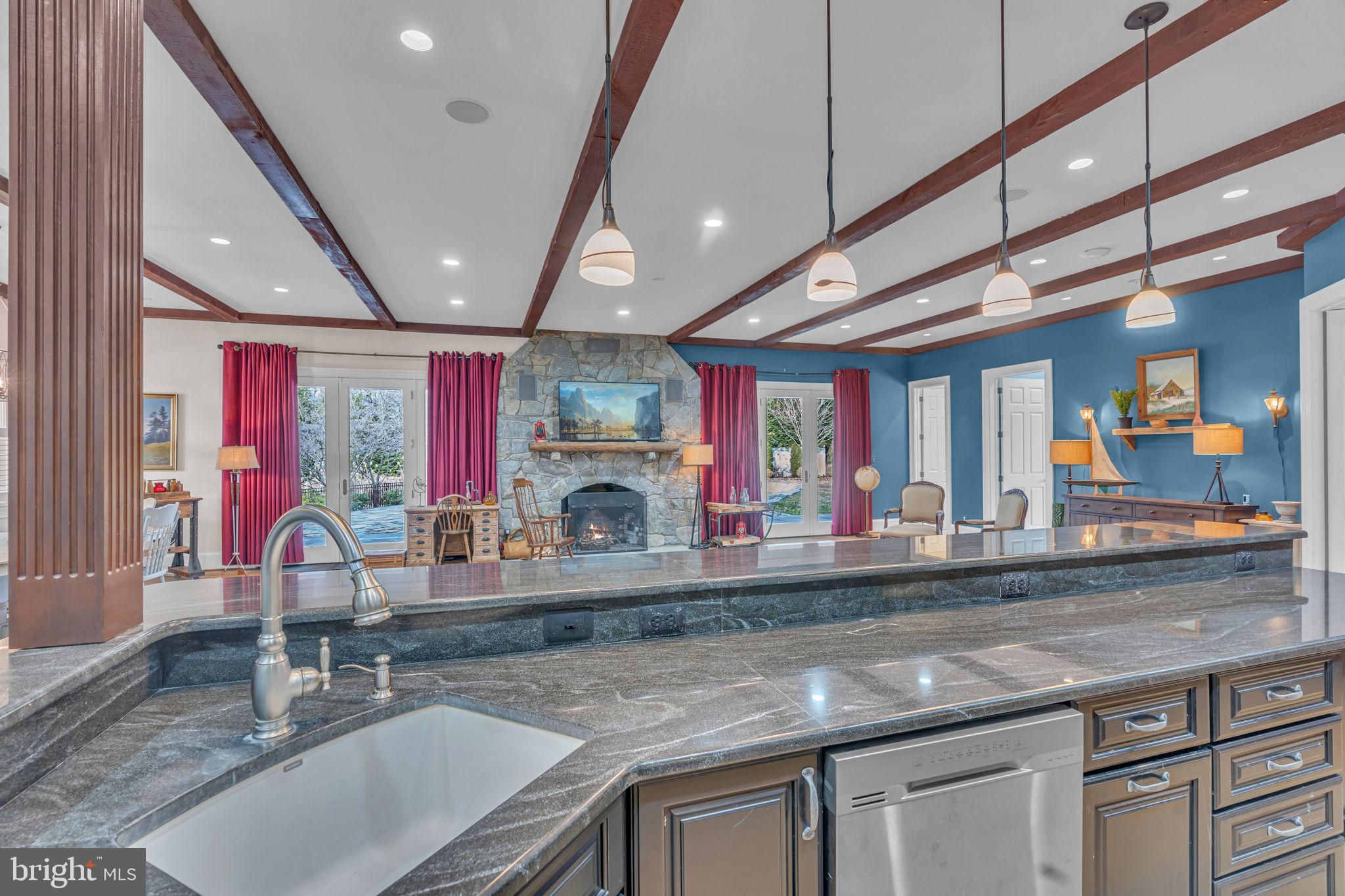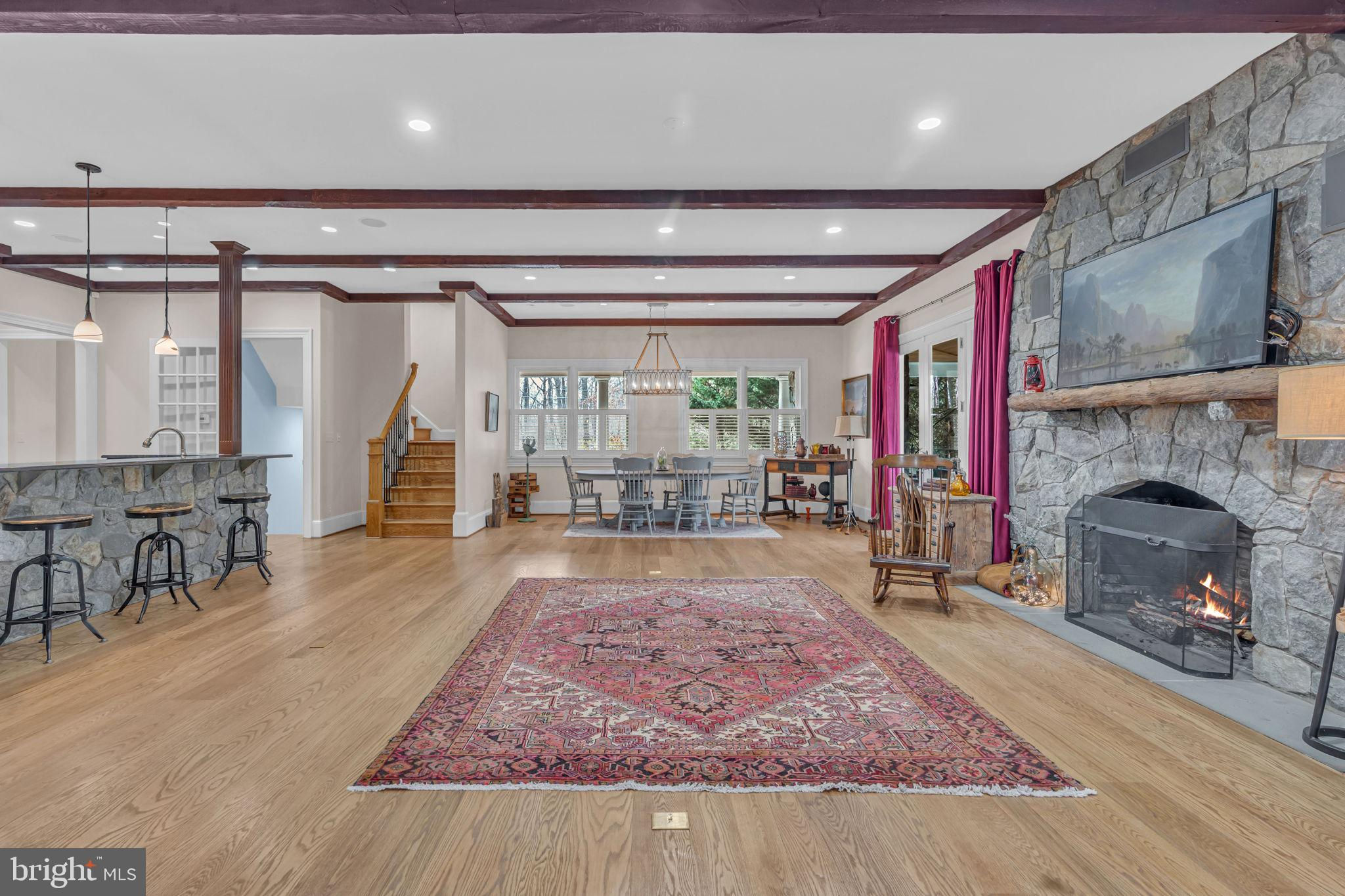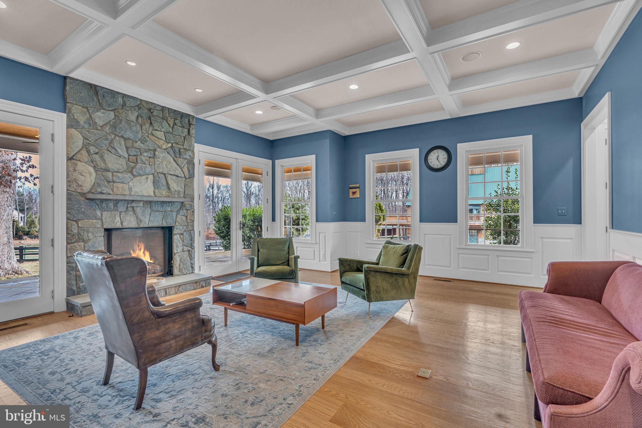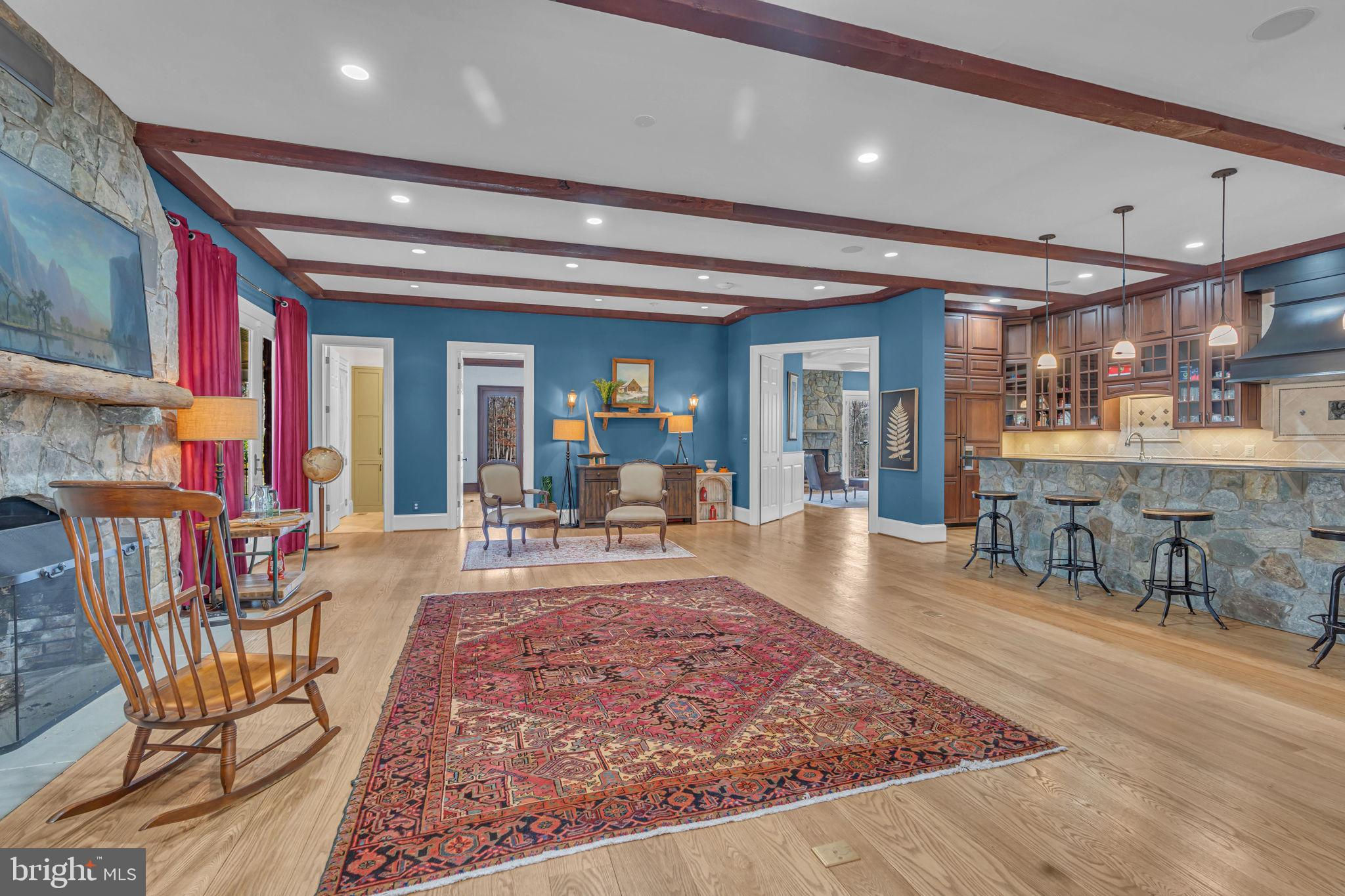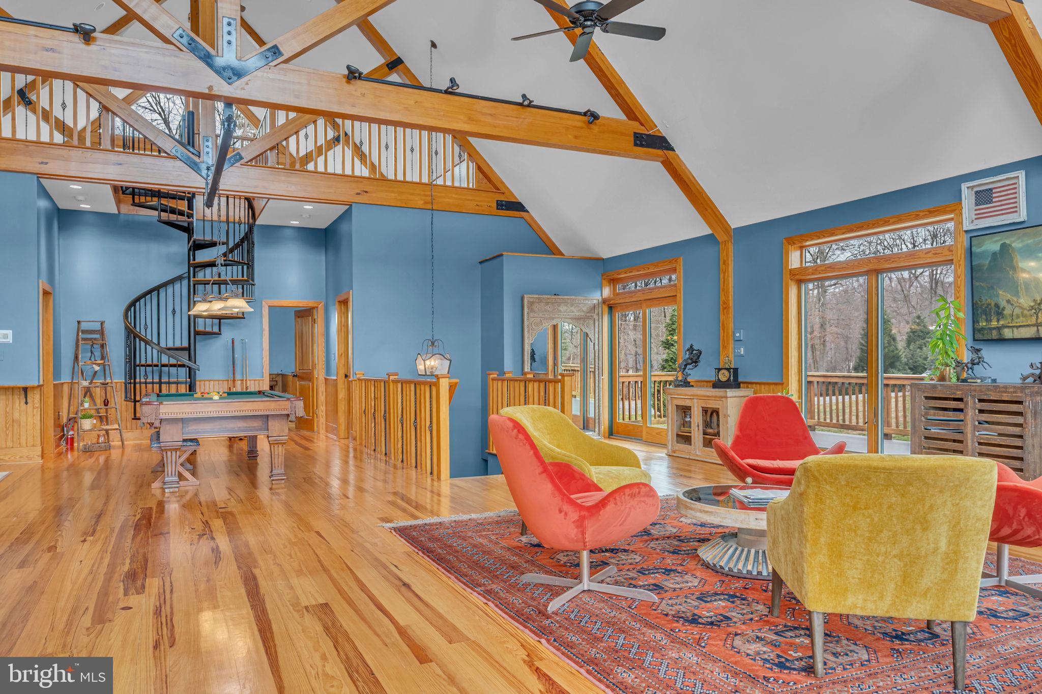 Welcome to 815 Blacks Hill Rd, a magnificent estate offering over 7,185 square feet of refined living space and 5.47 acres of land surrounded by breathtaking views. The property seamlessly connects to a nearby state-maintained roadway, ensuring easy access while maintaining a sense of serene seclusion. The home’s exterior boasts a spacious porch with an elegant tongue-and-groove ceiling that wraps around the residence, allowing for direct outdoor access from every primary-level room. Inside, you'll find broad plank hardwood flooring, soaring 10-foot ceilings, and a blend of decorative exposed beams and intricate coffered ceilings that add charm and sophistication. At the heart of the home lies a gourmet kitchen, perfect for both intimate meals and grand entertaining. The kitchen features an expansive island with bar seating, ideal for gathering and culinary creativity. The luxurious owner’s suite is a private retreat, offering dual bathrooms, two expansive walk-in closets, and a private balcony with tranquil views of the surrounding landscape. Outdoors, the amenities continue with a stunning pool area, an outdoor kitchen with ample bar seating, and a stone fireplace for cozy evenings under the stars. The expansive lawn provides plenty of space for outdoor activities, making it perfect for gatherings. For equestrian enthusiasts, the property includes a large barn that accommodates horses. The upper floor of the barn is equally impressive, featuring luxurious living quarters with a great room framed by panoramic windows, high cathedral ceilings with exposed beams, a kitchen with a large island, two bedrooms, 1.5 bathrooms, and a loft bunk room. The barn also includes several stalls, making it a perfect combination of functional and luxurious living. This property is a rare opportunity to own a piece of paradise in Great Falls, VA.