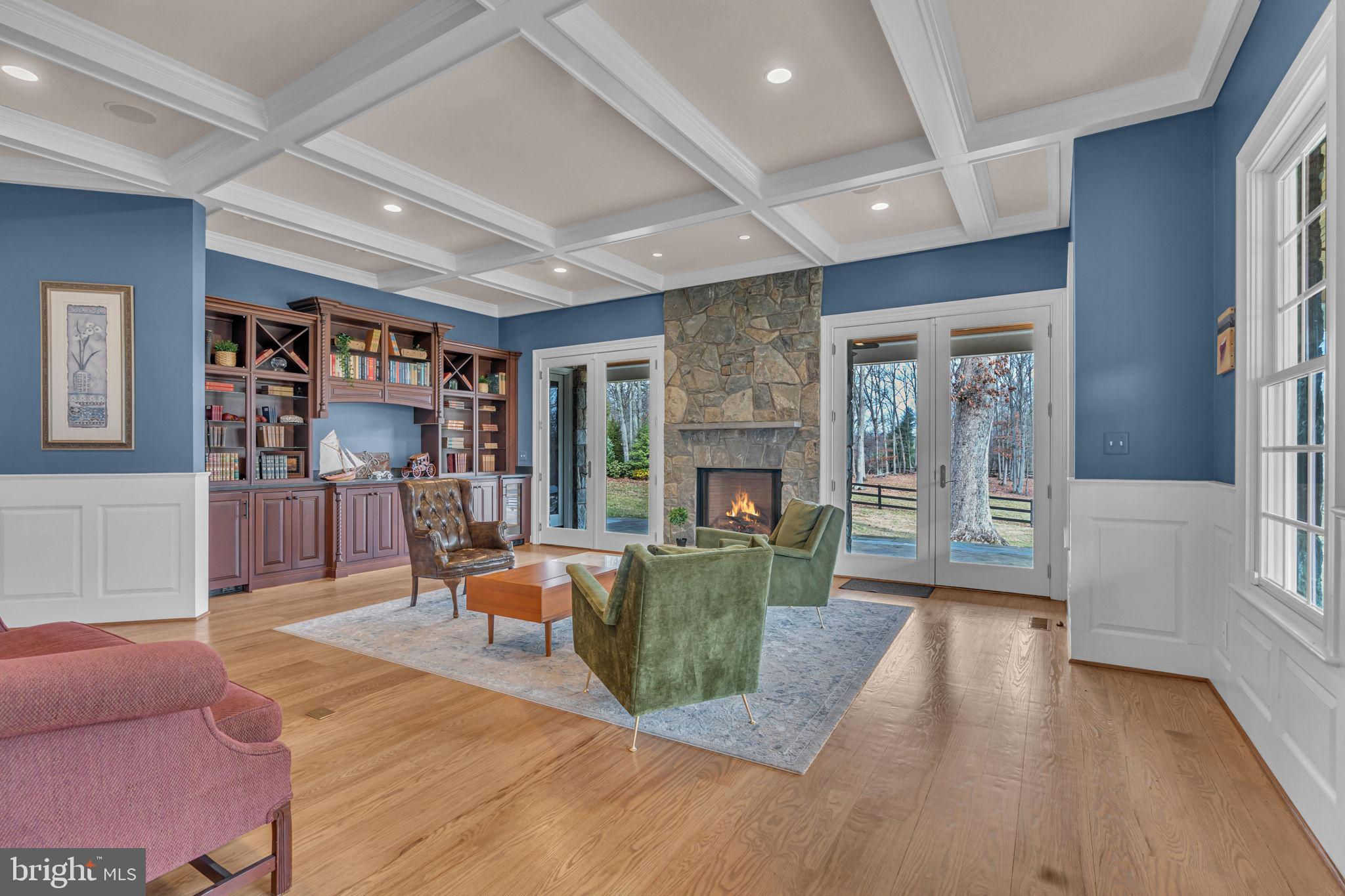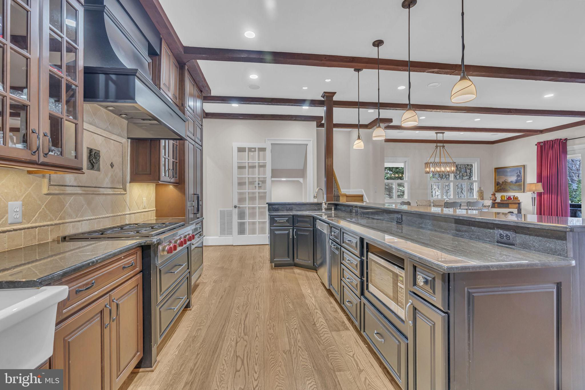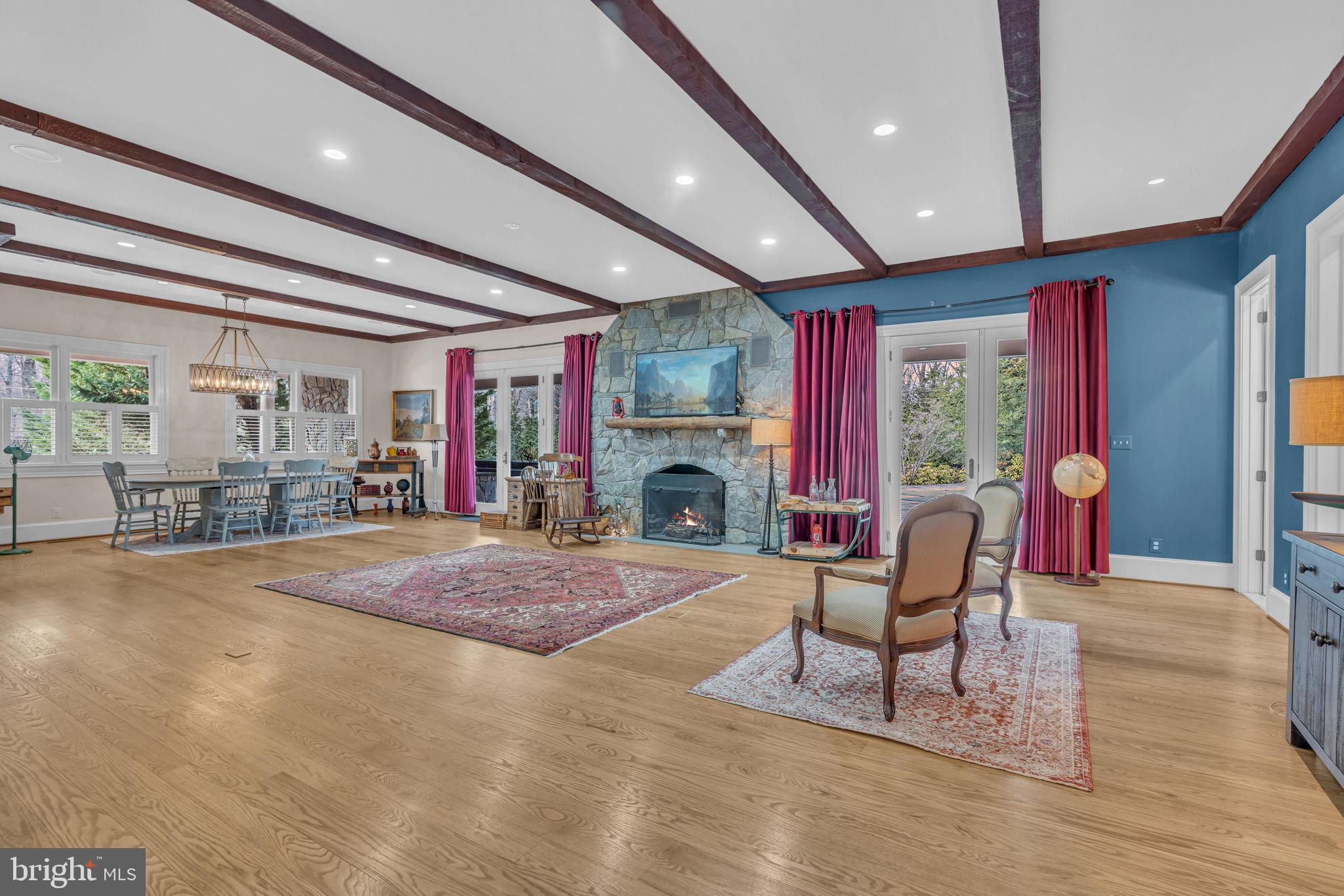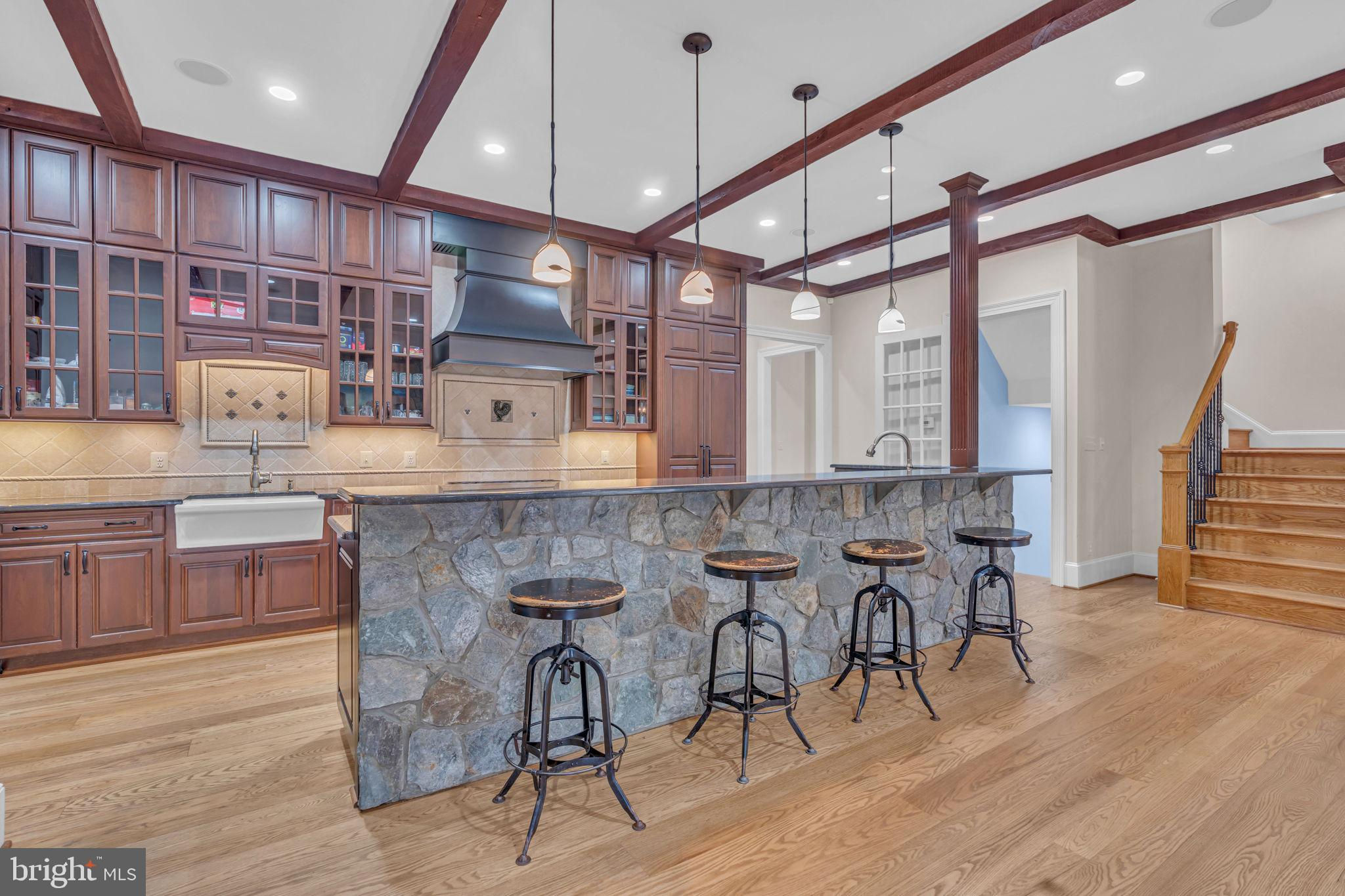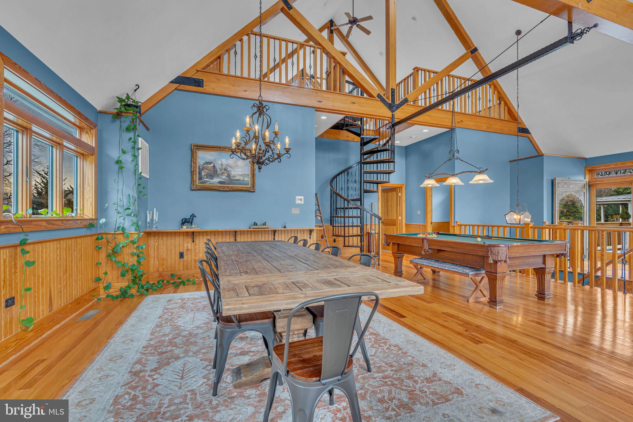 Welcome to 815 Blacks Hill Rd, a magnificent estate offering over 7,185 square feet of refined living space and 5.47 acres of land surrounded by breathtaking views. The property seamlessly connects to a nearby state-maintained roadway, ensuring easy access while maintaining a sense of serene seclusion. The home’s exterior boasts a spacious porch with an elegant tongue-and-groove ceiling that wraps around the residence, allowing for direct outdoor access from every primary-level room. Inside, you'll find broad plank hardwood flooring, soaring 10-foot ceilings, and a blend of decorative exposed beams and intricate coffered ceilings that add charm and sophistication. At the heart of the home lies a gourmet kitchen, perfect for both intimate meals and grand entertaining. The kitchen features an expansive island with bar seating, ideal for gathering and culinary creativity. The luxurious owner’s suite is a private retreat, offering dual bathrooms, two expansive walk-in closets, and a private balcony with tranquil views of the surrounding landscape. Outdoors, the amenities continue with a stunning pool area, an outdoor kitchen with ample bar seating, and a stone fireplace for cozy evenings under the stars. The expansive lawn provides plenty of space for outdoor activities, making it perfect for gatherings. For equestrian enthusiasts, the property includes a large barn that accommodates horses. The upper floor of the barn is equally impressive, featuring luxurious living quarters with a great room framed by panoramic windows, high cathedral ceilings with exposed beams, a kitchen with a large island, two bedrooms, 1.5 bathrooms, and a loft bunk room. The barn also includes several stalls, making it a perfect combination of functional and luxurious living. This property is a rare opportunity to own a piece of paradise in Great Falls, VA.