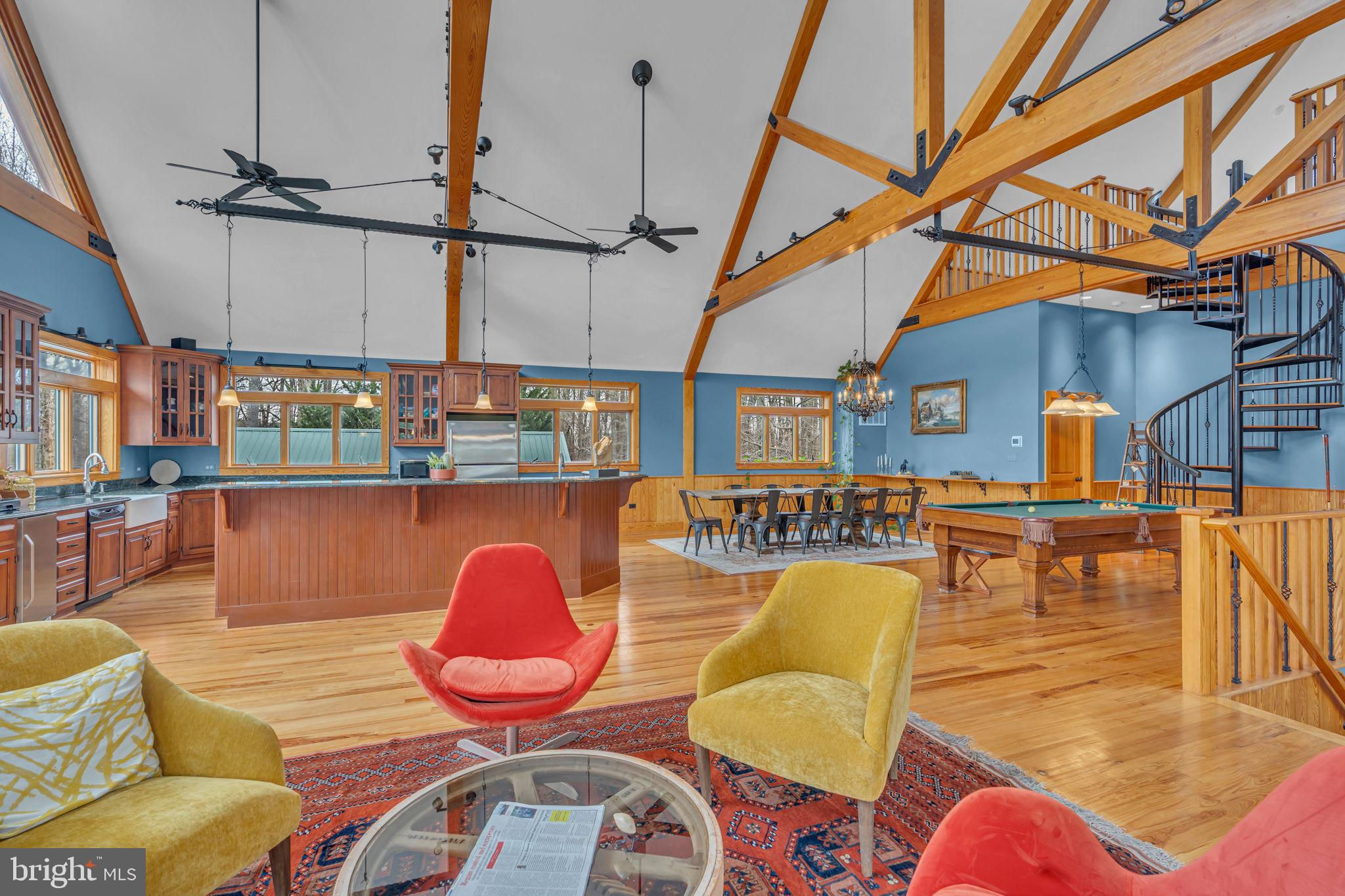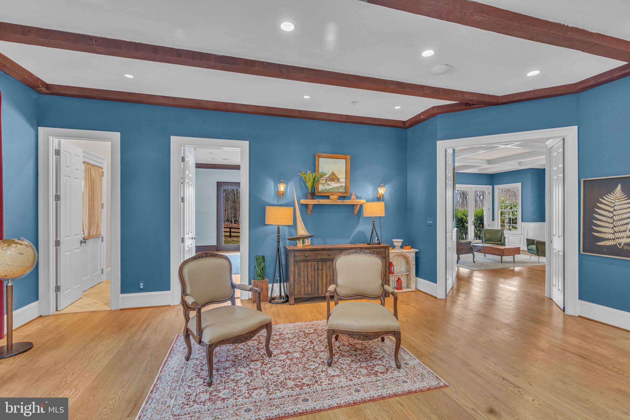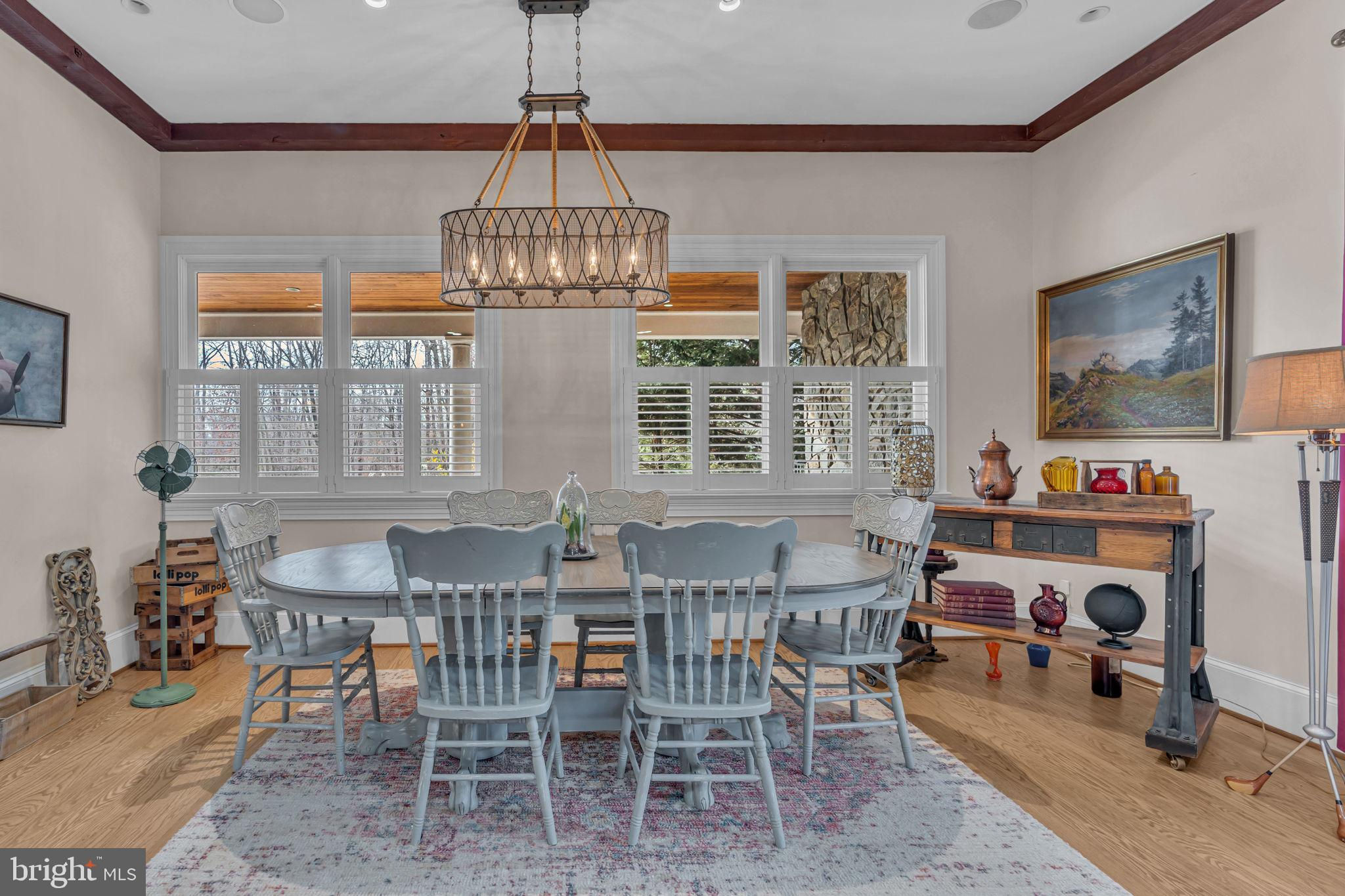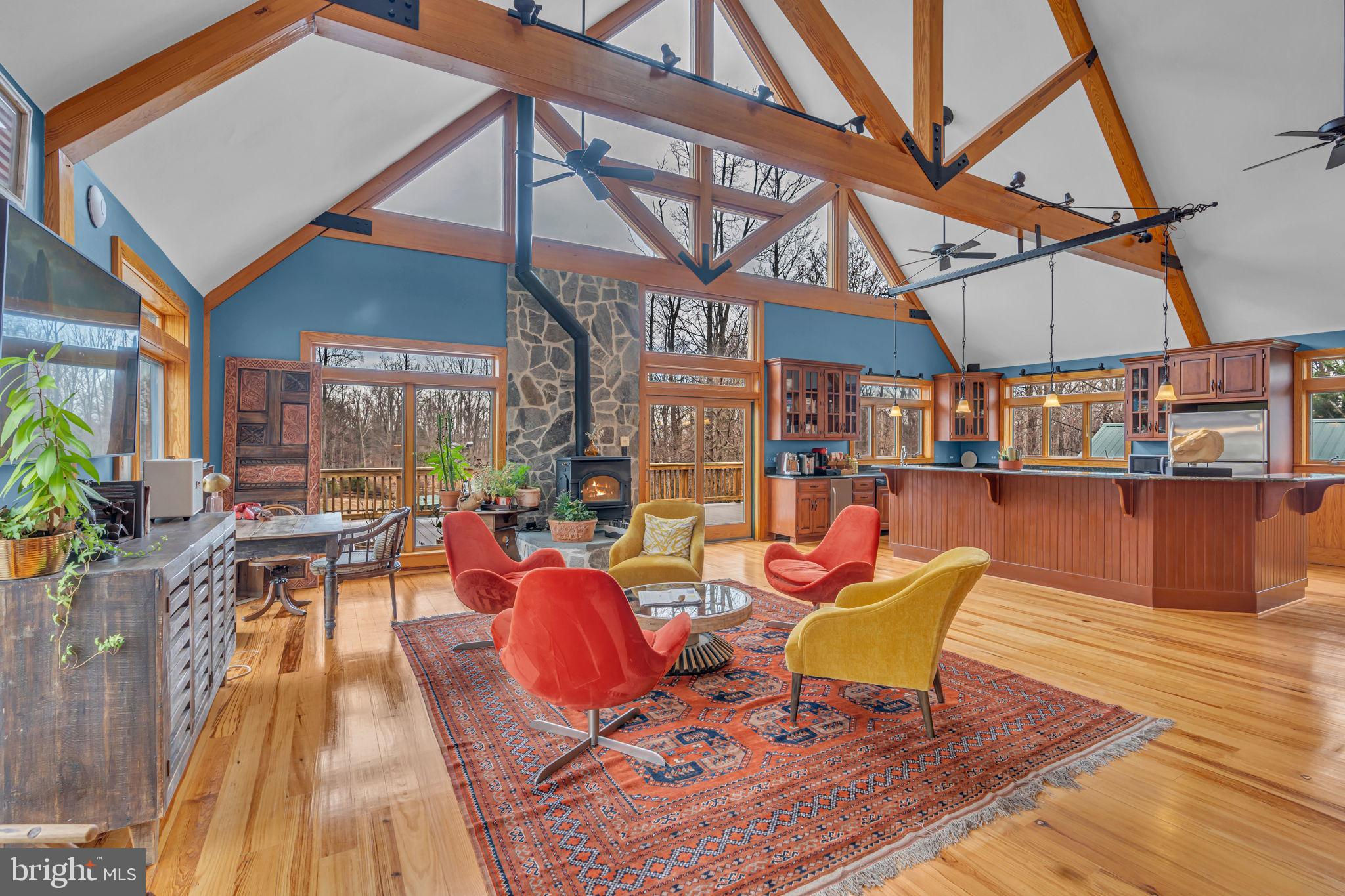 Welcome to 815 Blacks Hill Rd, a magnificent estate offering over 7,185 square feet of refined living space and 5.47 acres of land surrounded by breathtaking views. The property seamlessly connects to a nearby state-maintained roadway, ensuring easy access while maintaining a sense of serene seclusion. The home’s exterior boasts a spacious porch with an elegant tongue-and-groove ceiling that wraps around the residence, allowing for direct outdoor access from every primary-level room. Inside, you'll find broad plank hardwood flooring, soaring 10-foot ceilings, and a blend of decorative exposed beams and intricate coffered ceilings that add charm and sophistication. At the heart of the home lies a gourmet kitchen, perfect for both intimate meals and grand entertaining. The kitchen features an expansive island with bar seating, ideal for gathering and culinary creativity. The luxurious owner’s suite is a private retreat, offering dual bathrooms, two expansive walk-in closets, and a private balcony with tranquil views of the surrounding landscape. Outdoors, the amenities continue with a stunning pool area, an outdoor kitchen with ample bar seating, and a stone fireplace for cozy evenings under the stars. The expansive lawn provides plenty of space for outdoor activities, making it perfect for gatherings. For equestrian enthusiasts, the property includes a large barn that accommodates horses. The upper floor of the barn is equally impressive, featuring luxurious living quarters with a great room framed by panoramic windows, high cathedral ceilings with exposed beams, a kitchen with a large island, two bedrooms, 1.5 bathrooms, and a loft bunk room. The barn also includes several stalls, making it a perfect combination of functional and luxurious living. This property is a rare opportunity to own a piece of paradise in Great Falls, VA.