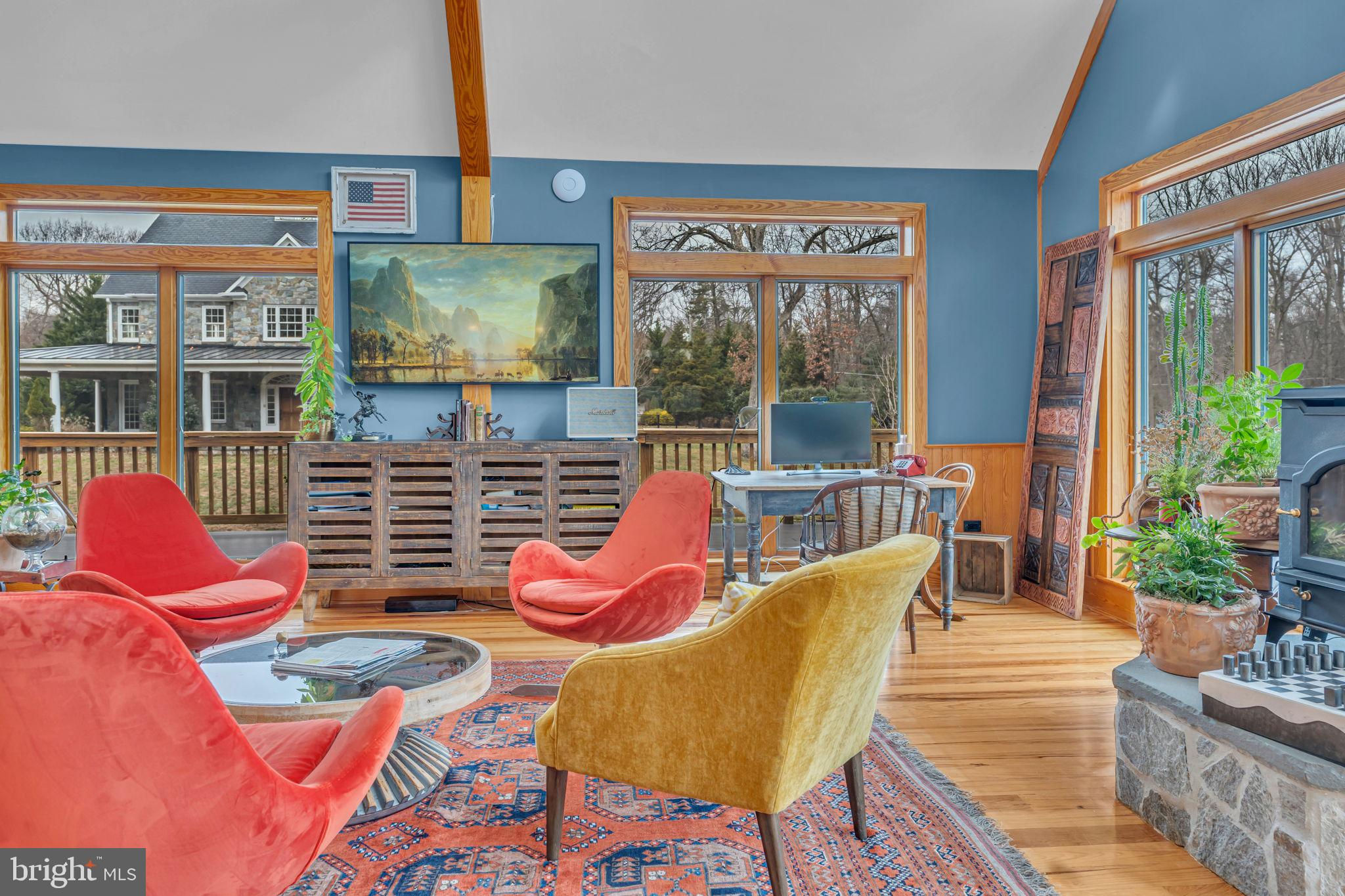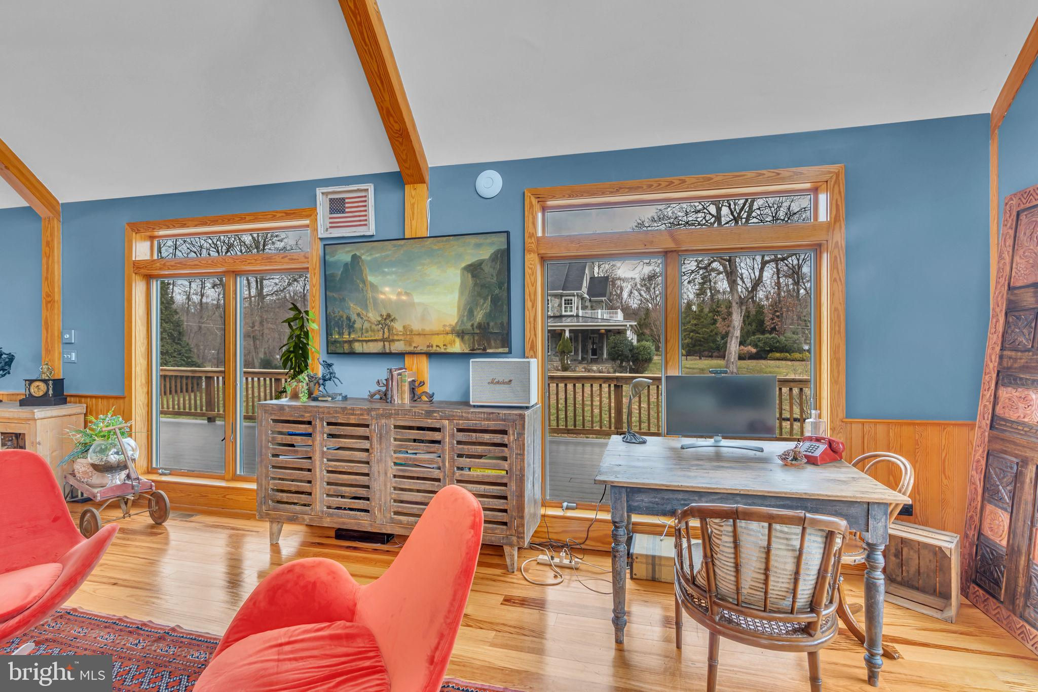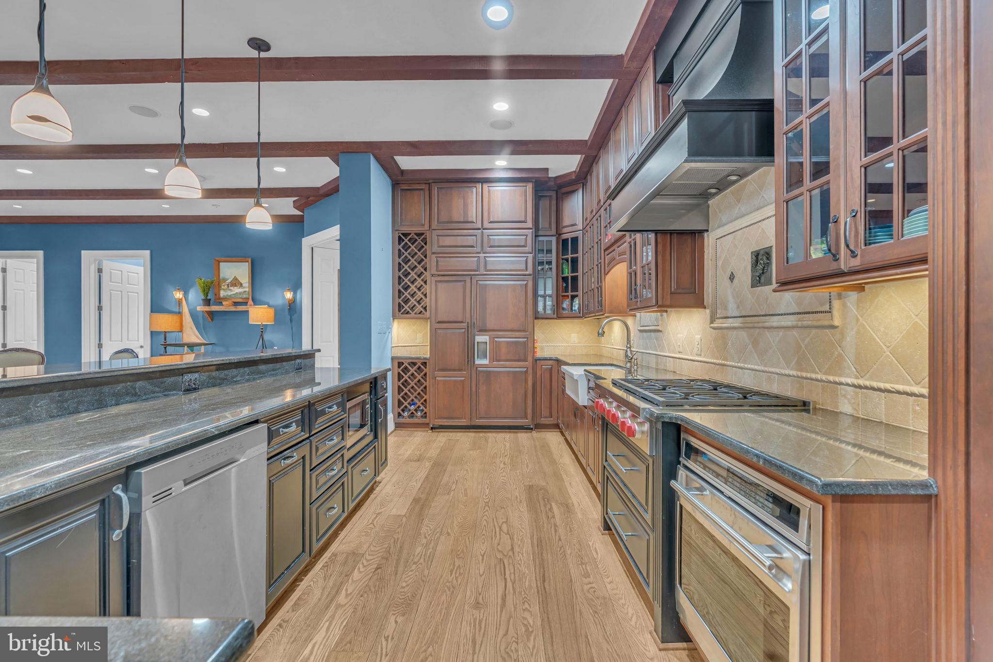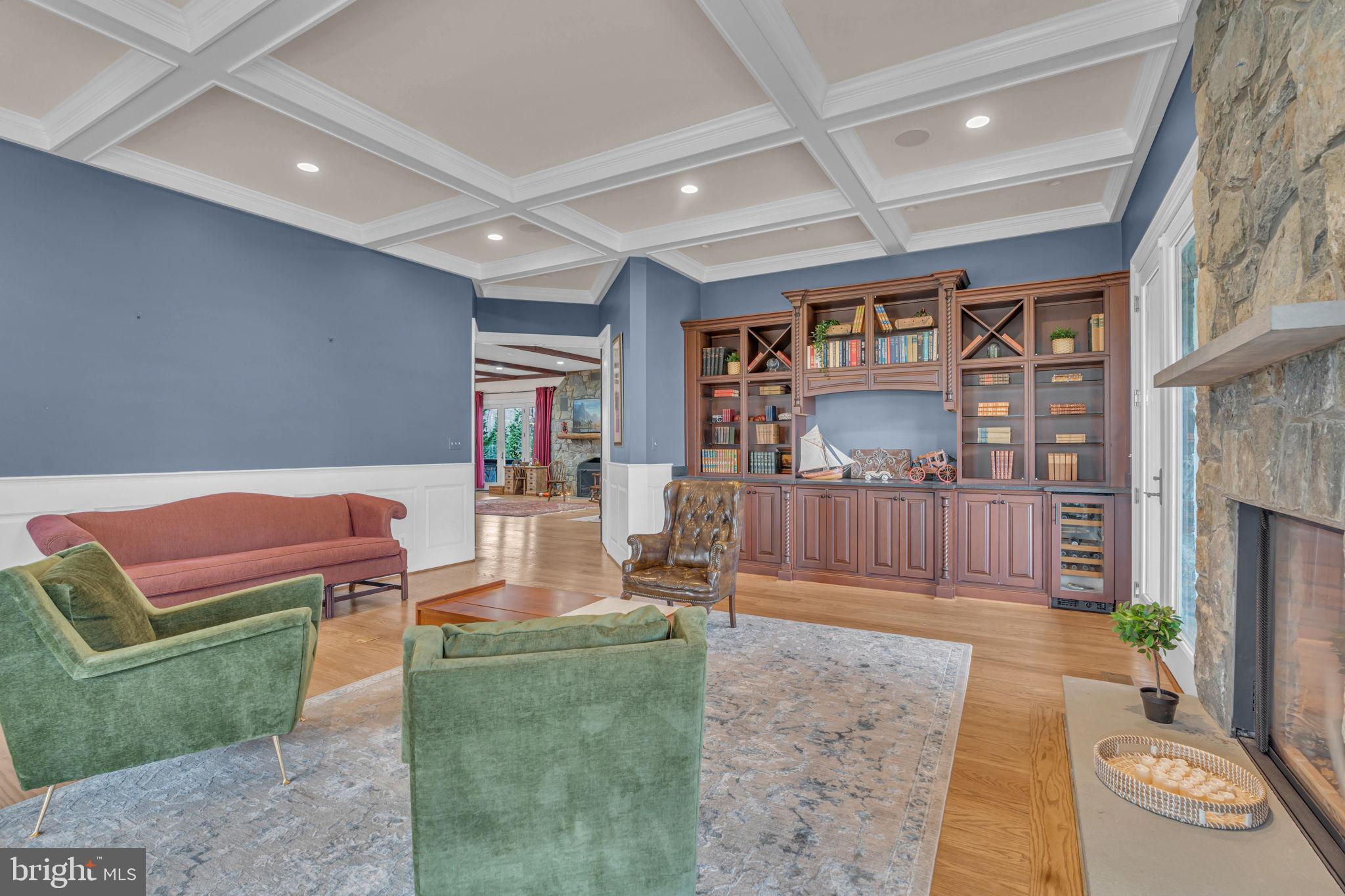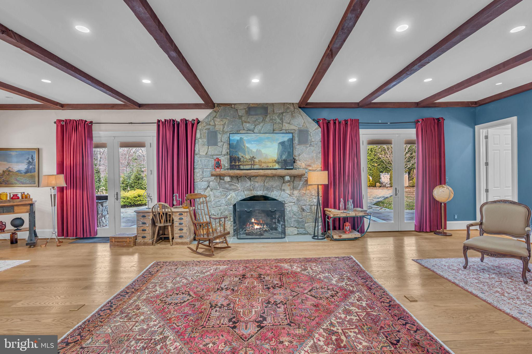 Welcome to 815 Blacks Hill Rd, a magnificent estate offering over 7,185 square feet of refined living space and 5.47 acres of land surrounded by breathtaking views. The property seamlessly connects to a nearby state-maintained roadway, ensuring easy access while maintaining a sense of serene seclusion. The home’s exterior boasts a spacious porch with an elegant tongue-and-groove ceiling that wraps around the residence, allowing for direct outdoor access from every primary-level room. Inside, you'll find broad plank hardwood flooring, soaring 10-foot ceilings, and a blend of decorative exposed beams and intricate coffered ceilings that add charm and sophistication. At the heart of the home lies a gourmet kitchen, perfect for both intimate meals and grand entertaining. The kitchen features an expansive island with bar seating, ideal for gathering and culinary creativity. The luxurious owner’s suite is a private retreat, offering dual bathrooms, two expansive walk-in closets, and a private balcony with tranquil views of the surrounding landscape. Outdoors, the amenities continue with a stunning pool area, an outdoor kitchen with ample bar seating, and a stone fireplace for cozy evenings under the stars. The expansive lawn provides plenty of space for outdoor activities, making it perfect for gatherings. For equestrian enthusiasts, the property includes a large barn that accommodates horses. The upper floor of the barn is equally impressive, featuring luxurious living quarters with a great room framed by panoramic windows, high cathedral ceilings with exposed beams, a kitchen with a large island, two bedrooms, 1.5 bathrooms, and a loft bunk room. The barn also includes several stalls, making it a perfect combination of functional and luxurious living. This property is a rare opportunity to own a piece of paradise in Great Falls, VA.
