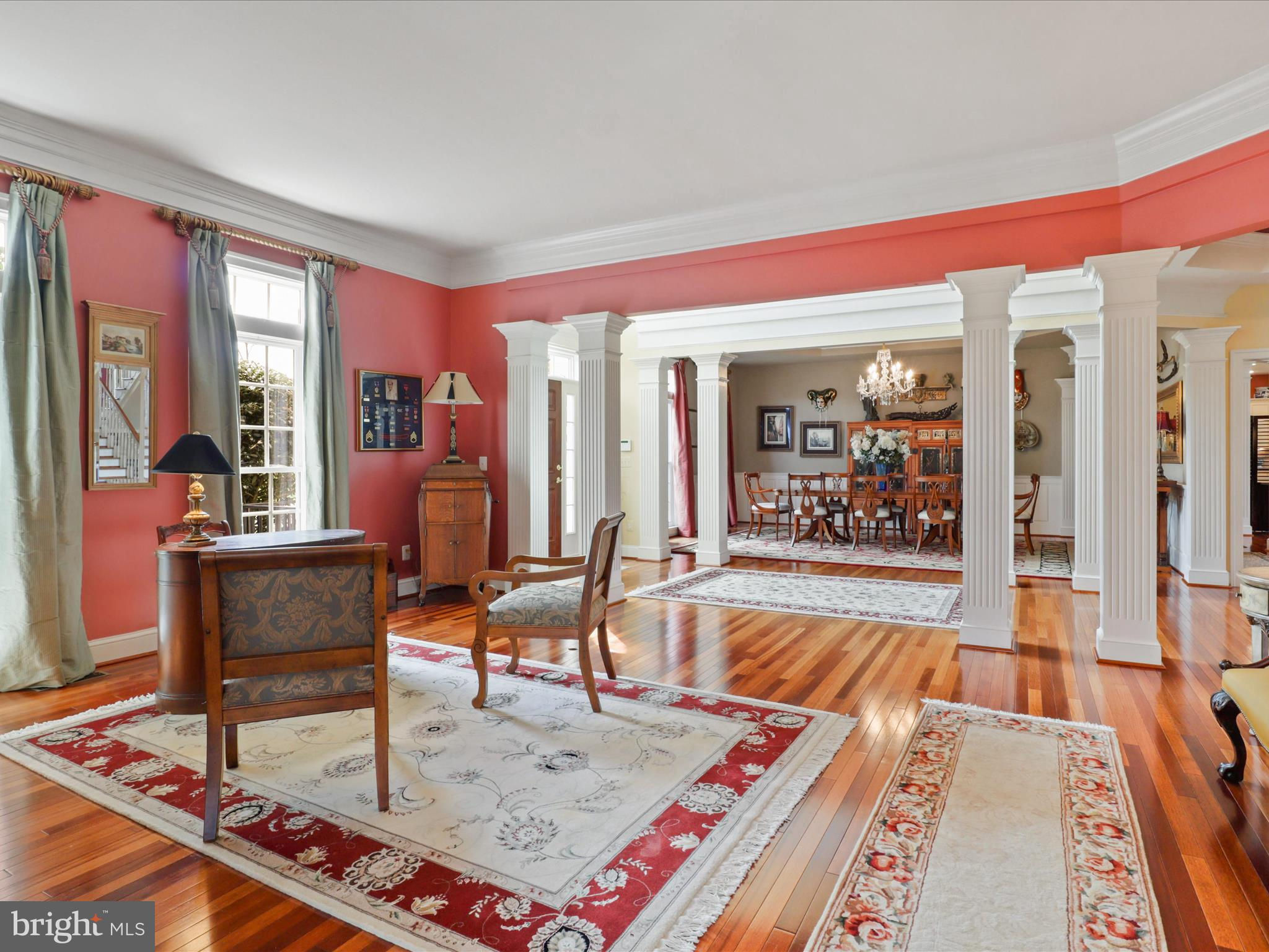 Photos DO NOT do this house justice. You must see this in person to understand this is UNLIKE any of the other homes on this street. This semi custom, beautiful 10,000 SF home is situated on over an acre in one of Great Falls highly sought after neighborhoods with close proximity to the Village. It is the ONLY and largest model back here and offers a lot of privacy from neighbors with the extensive vegetation. This home is so much more GRAND once inside and is drenched with natural light on sunny days. This well maintained, old world designed palatial estate has 11 feet ceilings on all 3 levels, 7 bedrooms, 6 and a half bathrooms which includes MAIN level living, an ensuite downstairs and a true primary bedroom retreat upstairs. The details of this home are breathtaking. From the walnut tray 22 foot ceiling with professional artwork by a world renowned artist to the dual staircase in the entry to the outdoor fireplace on the spacious patio, you won’t find anything remotely like this on the market! In the kitchen you will find custom cabinetry, newer appliances, a double sided gas fireplace, granite and a sitting room that overlooks the plush garden patio which could be used for another dining area as well. There is a 3 car garage and wide driveway for plenty of parking. There is a wrap around fence with enough land to put in a pool and/or a guest house if desired. This home feeds into the Langley School Pyramid with the bus stop out front. A home you must see in person to truly appreciate and admire. Updates include 3 new HVAC systems, a new roof and 100k new hardwood floor. There are many European elements to this home from around this world. The owners have added approximately 150k of landscaping that continually blooms from the spring through the fall making it a one of a kind retreat away from the hustle and bustle of the area. You won’t want to miss out on this opportunity to own in Great Falls in an established neighborhood where you can walk out your front door to take a stroll or ride your bike.