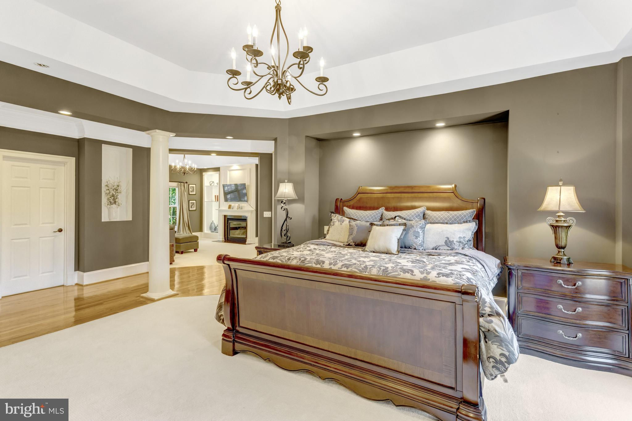 Magnificent French country estate nestled in the serene surroundings of Great Falls! Situated on nearly 2 acres of private land, this remarkable property boasts meticulously landscaped grounds, offering a harmonious blend of wooded tranquility and picturesque vistas. With over 8000 sq ft of living space, the home features 5 bedrooms, 4 full bathrooms, and 3 powder rooms. The main level is an entertainer's dream, featuring a double-sided gas fireplace, a chef’s kitchen equipped with top-of-the-line appliances, gleaming hardwood floors, and a wet bar. Thoughtfully designed for both formal entertaining and relaxed gatherings, the floor plan exudes sophistication while maintaining a welcoming ambiance. The grand owner's suite is a true retreat, offering a large sitting area, two spacious walk-in closets, and a recently updated bathroom adorned with travertine tile throughout. The expansive lower level is perfect for entertainment and relaxation, featuring a fireplace, a space for a game room and TV area, a wet bar, a wine room with storage for 750 bottles, an exercise room, and an additional bedroom. Outside, the large patio provides ample room for a sitting area, grilling, or alfresco dining, making it an ideal spot for outdoor gatherings.
