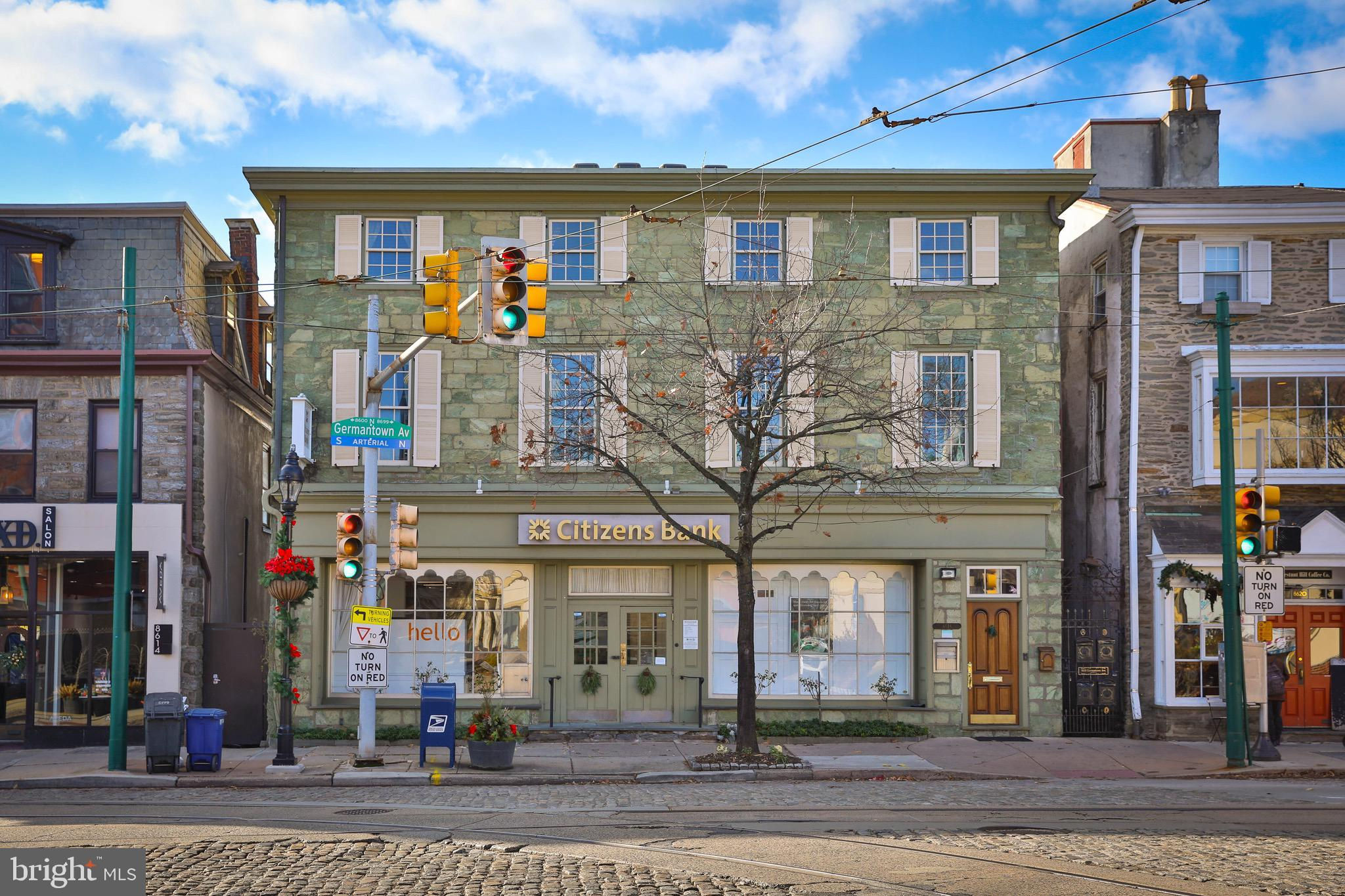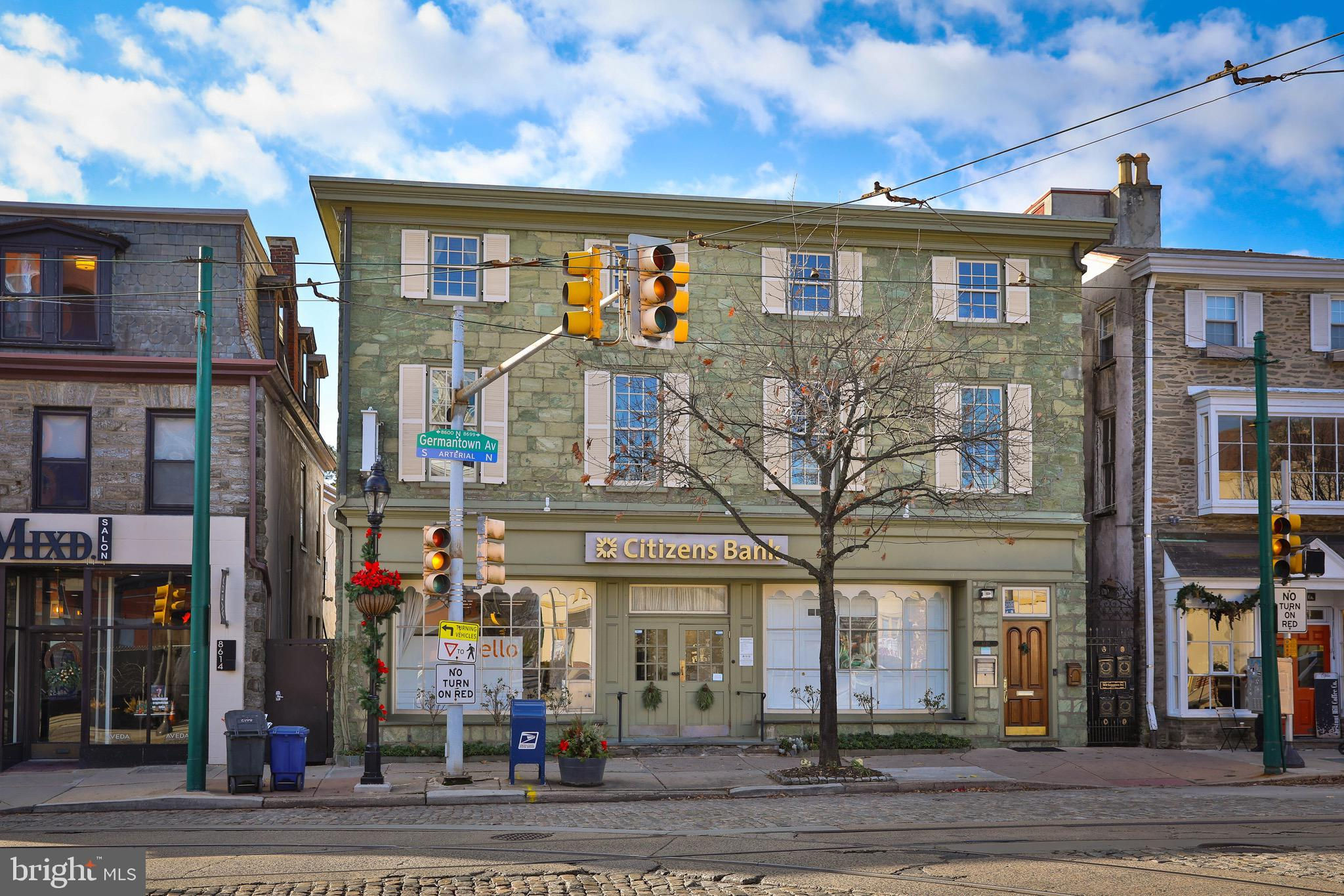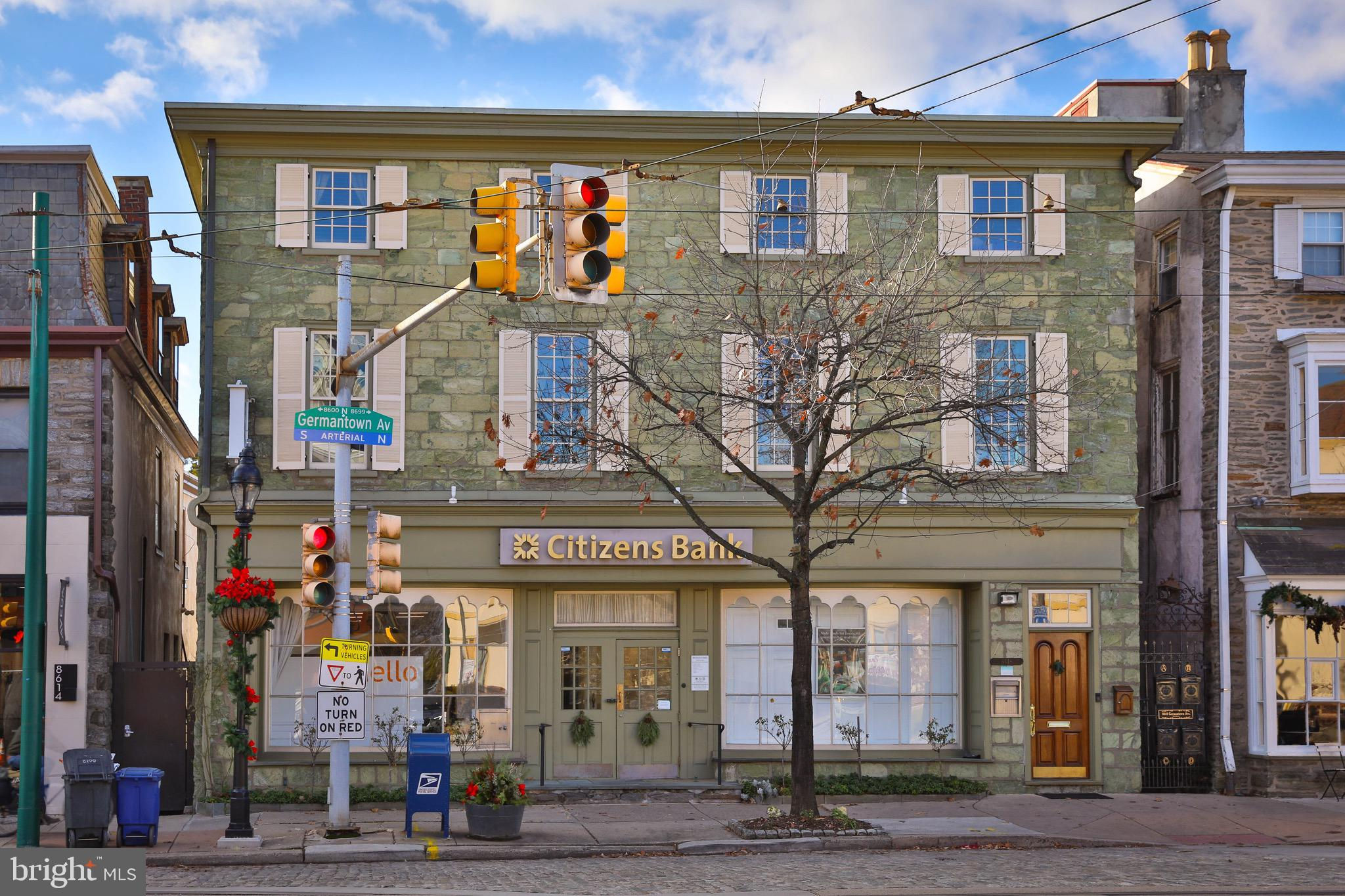 This unique opportunity isn't offered often. In fact, it has only had 2 owners in 70 years since known as "The Huston Dry Goods Emporium." This is your chance to own a piece of Chestnut Hill History in THE premier "Top of the Hill" location! Positioned prominently in the Chestnut Hill Business District at the intersection of Germantown Avenue & Bethlehem Pike gives it the highest exposure. This unique, multi use building of over 9,300 Sq Ft, (circa 1860), offers 4 apartments (3-2 BR, 1 -1 BR) a large store front retail space, and two generous sized offices (+/- 1182 SqFt ea) with private entrances in the rear annex building. (added 1922) According to historical records, its' green serpentine stone facade with stone sills and wood cornices, is shared by only one other building on Philadelphia. Adding to its' convenient accessibility, it sets atop the Chestnut Hill West Regional Rail line leading directly to Center City and 30th street. Chestnut Hill is rich with a diverse offering of restaurants, local businesses, and homes ranging from cottages to mansions! Chestnut Hill was featured as one of the charming residential neighborhoods on Good Morning America's "Main Street USA" series! All units are currently leased with staggered expirations. Since current owner has historically kept lease rates low, the income is well below market value and even well below a conservative income projection! The location is vibrant with a blend of modern amenities and historic gems, with added appeal for its' walkability to the beautifully expanding Woodmere Art Museum, The Morris Arboretum & Gardens, the splendid Wissahickon Valley Park, Chestnut Hill Hospital and Chestnut Hill College. This commercial corridor location allows open ended possibilities for significant increased profitability. See attached statement sheet with lease and utility information. As leases expire, this will allow a variety of alternate options for each unit. It is your time to approach this creatively and plant roots in this growing community. Showings must be set through listing agent and bank can be shown only during banking hours. Dimensions and taxes are based on city records and may not be accurate. These should be verified by buyer.