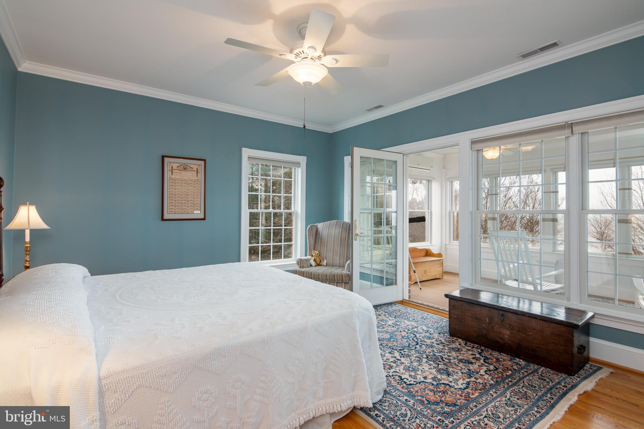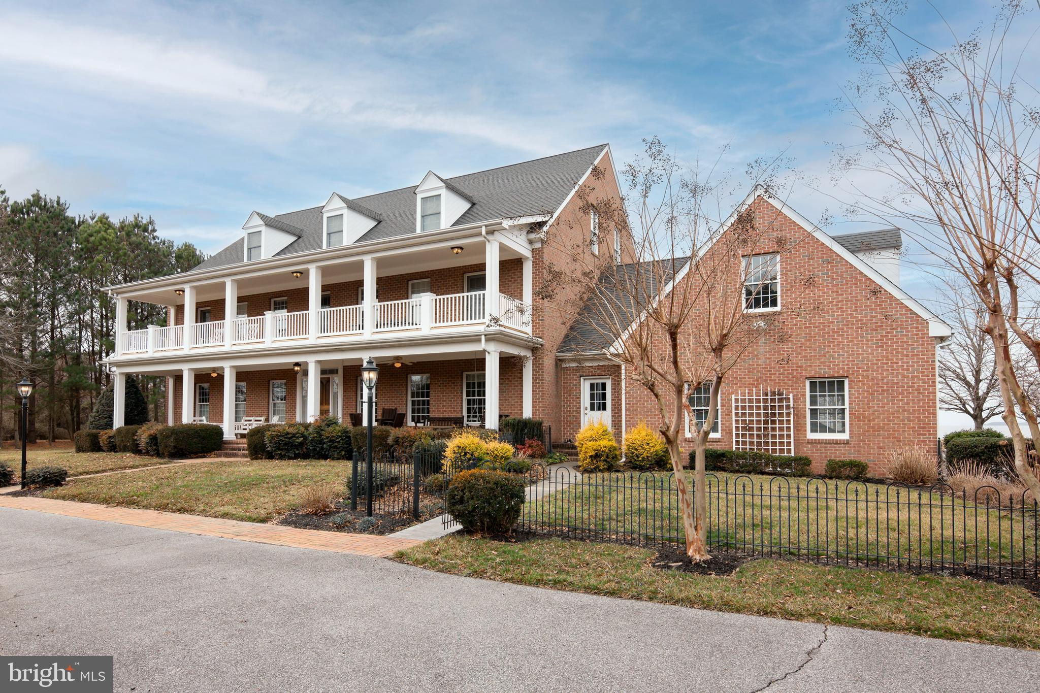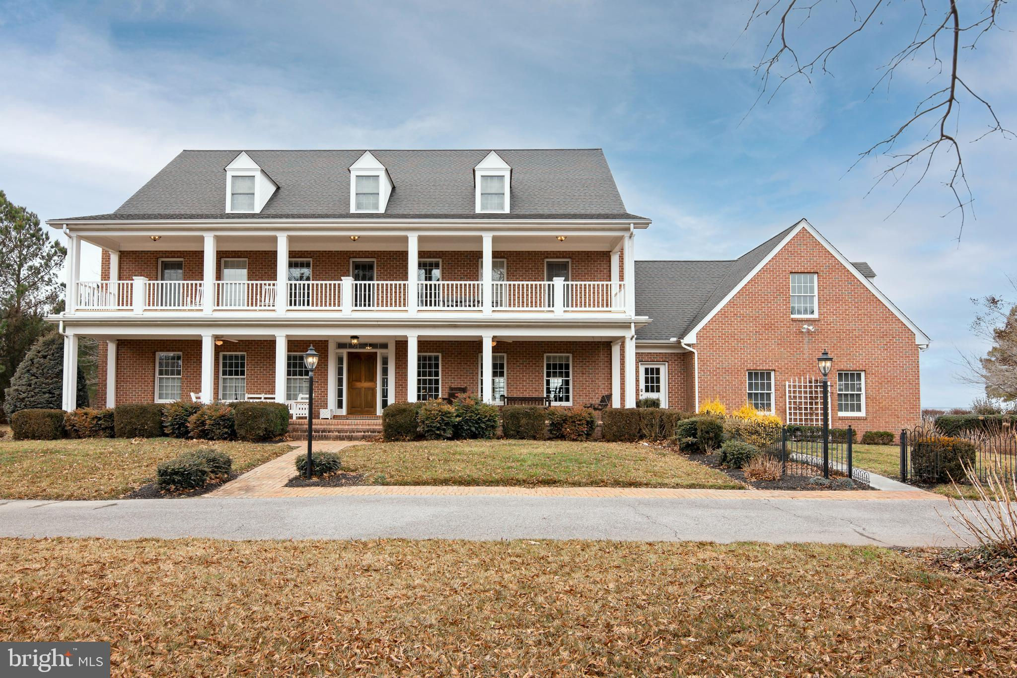 A magnificent, stately, Daffin-built, Chesapeake Bay Brick Estate exudes excellent design and craftsmanship in this 5 bedroom (suites) , 5.5 bath 6,500 sq. ft brick home that majestically sits on 21.7 acres facing the Chesapeake Bay. Excellent construction quality and design are evident throughout this magnificent estate. Geothermal system on 1st and 2nd floors; Heat Pump for the 3rd floor; Ductless units for 1st floor porch and 2nd floor porch., 3 hot water heaters. Double porches allow you to embrace arguably the most spectacular sunsets on the Eastern Shore. The front of the property is abundant with trees that offer ultimate privacy and all but 4 acres are taxed under agricultural use, Conveniently located between St. Michaels and Tilghman Island, this Chesapeake Bay oasis will far surpass your expectations. No For Sale sign on property but the property’s name ‘Baycup’ is on a small sign at the entrance.