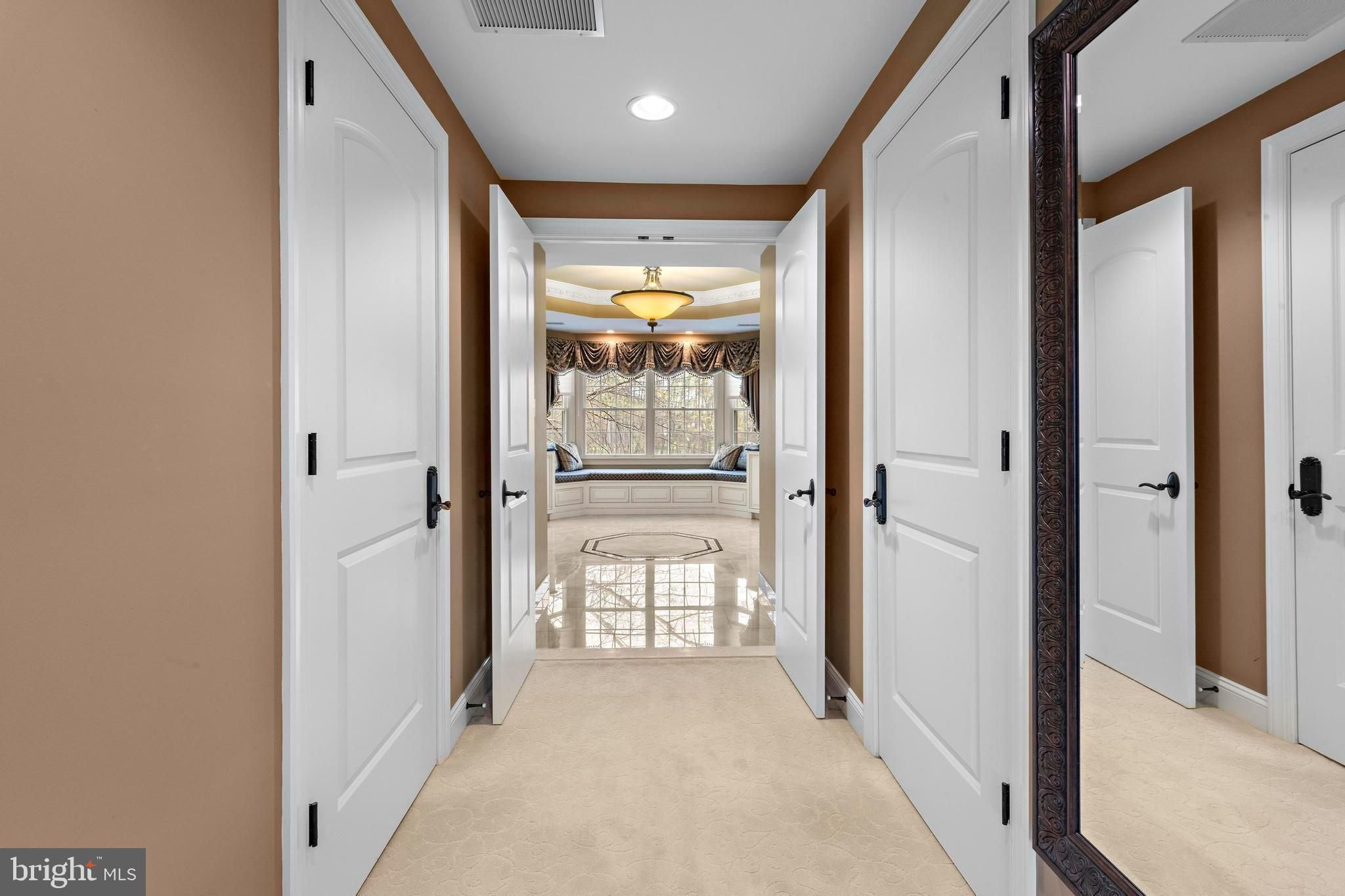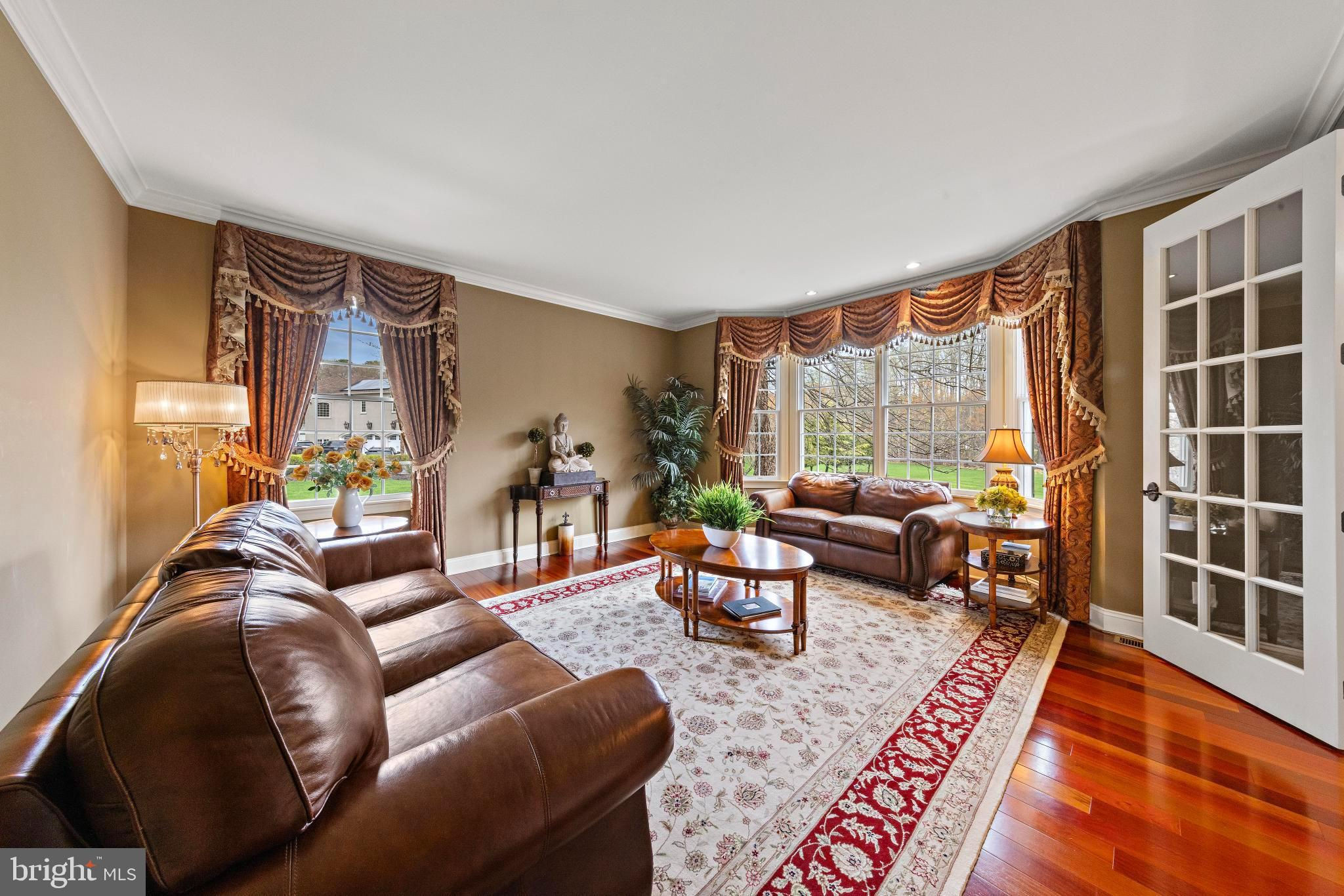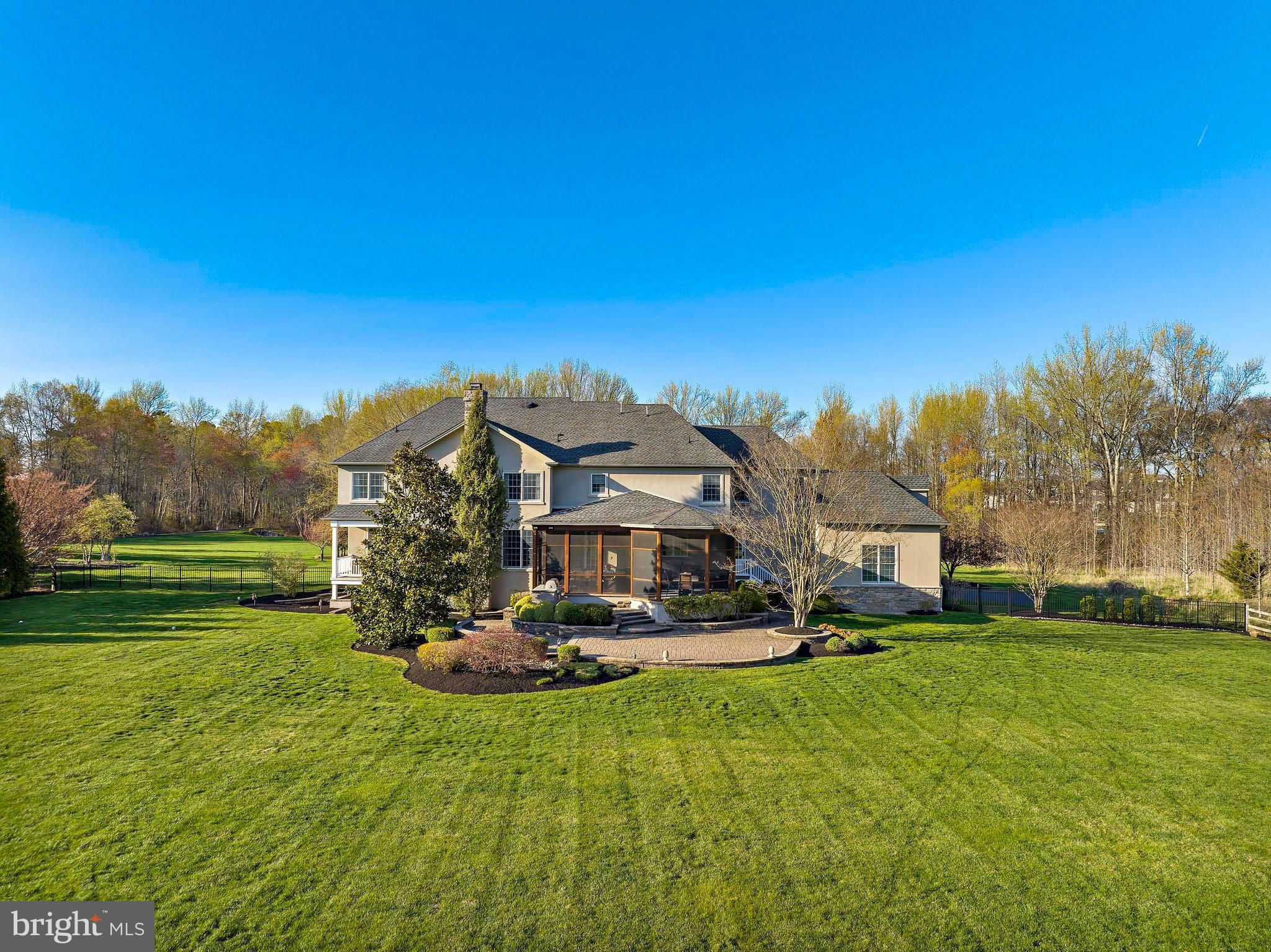 Tucked away on six private acres of manicured lawns, towering mature trees, and lush, thoughtfully designed landscaping, 9 Cloverdale Court offers a rare blend of privacy, sophisticated living, and extraordinary craftsmanship. Built by the highly regarded F. P. Francks, a master builder celebrated for his meticulous attention to detail, this fully customized estate is part of an exclusive, seven-home enclave in one of Lumberton’s most prestigious and private settings. From the moment you enter, the commitment to quality is unmistakable. Gleaming Brazilian cherry hardwood floors flow seamlessly throughout the expansive interior, creating a rich warmth that defines every space. Custom, hand-crafted Amish built-ins enhance the guest bedroom, the private office, and the inviting family room, offering timeless elegance alongside modern functionality. At the heart of the home, a breathtaking custom Amish kitchen anchors the living space — designed with both beauty and practicality in mind. Equipped with top-tier appliances including a Thermador gas range, Thermador double ovens, a Bosch dishwasher, a Liebherr refrigerator, and a built-in wine cooler, this kitchen is a true culinary masterpiece, ideal for casual family meals as well as grand-scale entertaining. This residence is engineered for effortless living. Advanced technology seamlessly integrates lighting, temperature control, and a full-home surround sound system, all easily managed from an intuitive app. Whether you're in the family room, kitchen, elegant dining room, primary suite, finished basement, or even enjoying the outdoor patio, high-quality sound and personalized comfort are always at your fingertips. Every comfort has been carefully considered and expertly executed. Four independently zoned HVAC systems provide precise climate control throughout the home. The luxurious master suite features a spa-quality bathroom, complete with a rejuvenating steam shower, while guests are treated to a whirlpool bath designed for maximum relaxation. Every bedroom offers generous walk-in closets, providing abundant storage without sacrificing style. Outdoor living spaces are equally impressive. A charming cedar wood screened porch invites you to enjoy the beauty of the seasons, while the custom integrated Weber grill makes al fresco dining effortless. The backyard is enhanced by a tranquil water feature, offering the perfect soundtrack for your private retreat. Extensive professional landscaping frames the home beautifully, maintained by a full irrigation system with advanced drip technology to nourish trees, plants, and lawns. Discreet, elegant accent lighting highlights both the stunning architecture and the lush surroundings, creating a breathtaking ambiance from day to night. Security and peace of mind are paramount at 9 Cloverdale Court, with front and rear app-connected cameras providing comprehensive, real-time surveillance. More than just a home, this is a private sanctuary — a place where timeless craftsmanship, state-of-the-art technology, and natural beauty come together to create an unparalleled living experience.