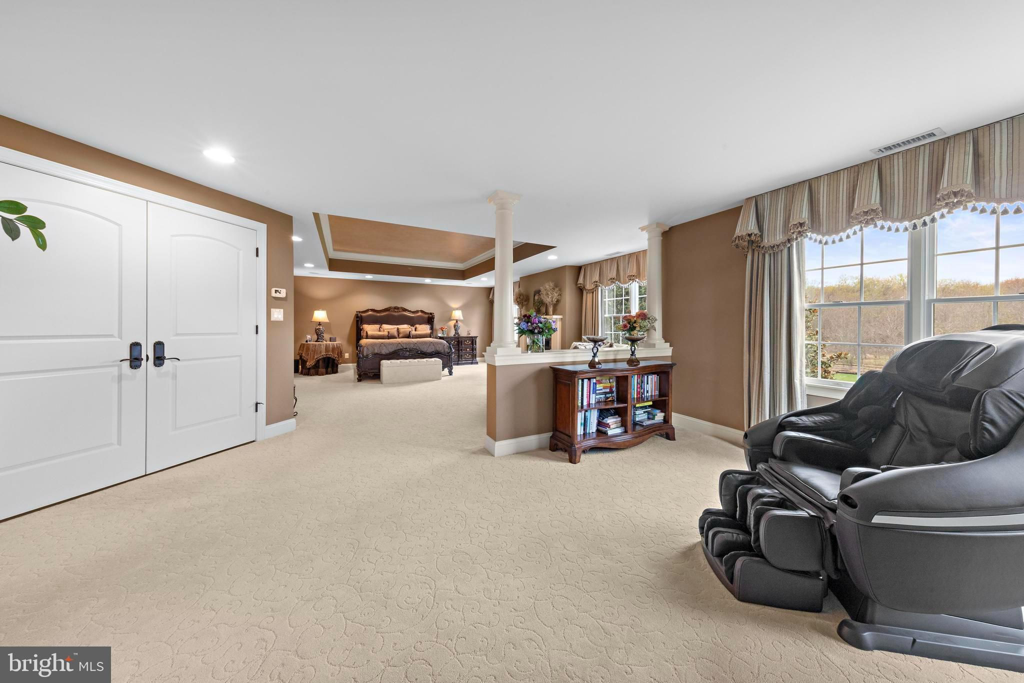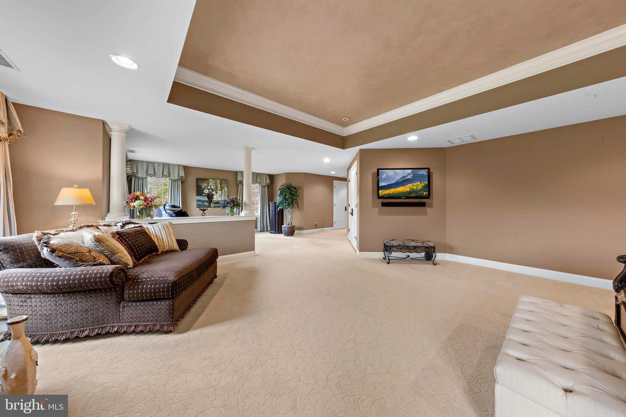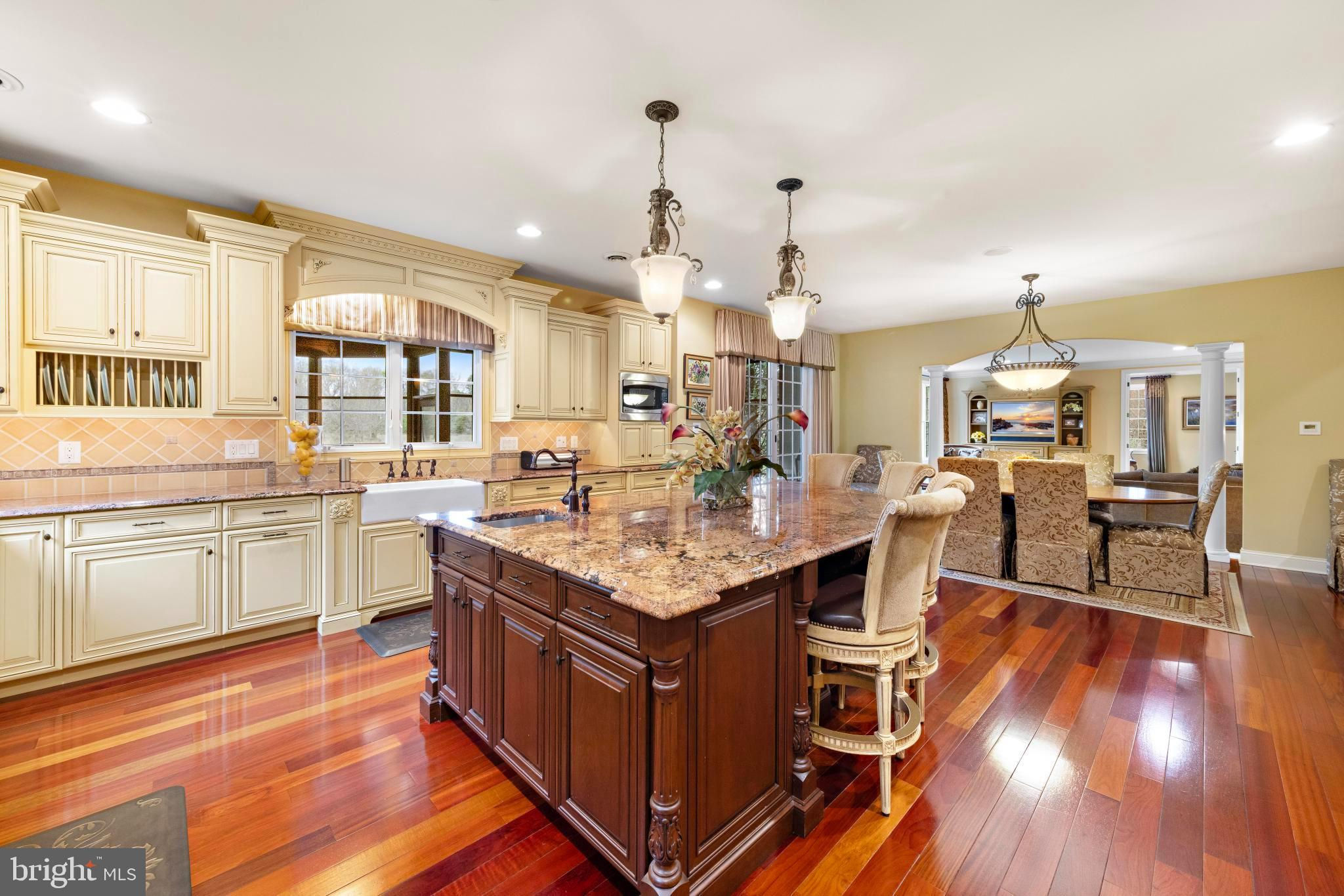 Tucked away on six private acres of manicured lawns, towering mature trees, and lush, thoughtfully designed landscaping, 9 Cloverdale Court offers a rare blend of privacy, sophisticated living, and extraordinary craftsmanship. Built by the highly regarded F. P. Francks, a master builder celebrated for his meticulous attention to detail, this fully customized estate is part of an exclusive, seven-home enclave in one of Lumberton’s most prestigious and private settings. From the moment you enter, the commitment to quality is unmistakable. Gleaming Brazilian cherry hardwood floors flow seamlessly throughout the expansive interior, creating a rich warmth that defines every space. Custom, hand-crafted Amish built-ins enhance the guest bedroom, the private office, and the inviting family room, offering timeless elegance alongside modern functionality. At the heart of the home, a breathtaking custom Amish kitchen anchors the living space — designed with both beauty and practicality in mind. Equipped with top-tier appliances including a Thermador gas range, Thermador double ovens, a Bosch dishwasher, a Liebherr refrigerator, and a built-in wine cooler, this kitchen is a true culinary masterpiece, ideal for casual family meals as well as grand-scale entertaining. This residence is engineered for effortless living. Advanced technology seamlessly integrates lighting, temperature control, and a full-home surround sound system, all easily managed from an intuitive app. Whether you're in the family room, kitchen, elegant dining room, primary suite, finished basement, or even enjoying the outdoor patio, high-quality sound and personalized comfort are always at your fingertips. Every comfort has been carefully considered and expertly executed. Four independently zoned HVAC systems provide precise climate control throughout the home. The luxurious master suite features a spa-quality bathroom, complete with a rejuvenating steam shower, while guests are treated to a whirlpool bath designed for maximum relaxation. Every bedroom offers generous walk-in closets, providing abundant storage without sacrificing style. Outdoor living spaces are equally impressive. A charming cedar wood screened porch invites you to enjoy the beauty of the seasons, while the custom integrated Weber grill makes al fresco dining effortless. The backyard is enhanced by a tranquil water feature, offering the perfect soundtrack for your private retreat. Extensive professional landscaping frames the home beautifully, maintained by a full irrigation system with advanced drip technology to nourish trees, plants, and lawns. Discreet, elegant accent lighting highlights both the stunning architecture and the lush surroundings, creating a breathtaking ambiance from day to night. Security and peace of mind are paramount at 9 Cloverdale Court, with front and rear app-connected cameras providing comprehensive, real-time surveillance. More than just a home, this is a private sanctuary — a place where timeless craftsmanship, state-of-the-art technology, and natural beauty come together to create an unparalleled living experience.