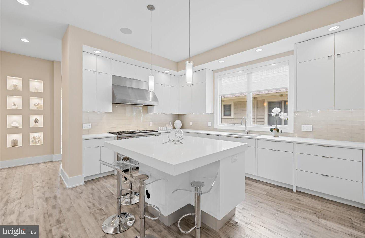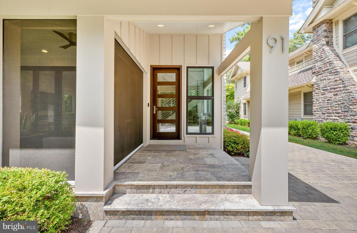 Step into this beautifully crafted, gently lived-in home that seamlessly blends modern luxury with thoughtful design. Ideally situated to overlook serene wooded parklands, this stunning residence features a welcoming front porch and sleek architectural lines that immediately impress! Inside, the open-concept floor plan offers an effortless flow between living, dining, and entertaining spaces. The expansive living area opens to a tranquil screened porch complete with retractable screens, while the sophisticated dining space includes a wine fridge, built-in storage, and a wet bar—perfect for hosting gatherings. The chef’s kitchen is a true showstopper, outfitted with commercial-grade appliances, including a Sub-Zero refrigerator, Wolf 6-burner range with double ovens, warming drawers, and a spacious prep island. The main level also features a luxurious primary suite with a spa-inspired en-suite bath and a custom walk-in closet. Just down the hall, a well-appointed laundry room offers ample storage and a convenient utility sink. Upstairs, guests will enjoy four generously sized bedrooms and three beautifully designed, spa-like bathrooms. A large sun deck provides the perfect spot for relaxing or sunbathing in privacy. The rear yard and outdoor space is an entertainer’s dream, complete with a built-in grilling station, pizza oven, and fully fenced yard for added privacy and charm. In addition to its elegant living spaces, the home also includes a full basement offering a second laundry area and abundant storage – perfect for keeping beach gear, seasonal décor, or anything else you need tucked away yet easily accessible. Located just blocks from the beach, public tennis courts, and the vibrant shops and restaurants of downtown Rehoboth, 91 Columbia offers the ideal combination of luxury, location, and lifestyle. If you’re searching for an exceptional beach home, your search ends here.
