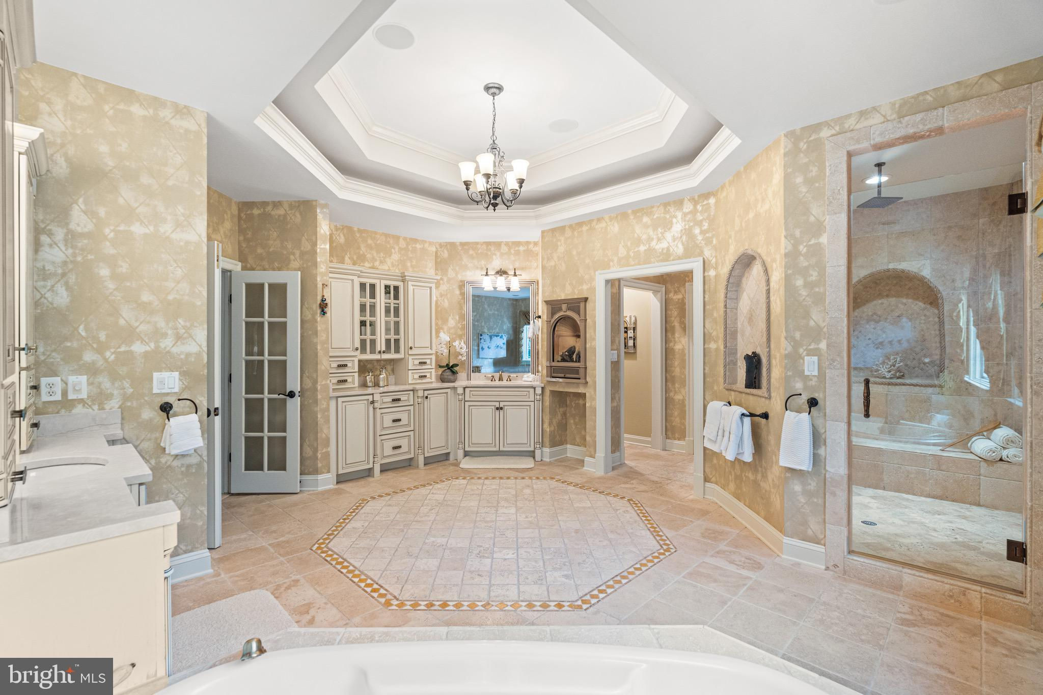Once The Keswick Model Home, this enchanting French country estate, spanning over 11,000 square feet, graces a hilltop 1.73-acre site just minutes from vibrant Tysons Corner and McLean. Nestled among mature landscaping and lush gardens, the main residence comes with a 2 story carriage house perfect for those who need additional privacy. The main residence offers five generous bedrooms, including a spacious primary suite with a separate sitting room and private terrace overlooking the verdant surroundings. The home is a haven of luxury, featuring multiple living and entertainment areas, two kitchens equipped with an AGA range, Subzero refrigerators, and Miele appliances. With six fireplaces, a complete spa, a Sonos sound system with 14 zones, a home generator, and a movie theater, every detail is designed for indulgence. A covered breezeway links the main house to the carriage house, which includes a full kitchen, two bedrooms, a full bath, and a powder room. The fully gated, circular motor court ensures secure parking and grants access to the adjoining four-car garage. Additional parking is available along Towlson Road. In the private garden, an expansive stone terrace, framed by lush landscaping, features an outdoor fireplace. Nearby, a serene fountain and soothing waterfalls add to the tranquil ambiance. Situated within the Langley/Cooper school pyramid and just minutes to McLean and Tysons Corner, this estate is a rare gem in one of the region’s most coveted locations. No HOA restrictions. Land survey and pool plans available.