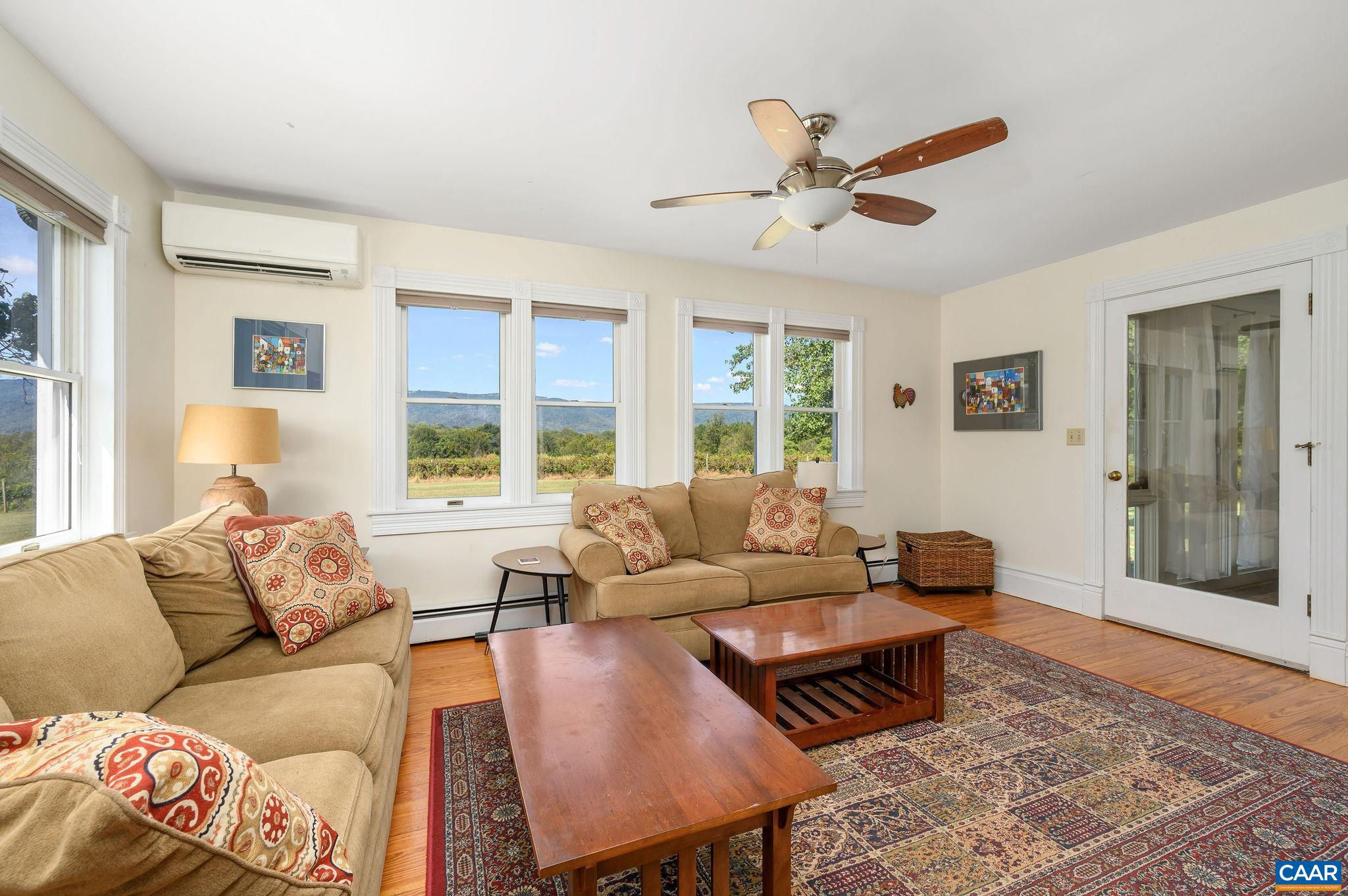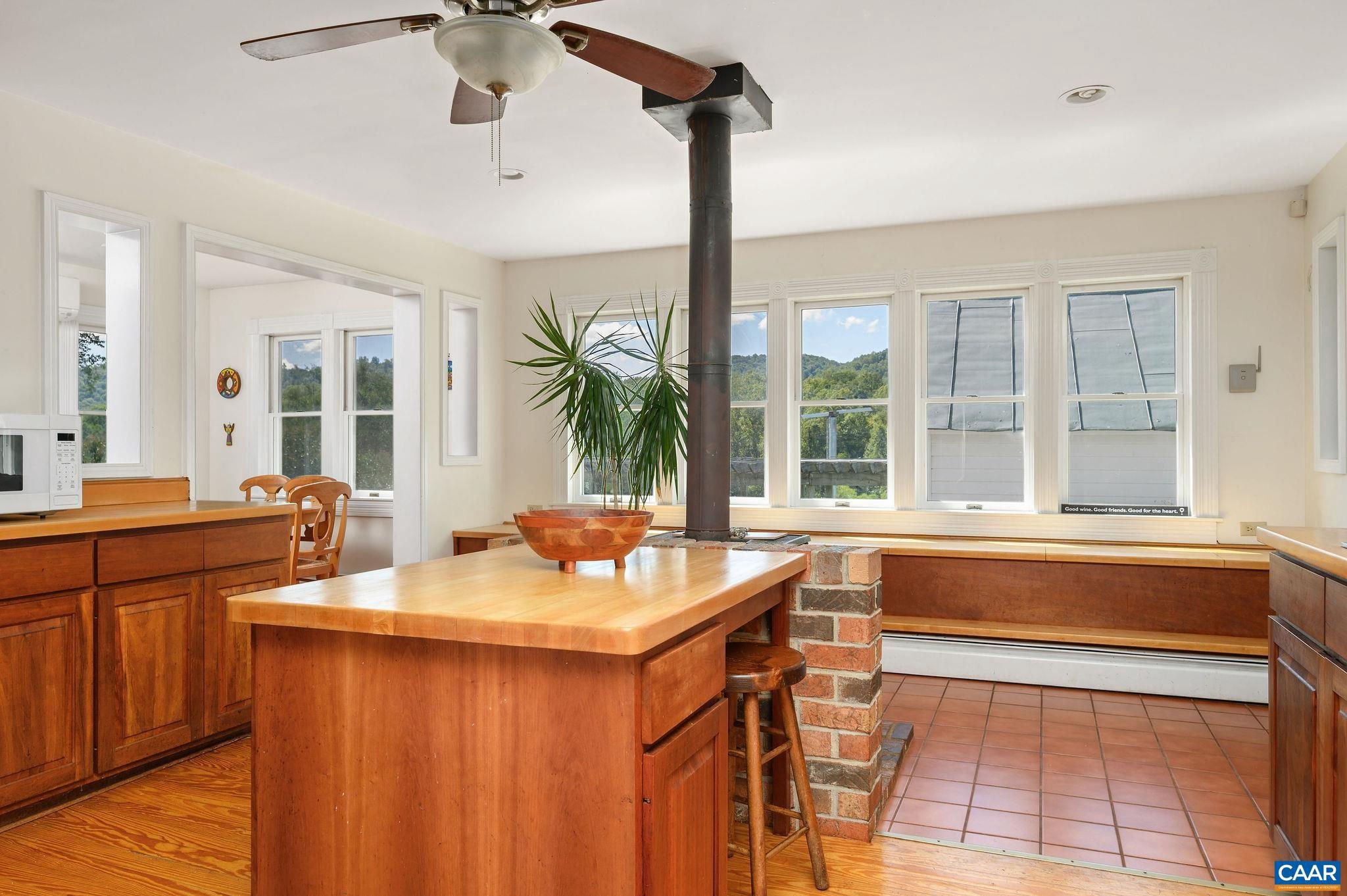 Centrally located in the Monticello AVA, and in the center of the Nelson 151 Craft Beverage Trail, Cardinal Point Vineyard & Winery has been in business since 1985. Surrounded by breathtaking Blue Ridge Mountain views, this well established family run 81 acre winery is ready for its next owner. The heart of the property is the classic 5 bedroom 1890s farmhouse. Featuring gleaming original hardwood floors, period fixtures, dual primary suites, stunning cherry kitchen, sunroom, and inground pool, the house is currently operated as a hugely popular short term rental. Of the 35 open acres 7 are in established vineyard production, with 4 acres currently fallow and ready for new vines. The winery features a contemporary 1080sqft tasting room with office & restrooms, seating in the indoor mezzanine/outdoor covered deck/patio, and 2880sqft of production and storage space. Public amenities also include an outdoor stage, disc golf, and open space for picnicking & play. The property is supported by numerous outbuildings including a 5040sqft open equipment shed with work and storage spaces as well as a conditioned office. The house and winery are both fully energized by solar power, the house also has generator back-up. Opportunities abound!,Cherry Cabinets,Wood Counter,Fireplace in Kitchen