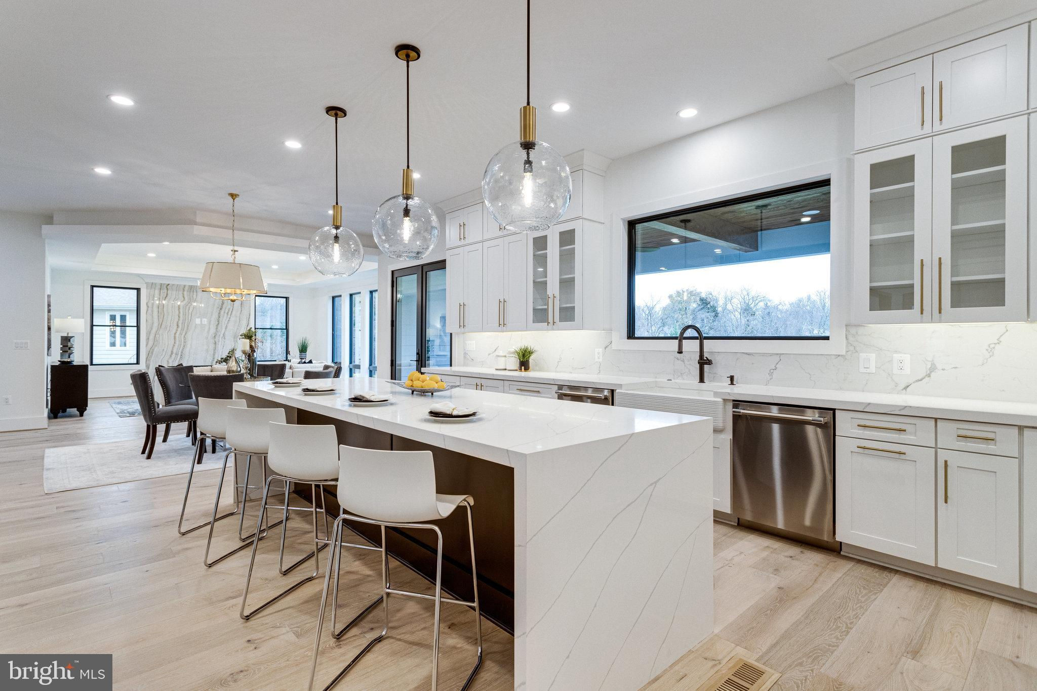 L’avenir Custom Homes invites you to discover their latest masterpiece of modern farmhouse style architecture. This exquisite home features a spacious and inviting open floor plan, designed for comfortable living and entertaining. As you enter the home, you are greeted by a stunning grand foyer with a soaring twenty-foot ceiling, adorned with a dazzling chandelier that illuminates the space. The main level has ten-foot ceilings throughout, creating a sense of openness and elegance. The floors are made of high-quality European White Oak hardwood, adding warmth and beauty to the home. The bathrooms are tiled with stylish and durable materials and have floor-to-ceiling enclosures that create a spa-like atmosphere. Each bedroom has its own ensuite bathroom and walk-in closet, providing privacy and convenience. The main level also features a guest suite, a home office/study, and a formal living room. The dining room is connected to a butler’s pantry that leads to a prep kitchen, wheremeals can be prepared without disturbing the main kitchen. The gourmet kitchen is equipped with state-of-the-art Thermador appliances, custom cabinetry, and a large island. The breakfast area is adjacent to the kitchen, offering a cozy and casual dining space. The covered screened porch and the family room, both with fireplaces, create a rustic and cozy ambiance. The porch is ideal for enjoying the outdoor views and relaxing in any weather. The family room is the heart of the home, where you can spend quality time with your loved ones.The second floor of this elegant home offers a cozy lounge space with access to a shaded balcony, as well as three more bedrooms with private bathrooms and a laundry room. The main bedroom is also on this level, and it features a comfortable sitting area with a double-sided fireplace, a luxurious bathroom with dual vanities and a separate water closet.The lower level is a versatile space that offers a spacious rec room with a wet bar, family room, and an additional bedroom with its own bathroom and walk-in closet, ideal for guests or in-laws. The lower level also boasts a modern media/theatre room, a gym/exercise room,and a powder room nearby. A covered stone paver patio walkout, and landscaped backyard. The front of the house is equally impressive, featuring brick veneer, black windows and doors, and a double panel Masonite front door with frosted glass panels, giving the house a sleek and modern look. The three-car garage has an EVC, allowing you to charge your electric vehicles conveniently. There are exterior security cameras and flood lights for added safety and peace of mind. The location of the house is ideal for easy access to both major airports, the beltway, routes 66 and 267, and world-class shopping, and entertainment venues in the area. You will never run out of things to do or places to go. Walk to cooper middle school and 5 min drive to langley high school. Pool and pool house can be added as an upgrade.