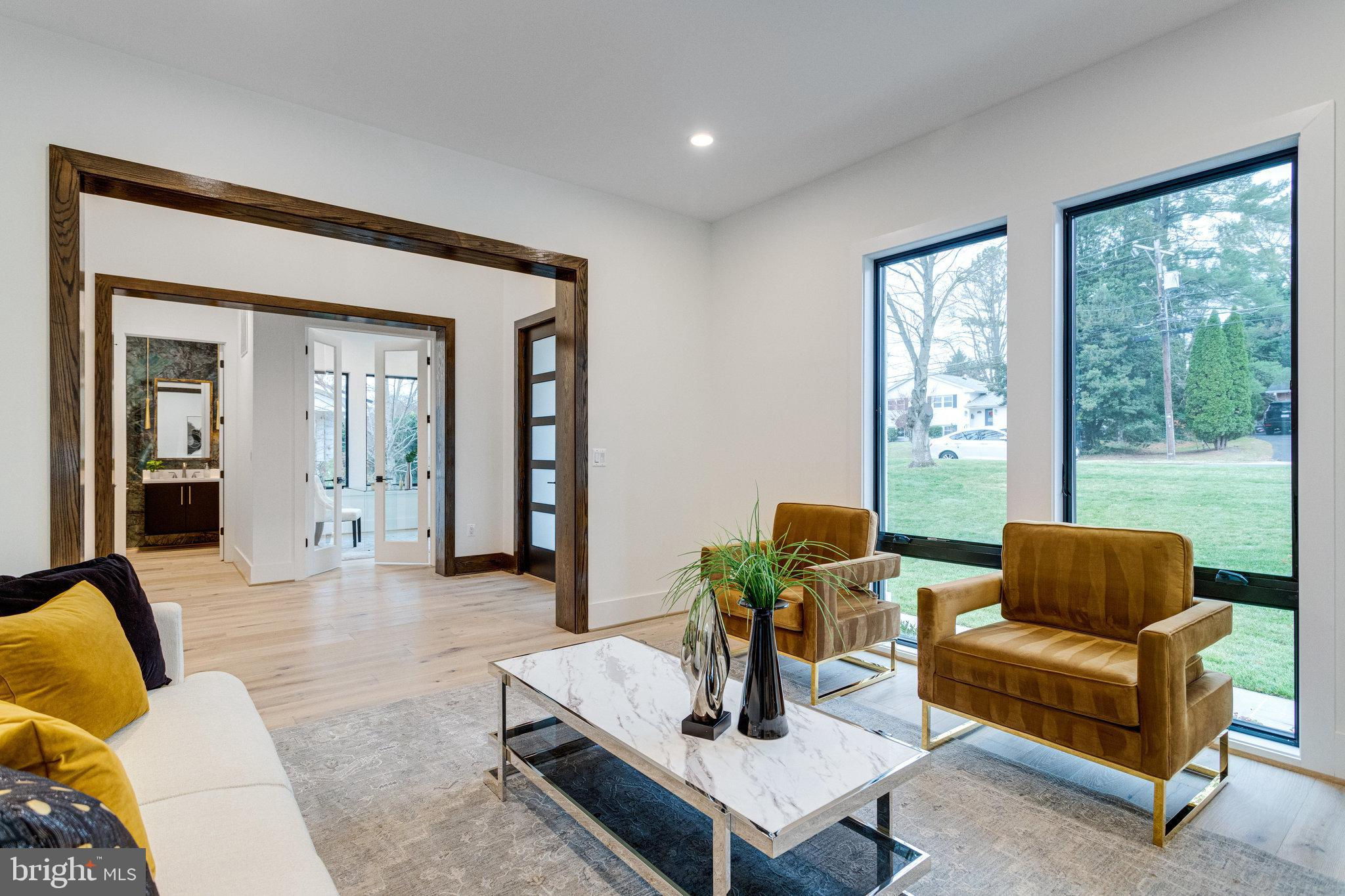 Highly motivated seller. Bring us an offer. This exquisite home features a spacious and inviting open floor plan, designed for comfortable living and entertaining. As you enter the home, you are greeted by a stunning grand foyer with a soaring twenty-foot ceiling, adorned with a dazzling chandelier that illuminates the space. The main level has ten-foot ceilings throughout, creating a sense of openness and elegance. The floors are made of high-quality European White Oak hardwood, adding warmth and beauty to the home. The bathrooms are tiled with stylish and durable materials and have floor-to-ceiling enclosures that create a spa-like atmosphere. Each bedroom has its own ensuite bathroom and walk-in closet, providing privacy and convenience. The main level also features a guest suite, a home office/study, and a formal living room. The dining room is connected to a butler’s pantry that leads to a prep kitchen, wheremeals can be prepared without disturbing the main kitchen. The gourmet kitchen is equipped with state-of-the-art Thermador appliances, custom cabinetry, and a large island. The breakfast area is adjacent to the kitchen, offering a cozy and casual dining space. The covered screened porch and the family room, both with fireplaces, create a rustic and cozy ambiance. The porch is ideal for enjoying the outdoor views and relaxing in any weather. The family room is the heart of the home, where you can spend quality time with your loved ones.The second floor of this elegant home offers a cozy lounge space with access to a shaded balcony, as well as three more bedrooms with private bathrooms and a laundry room. The main bedroom is also on this level, and it features a comfortable sitting area with a double-sided fireplace, a luxurious bathroom with dual vanities and a separate water closet.The lower level is a versatile space that offers a spacious rec room with a wet bar, family room, and an additional bedroom with its own bathroom and walk-in closet, ideal for guests or in-laws. The lower level also boasts a modern media/theatre room, a gym/exercise room,and a powder room nearby. A covered stone paver patio walkout, and landscaped backyard. The front of the house is equally impressive, featuring brick veneer, black windows and doors, and a double panel Masonite front door with frosted glass panels, giving the house a sleek and modern look. The three-car garage has an EVC, allowing you to charge your electric vehicles conveniently. There are exterior security cameras and flood lights for added safety and peace of mind. The location of the house is ideal for easy access to both major airports, the beltway, routes 66 and 267, Near Tysons Metro and Tysons Mall. You will never run out of things to do or places to go. Walk to cooper middle school and 5 min drive to langley high school. Pool and pool house can be added as an upgrade.